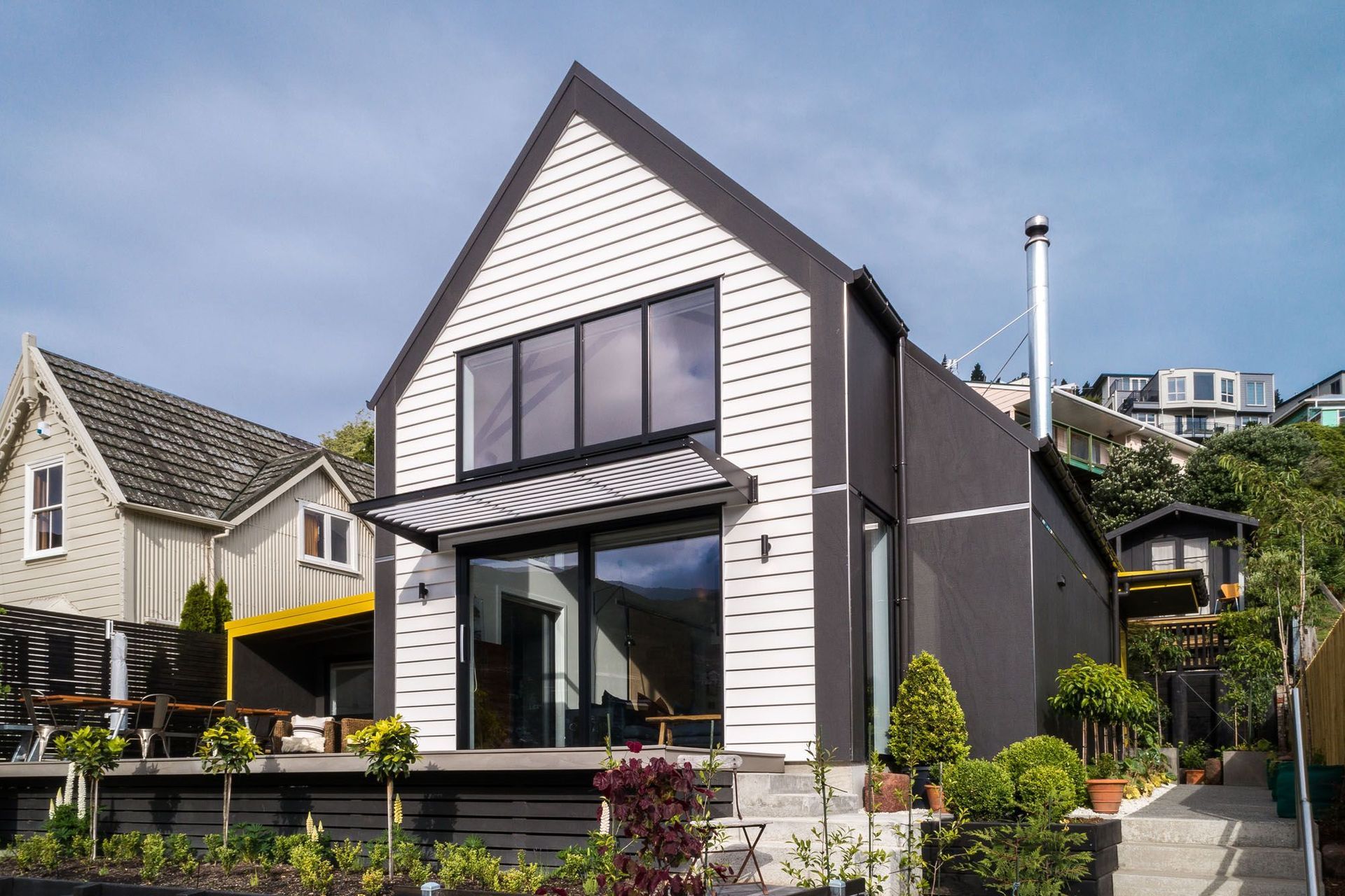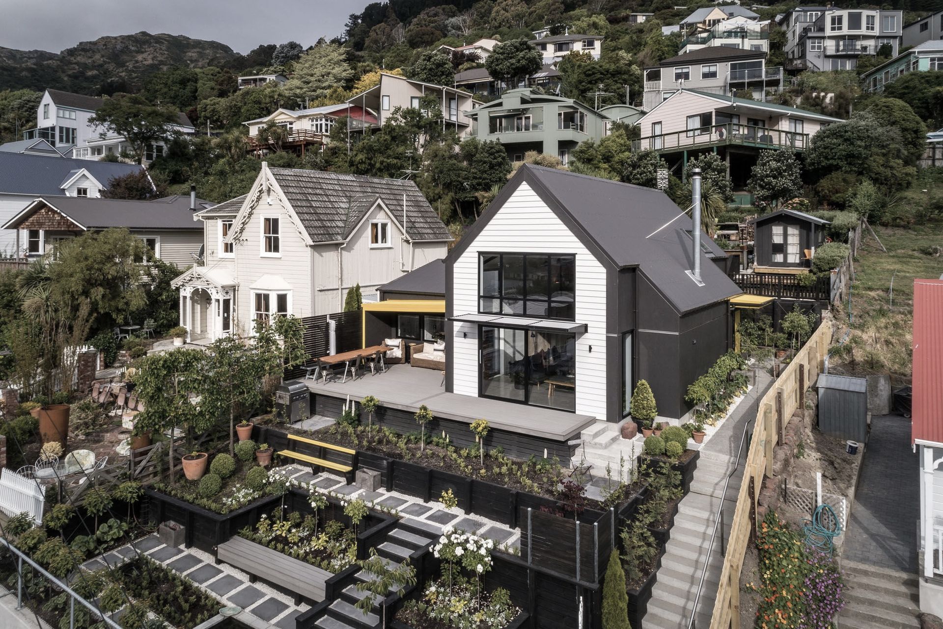 ArchiPro Project Summary - A thoughtfully designed earthquake rebuild in Lyttelton, blending modern aesthetics with historic charm, featuring open-plan living, textured materials, and innovative space solutions.