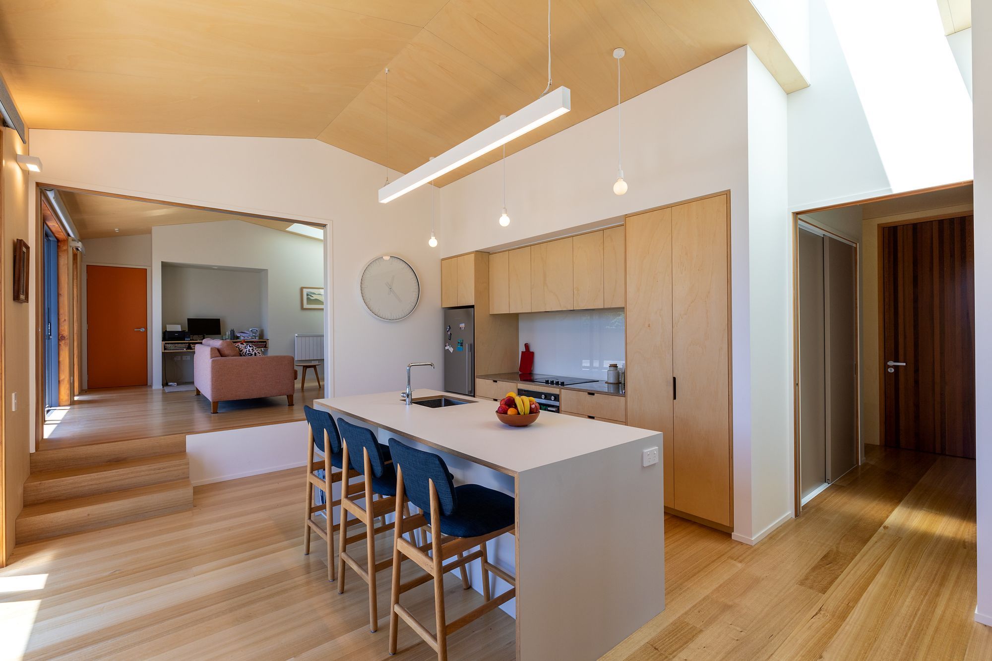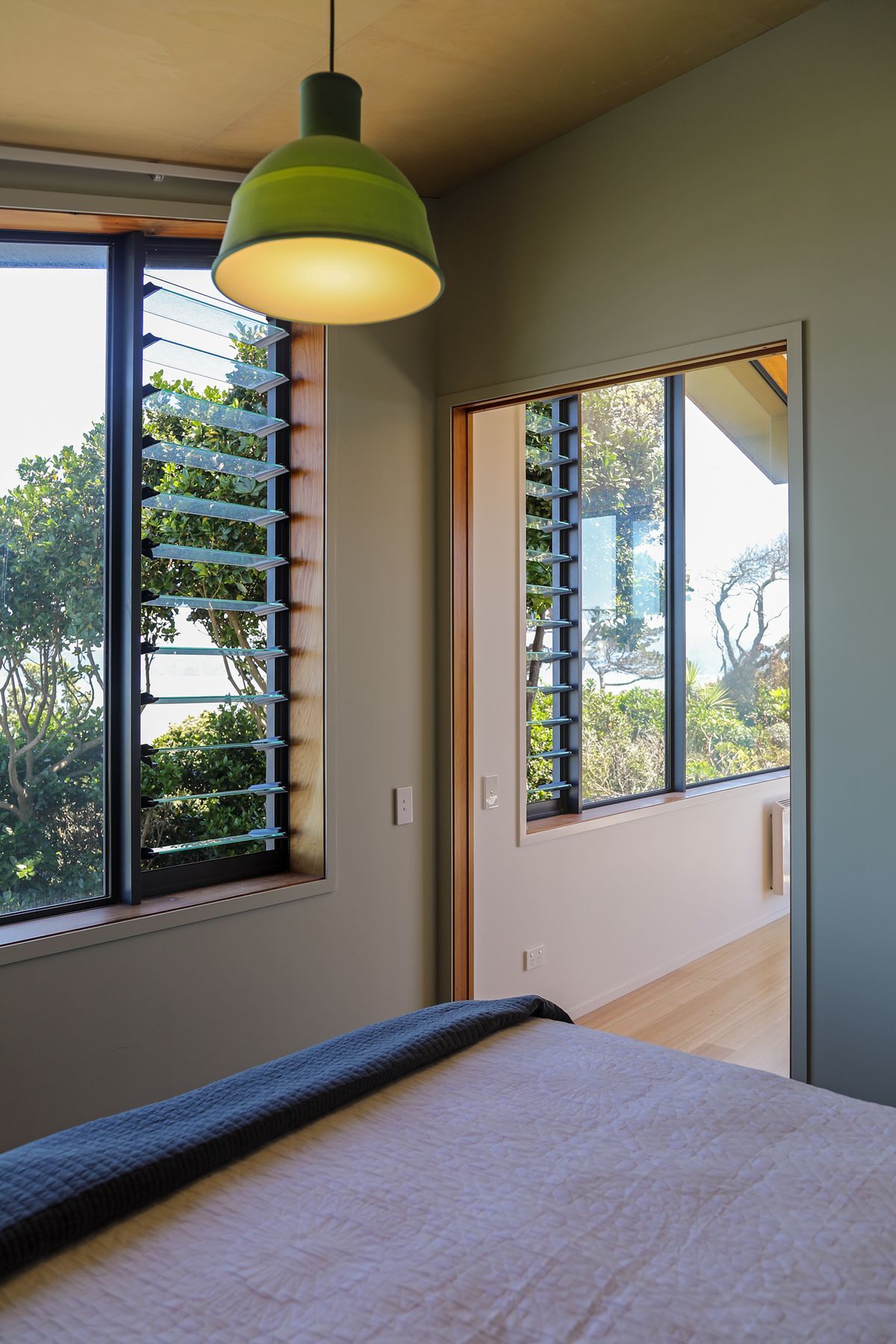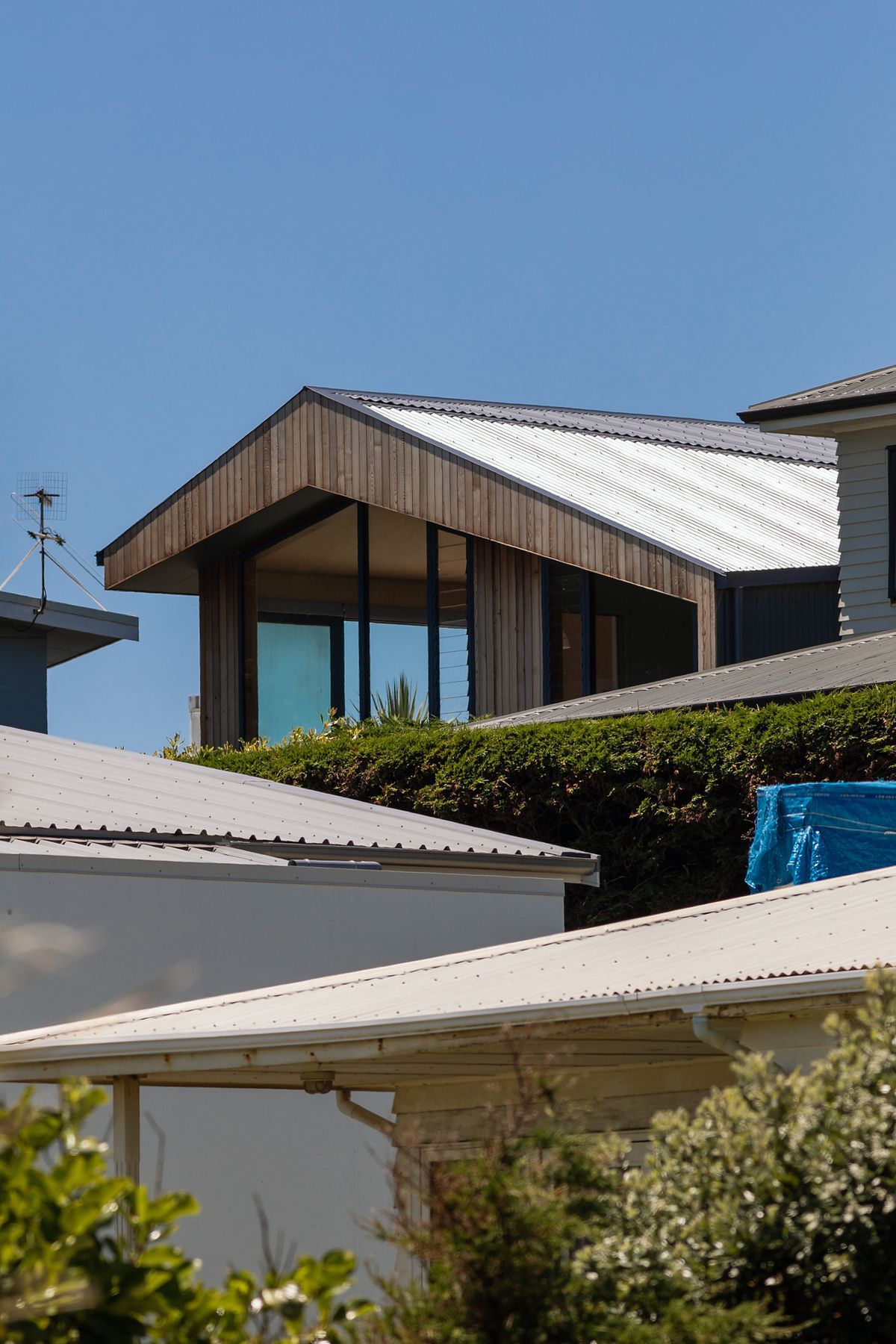 ArchiPro Project Summary - A stunning three-bedroom residence nestled among mature trees, featuring an open living area that connects to a sun-soaked deck with views of Kapiti Island, designed for flexible living with an optional studio space.