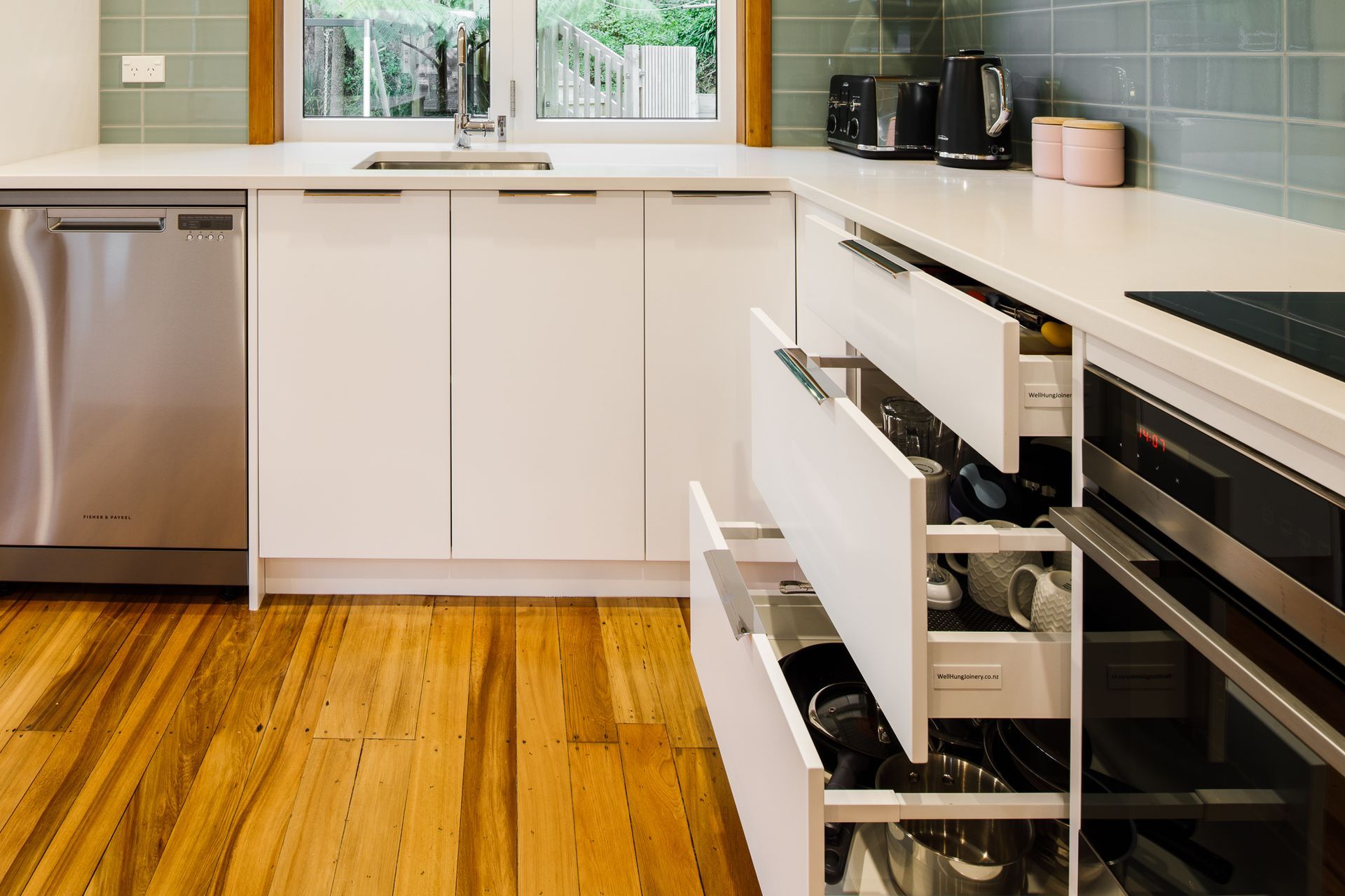 Well Hung Joinery. Well Hung Joinery is a Wellington owned and operated joinery company. They have been a leading provider of quality timber joinery, kitchens and cabinetry since 1999. They are based in Ngauranga, Wellington, which means they are central to all areas in Wellington.The company is made up of around 14 full time qualified joiners, 3 full time qualified installers and 3 full time sales managers. Having the 3 full time sales staff means they can offer you a fast efficient quoting service and prompt replies to any queries. All of the sales managers are fully qualified joiners, meaning they offer the best technical knowledge available.Well Hung Joinery are Wellington’s timber door, window and kitchen experts! They manufacture the largest range of timber doors and windows, kitchens and cabinetry in Wellington and offer better quality and better value joinery solutions. Call Well Hung joinery now to discuss your next joinery project.