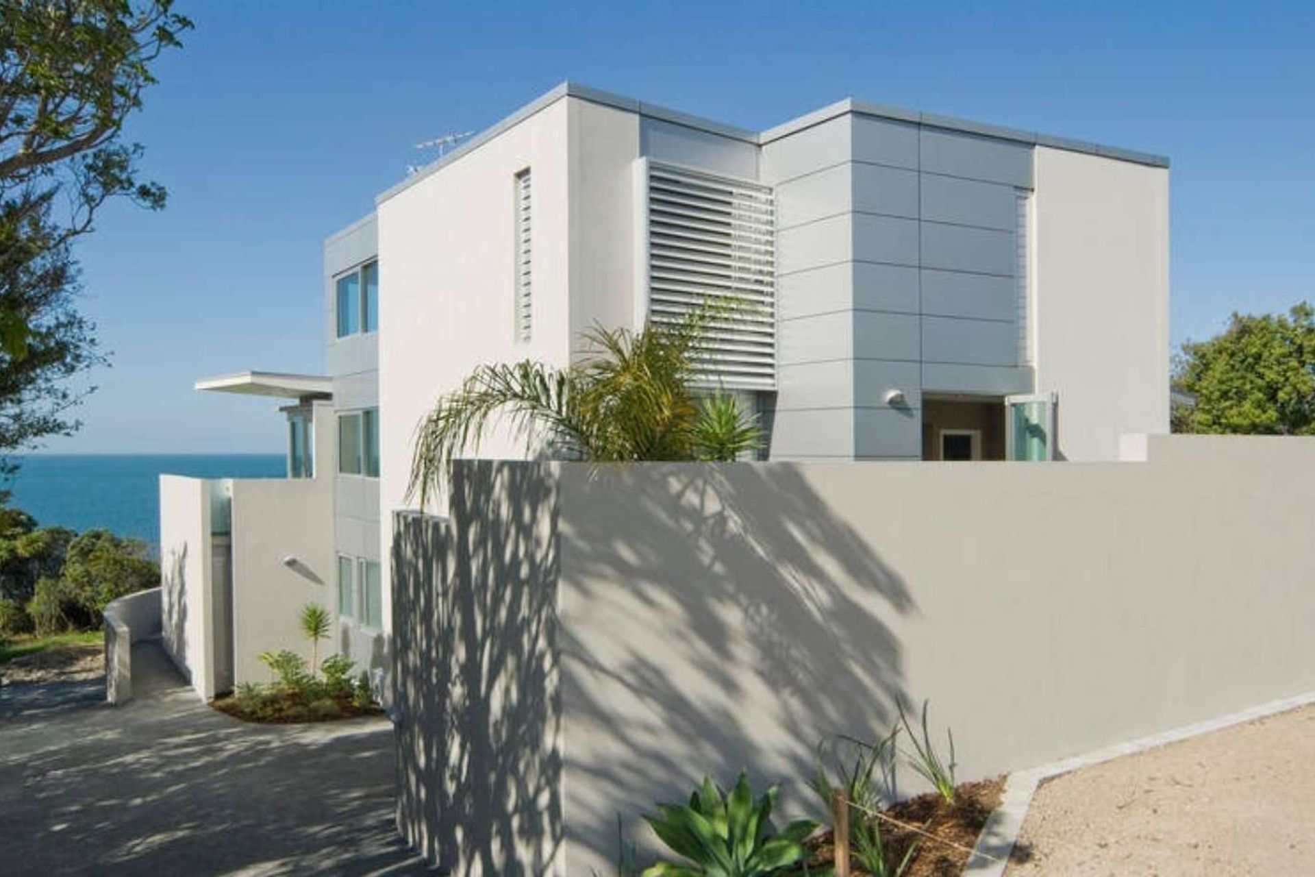 ArchiPro Project Summary - Cliff top residence featuring 380sqm of modern living space across three levels, designed for stunning coastal views with high-quality materials and specialized engineering solutions.