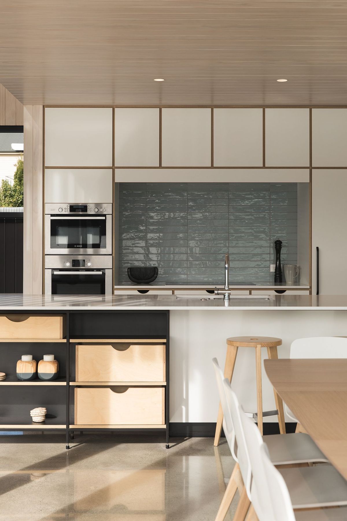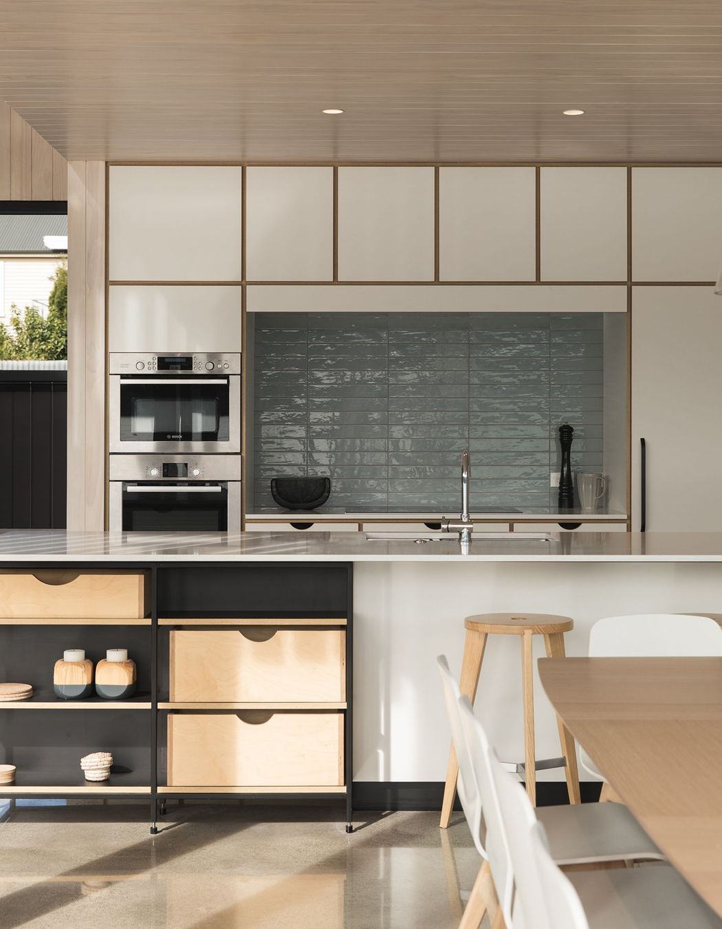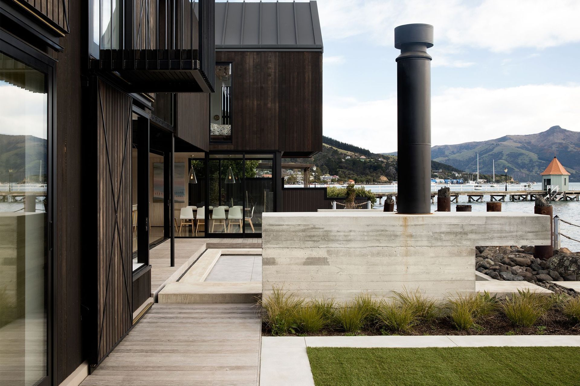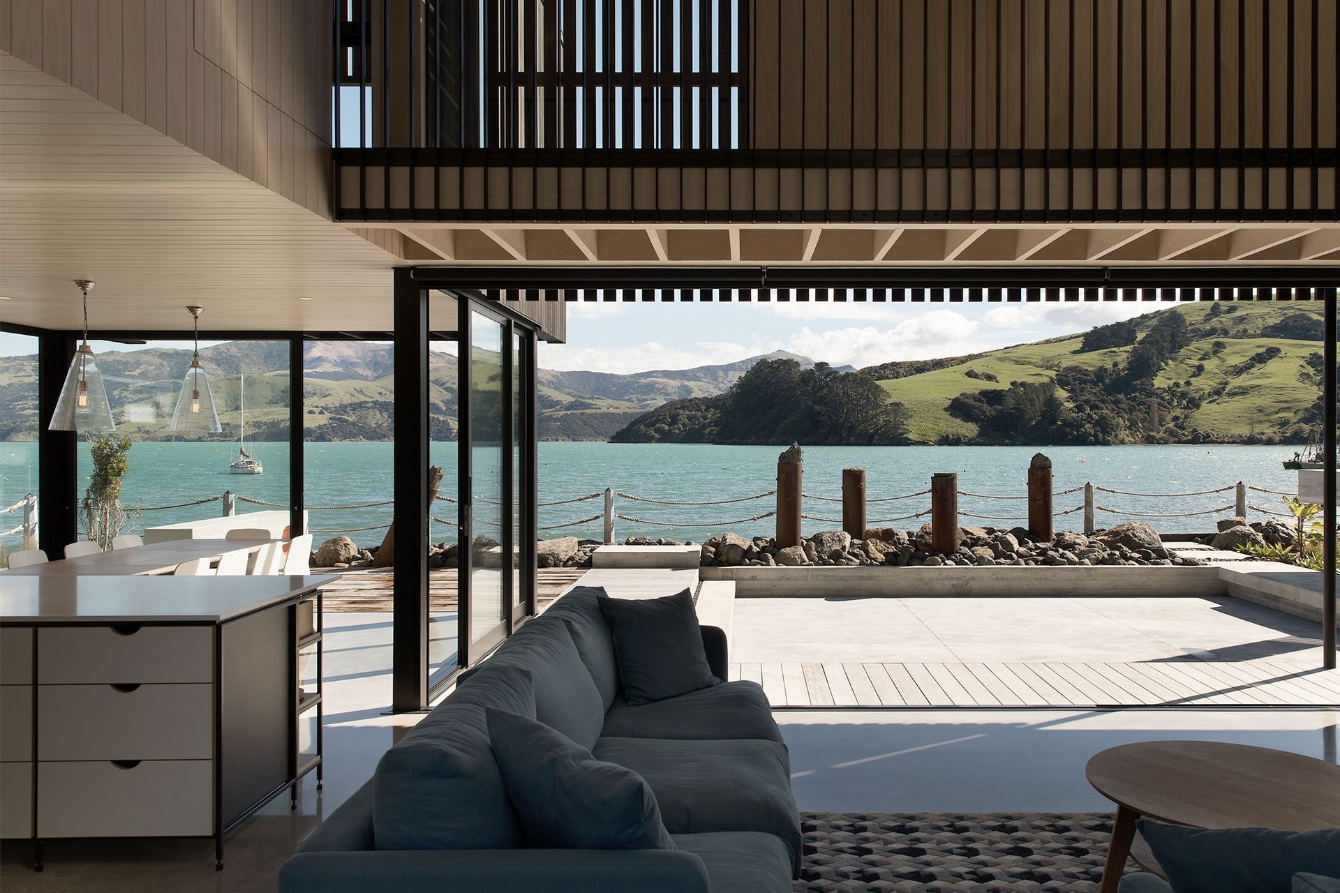 “We wanted to create a highly contemporary house that was highly sensitive to the local built context and to its surroundings,” explains Tjahjana. “The home is sited on a prominent waterfront site that can easily be viewed looking back from Daly’s Wharf, one of the well-known icons of Akaroa. The house was, essentially, designed with that view in mind.”