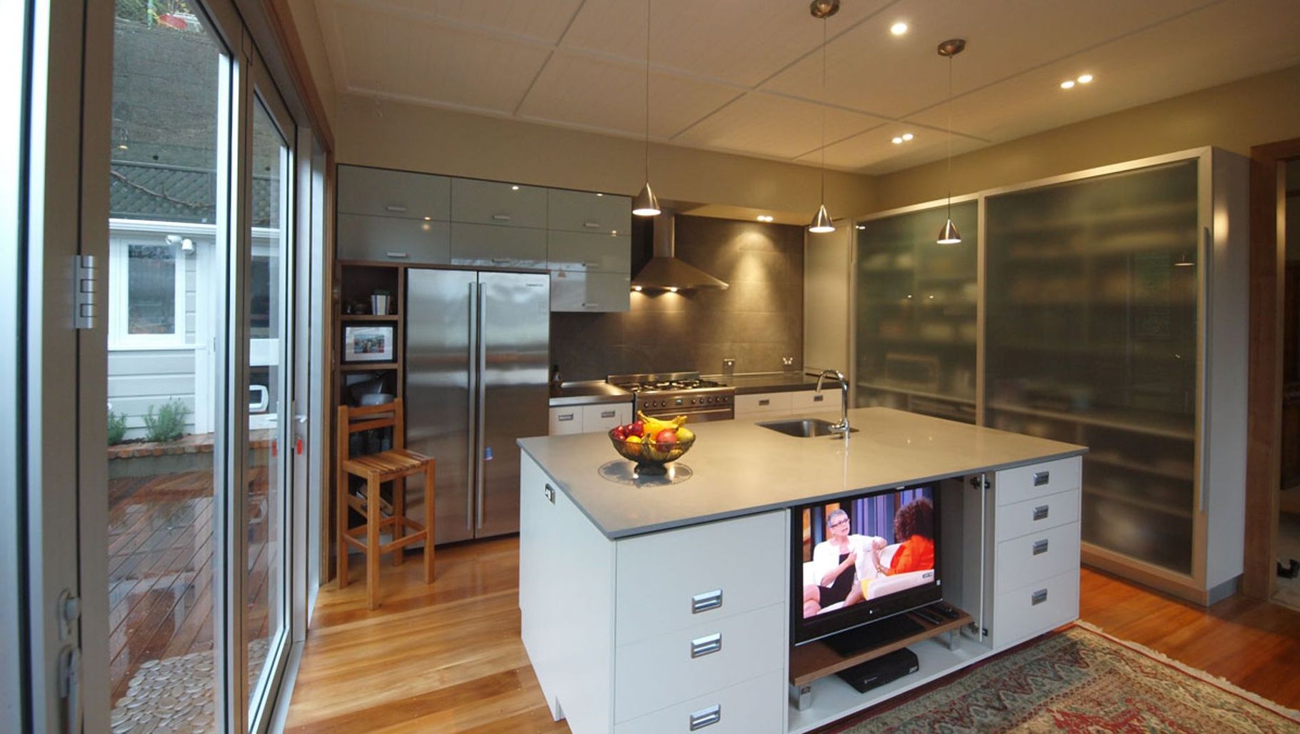 ArchiPro Project Summary - Elegant interiors featuring painted doors and drawers complemented by stainless steel and engineered stone bench tops.