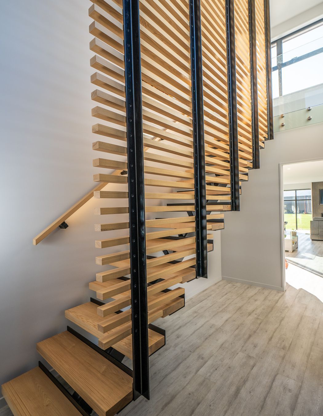 ArchiPro Project Summary - Contemporary new build in Mandeville featuring 250m2 of living space, Eldorado Stone and Cedar cladding exterior, a spacious 100m2 North West facing deck, and luxurious interiors with a floating staircase and open plan living.