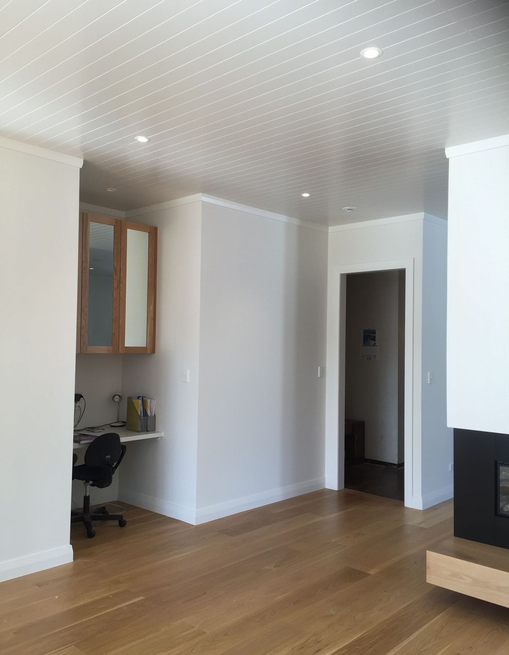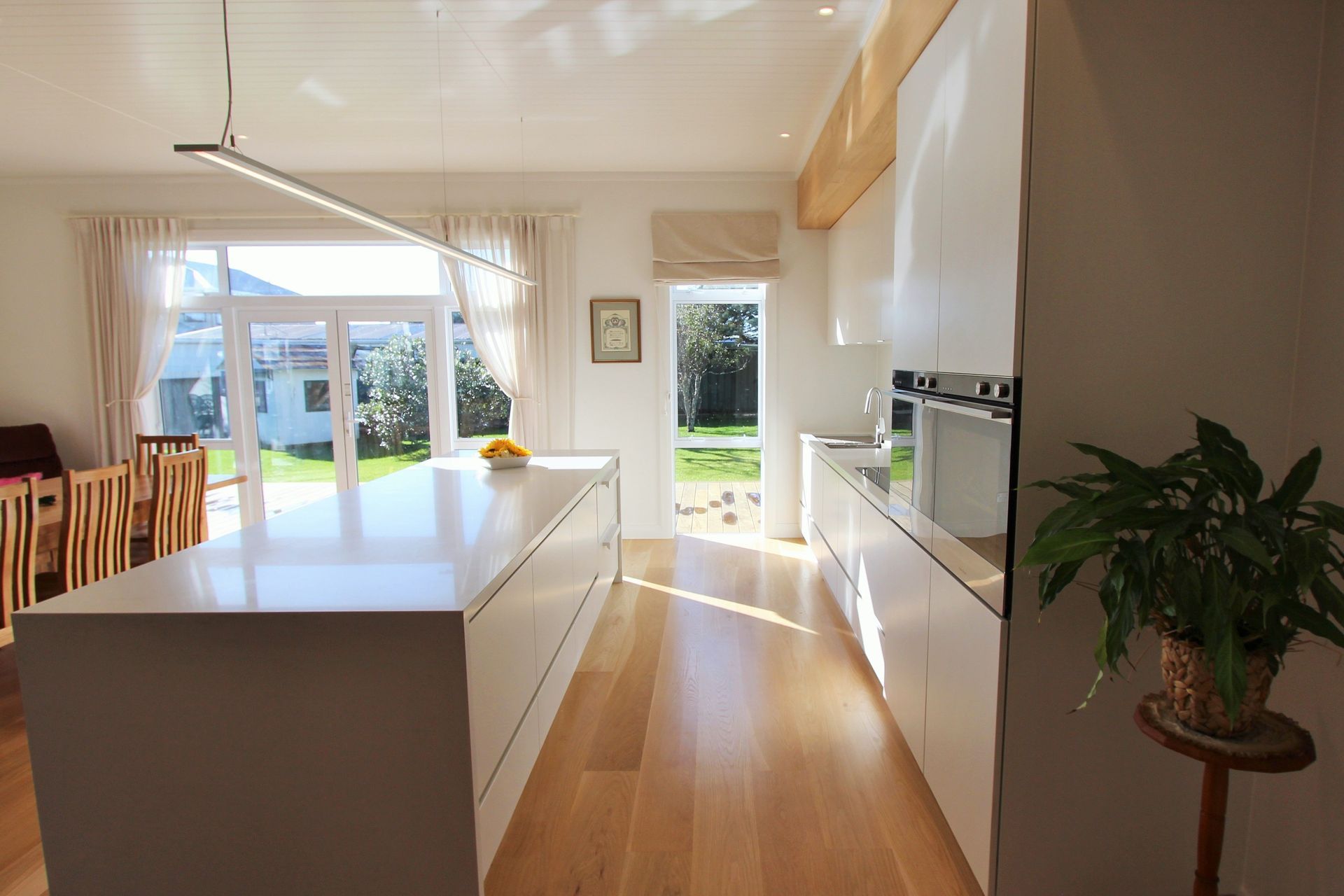 ArchiPro Project Summary - The Mangere Bridge Renovation features modern design with wood flooring, elegant countertops, and a stylish kitchen, creating a warm and inviting space.