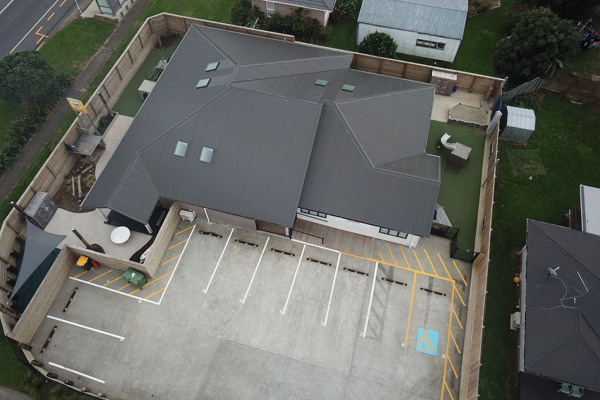 ArchiPro Project Summary - A benchmark for quality in childcare, the Mangere Childcare Centre features expansive outdoor areas and spacious interiors, offering a low-maintenance environment that ensures peace of mind for clients and a nurturing space for children.