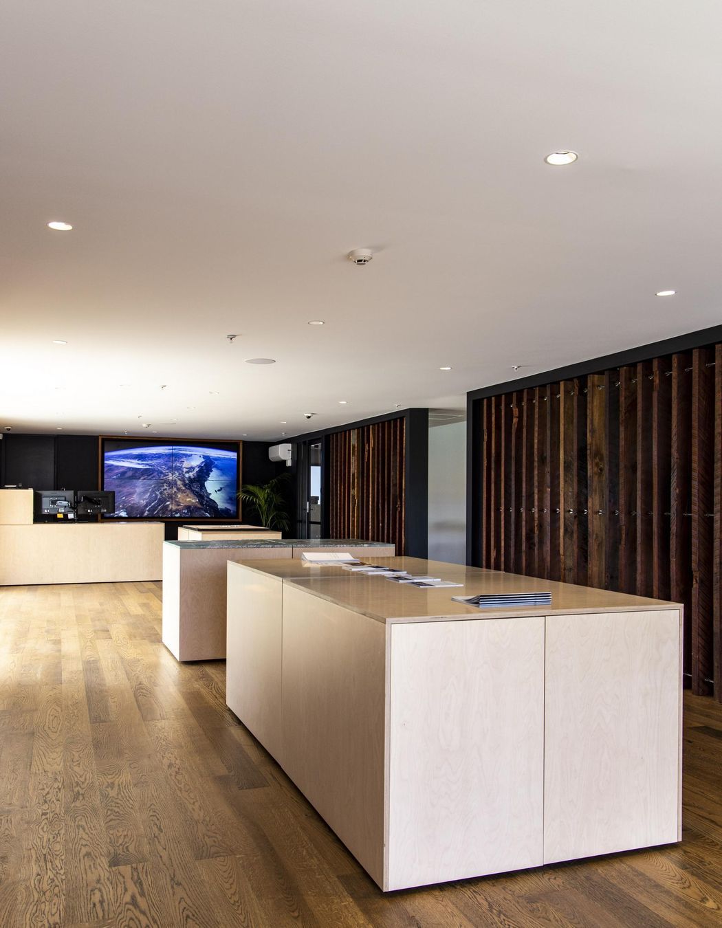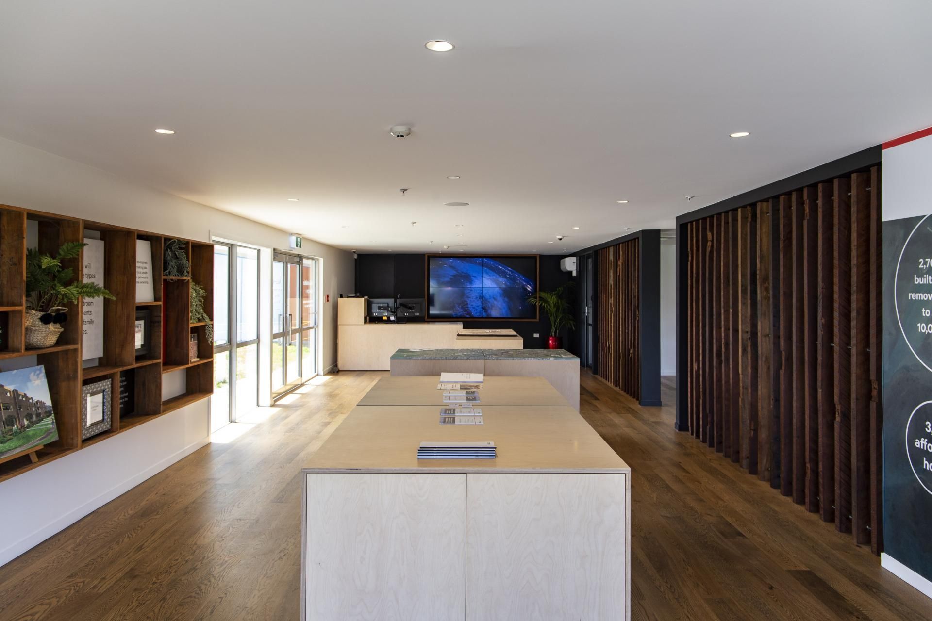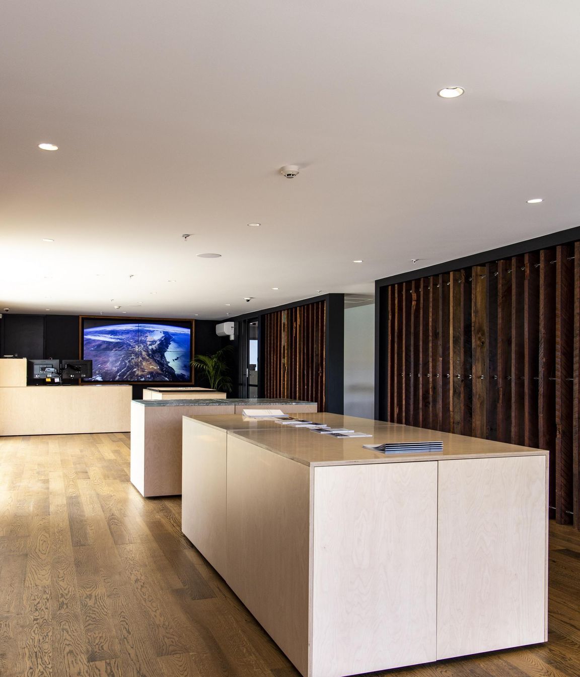 ArchiPro Project Summary - Refurbishment of an existing space into an information centre featuring cabinetry and recycled native timber screens, all crafted in our workshop.