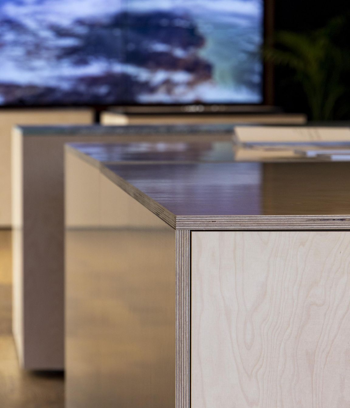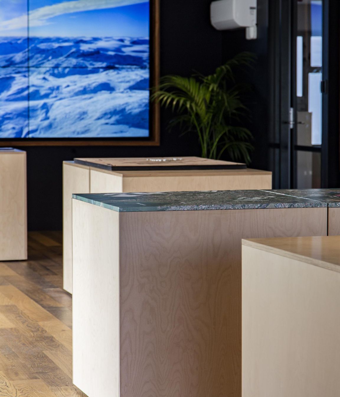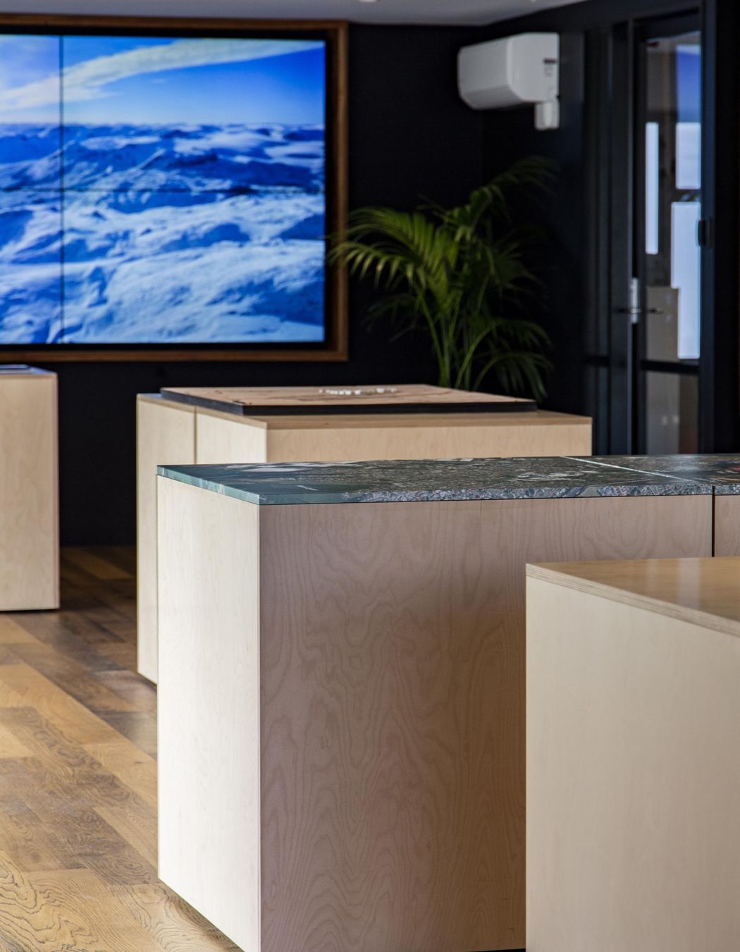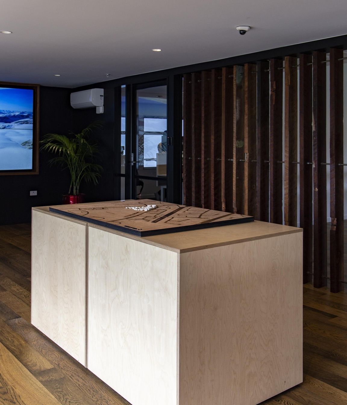 ArchiPro Project Summary - Refurbishment of an existing space into an information centre featuring cabinetry and recycled native timber screens, all crafted in our workshop.