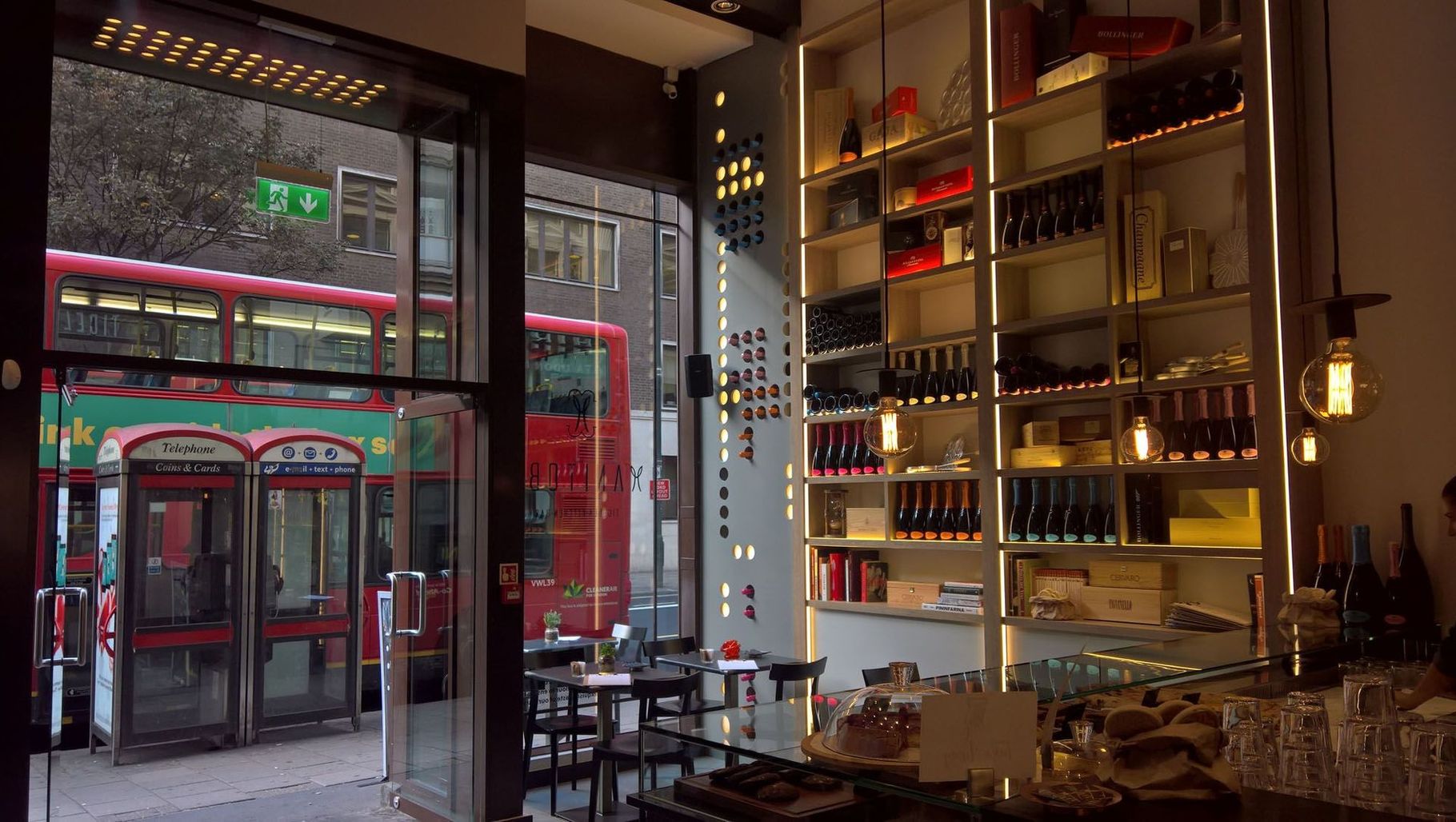 ArchiPro Project Summary - Renovation of a busy pickup and dining facility on New Oxford Street, featuring innovative lighting solutions and a circular design theme to enhance the customer experience and seamlessly blend indoor and outdoor environments.