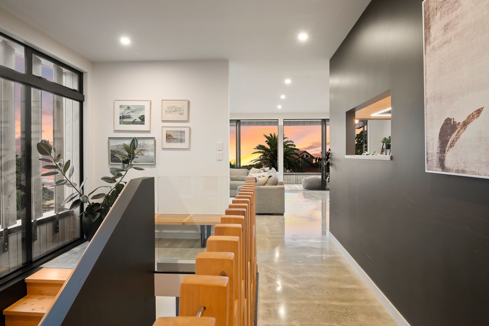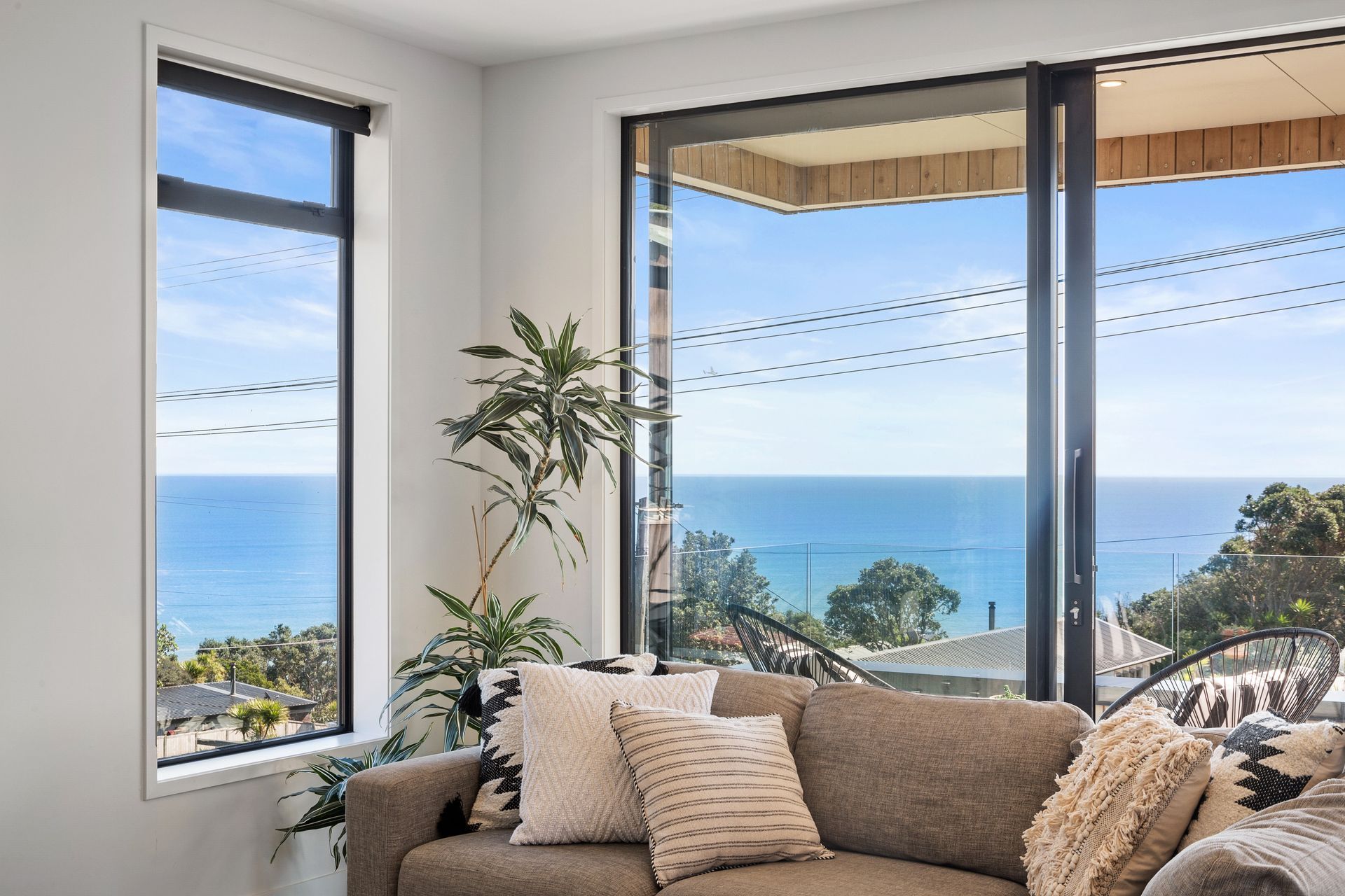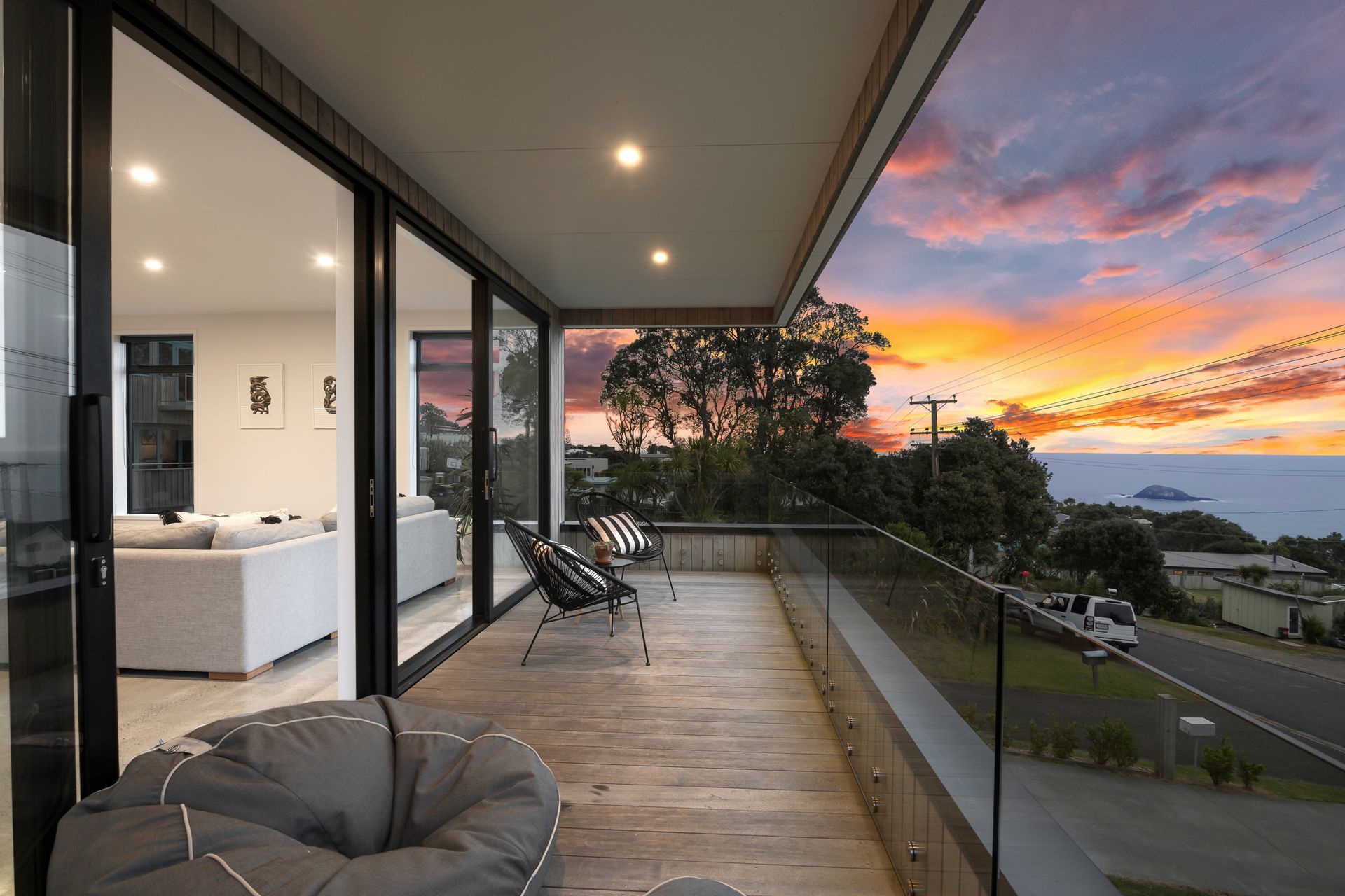 ArchiPro Project Summary - Family home on Auckland's west coast designed to maximize views of Maori Bay, featuring simple, clean lines and sheltered outdoor living spaces.