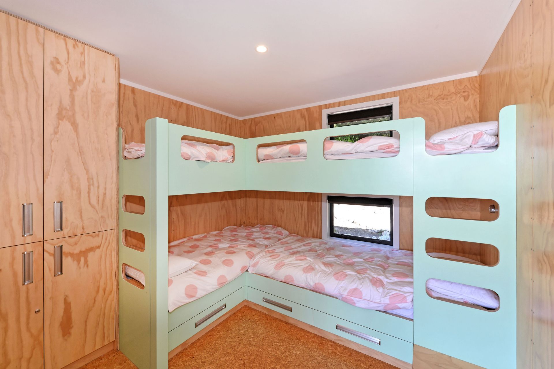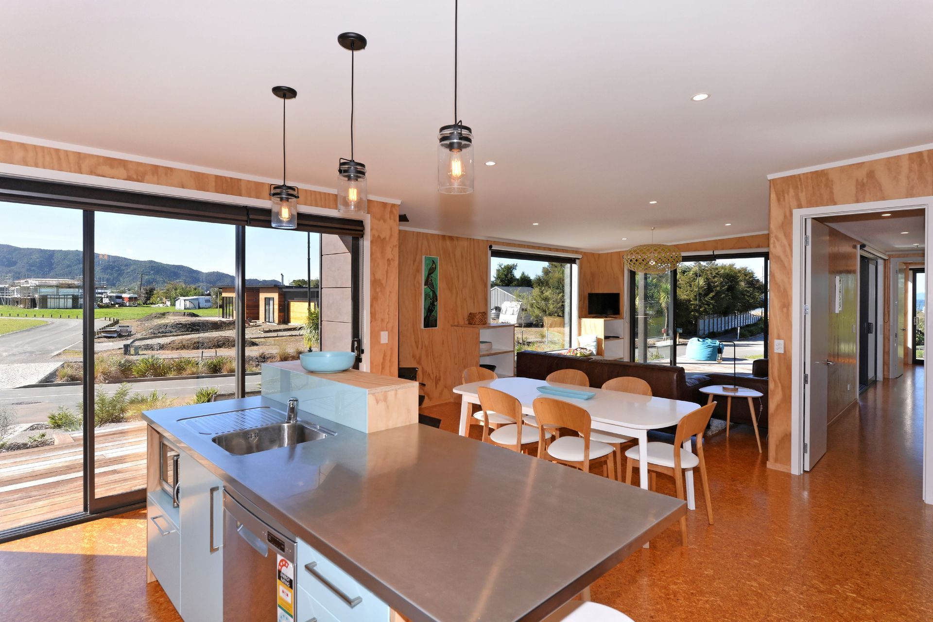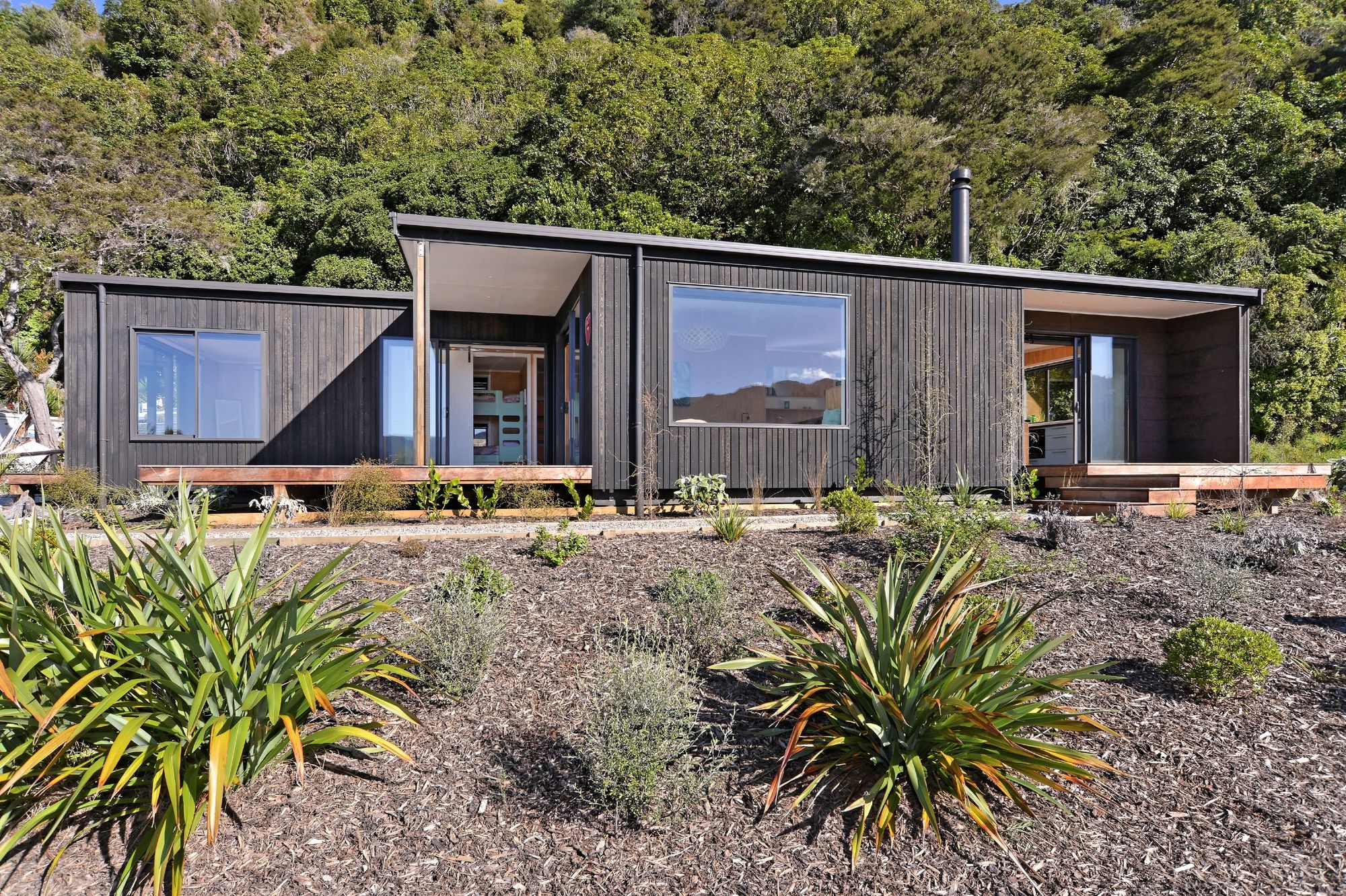 ArchiPro Project Summary - A beautifully crafted 98sqm bach in Tasman, seamlessly blending with native bush, featuring open-plan living, extensive glazing, and versatile outdoor spaces for a quintessential Kiwi beach experience.