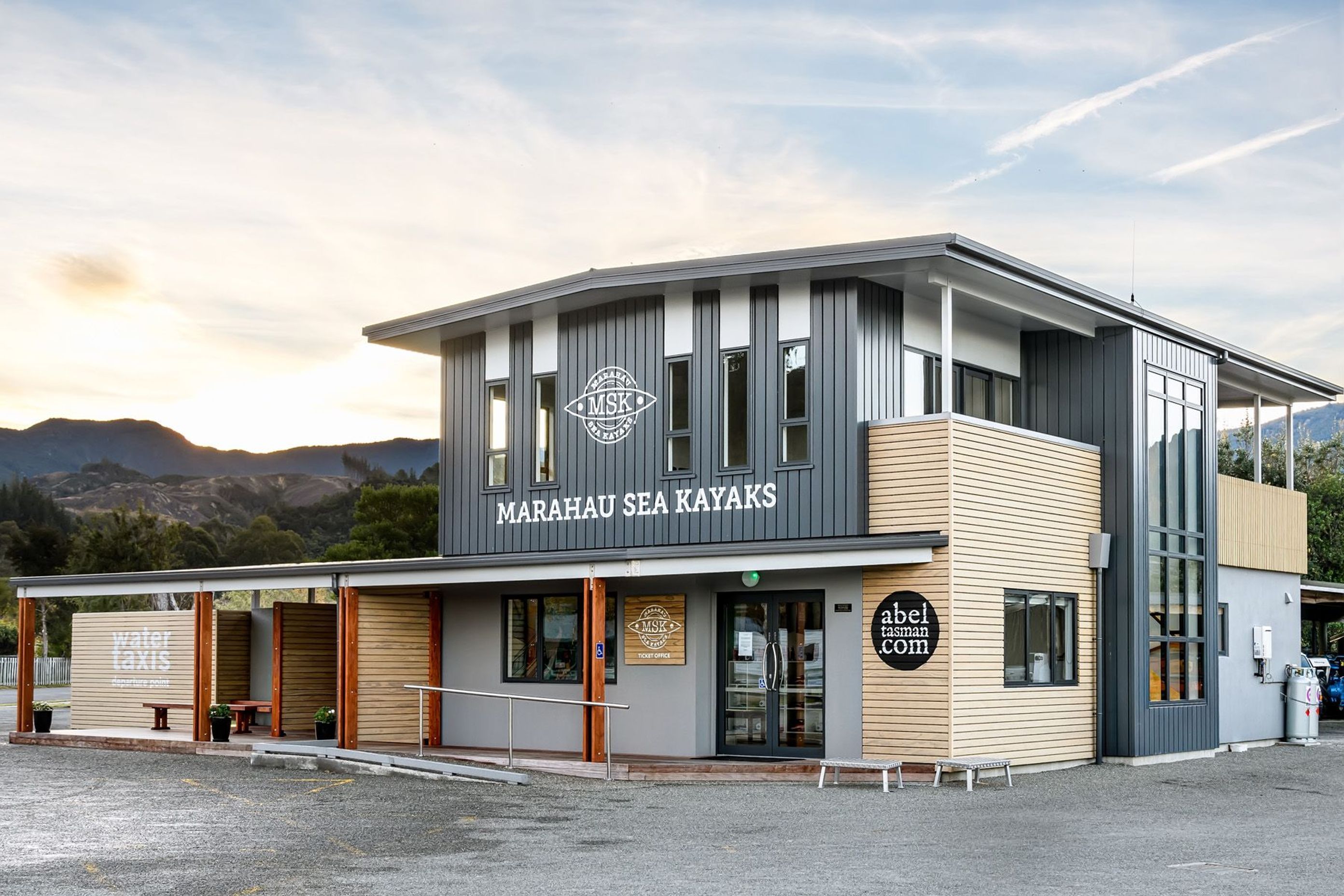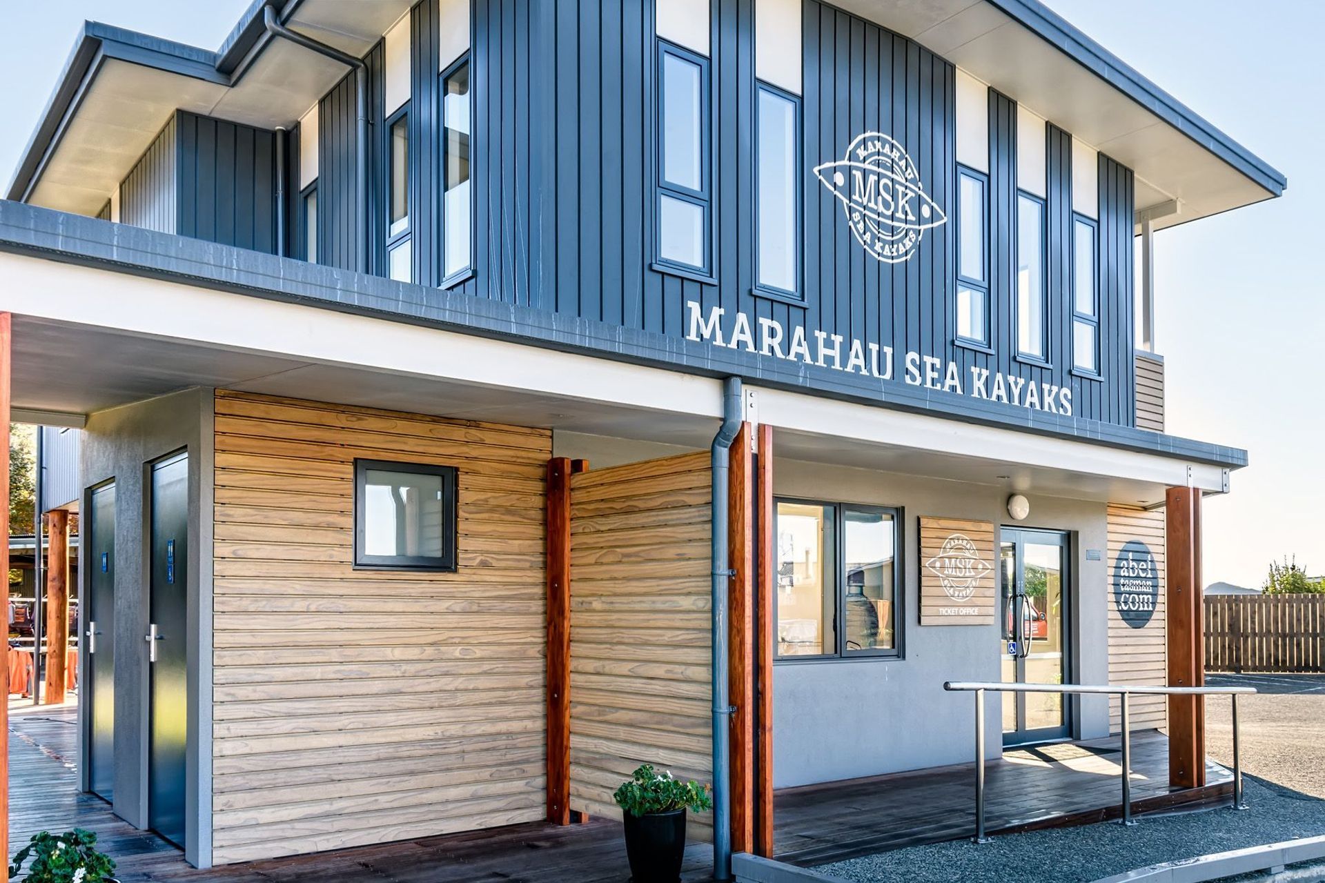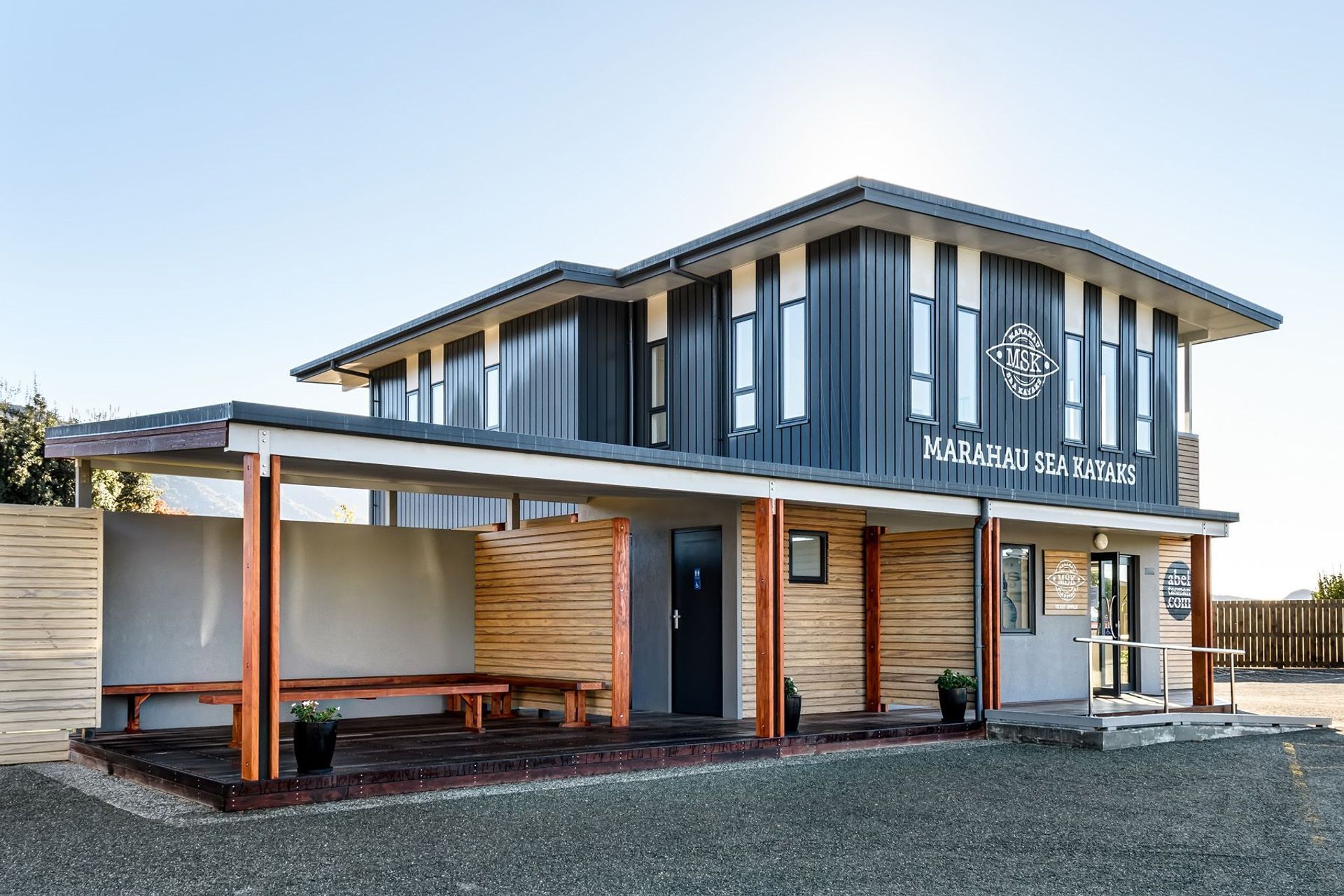 ArchiPro Project Summary - Contemporary office design for Marahau Sea Kayaks, featuring breathtaking sea views, accessible public areas, and functional workspaces, completed in 2018 by Stephan Meijer Architecture at the entrance of Abel Tasman National Park.