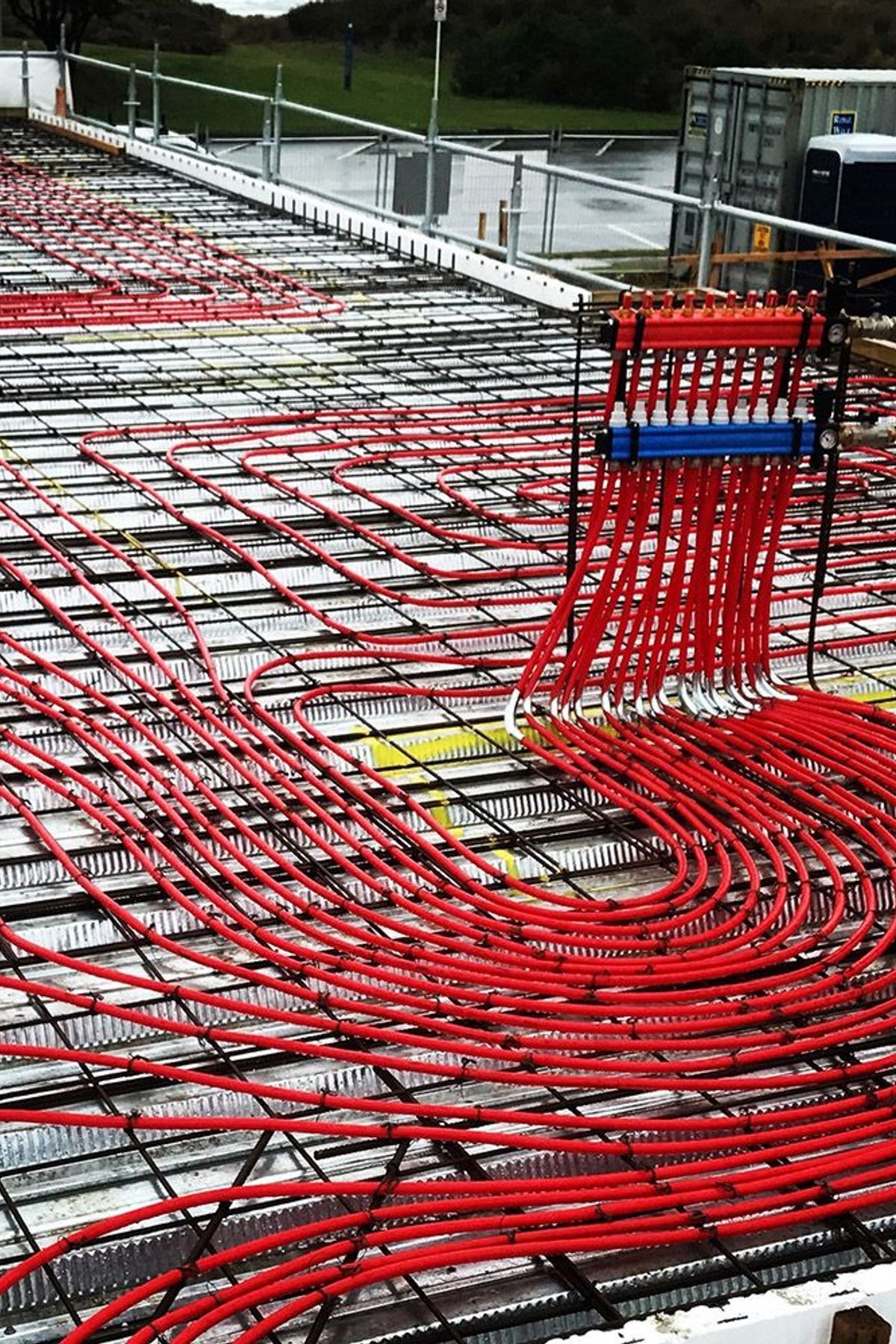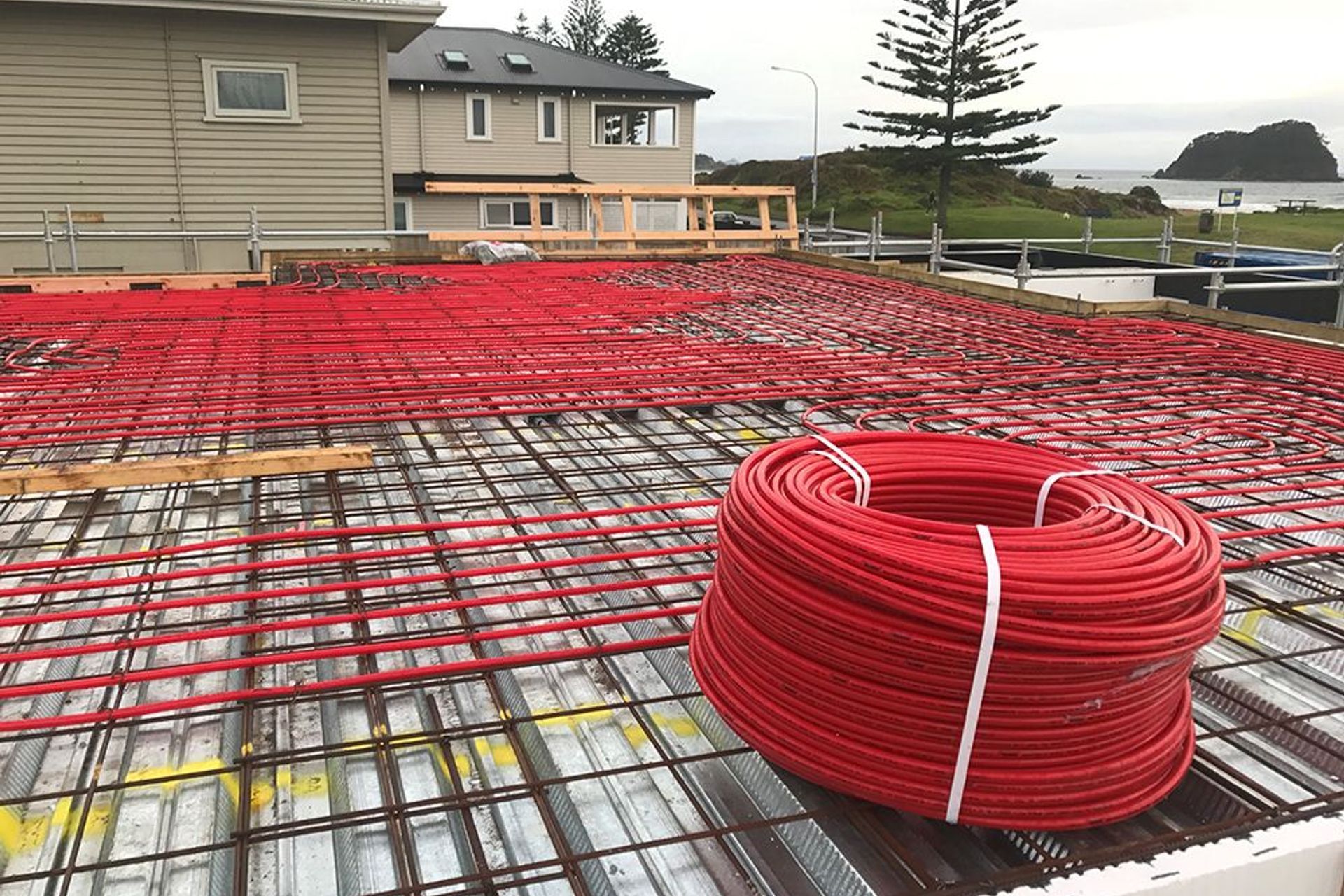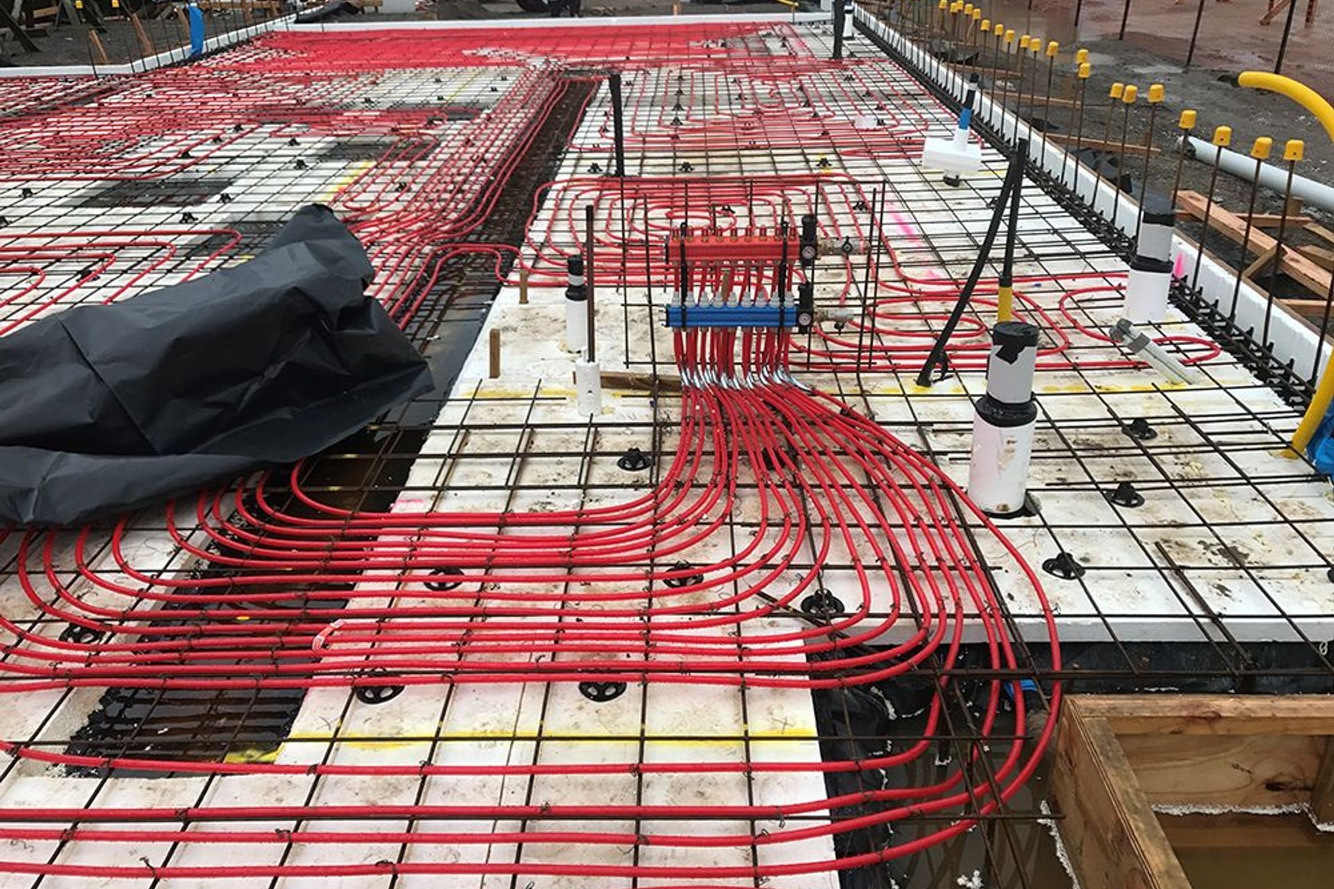 ArchiPro Project Summary - Innovative two-story underfloor heating system utilizing Rehau Rautherm S for efficient home heating.