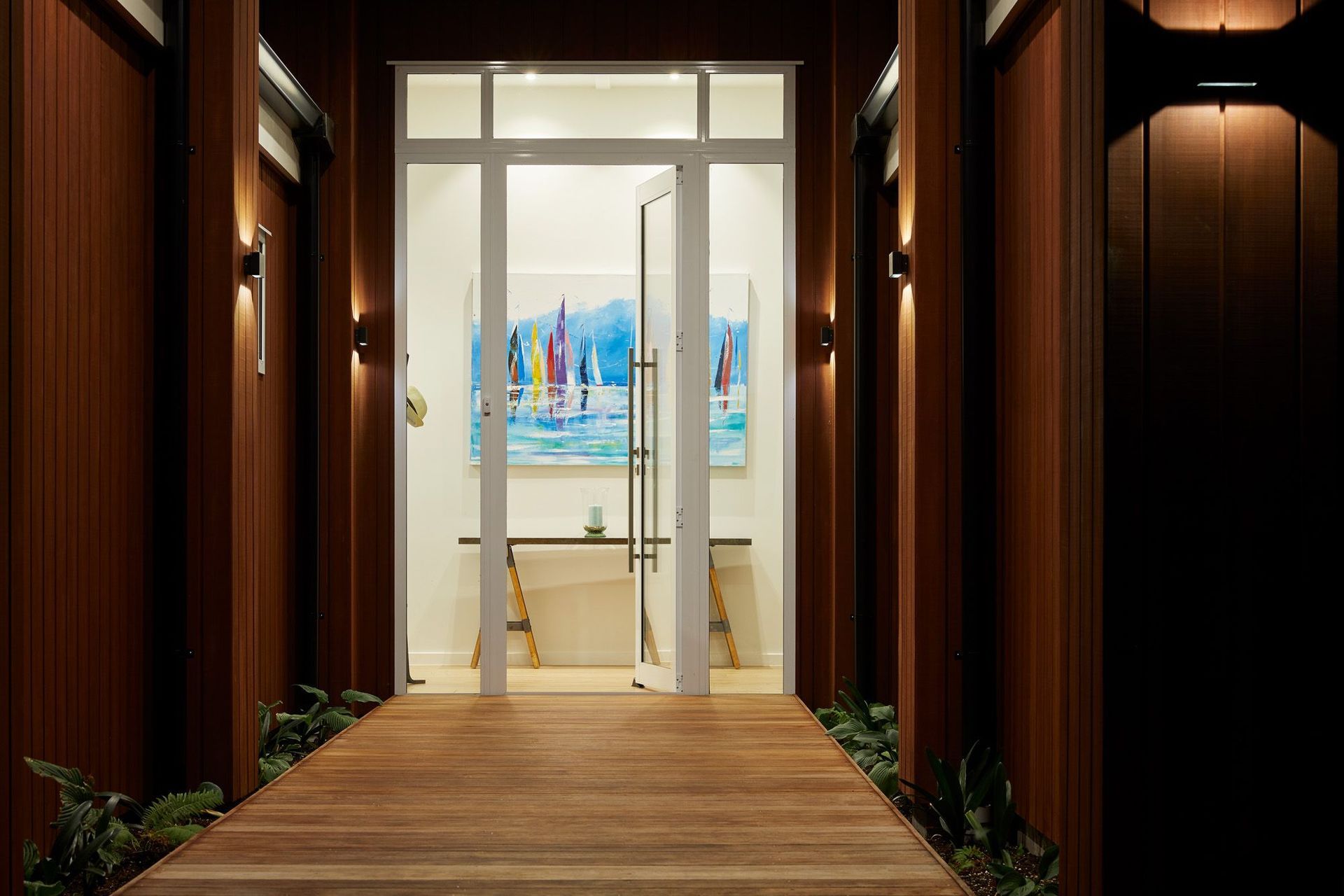 ArchiPro Project Summary - A modern home that embraces its maritime location, featuring a stunning entrance, contemporary interiors with timber floors, and adaptable spaces for both sunny days and cozy retreats.