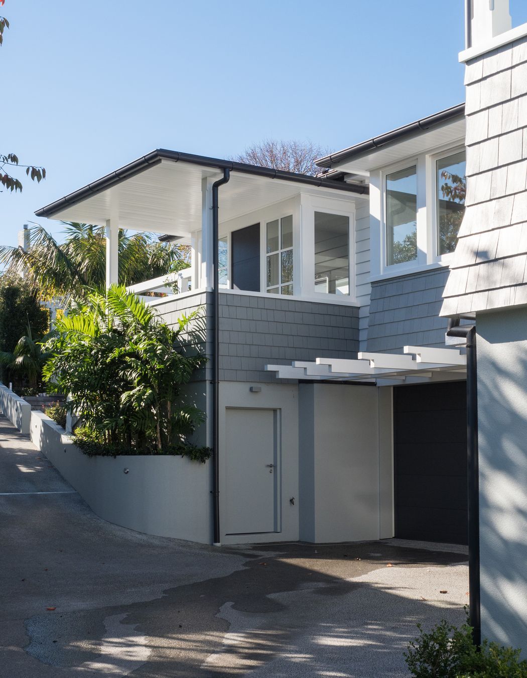 ArchiPro Project Summary - A contemporary 460m² bungalow in Remuera, featuring a full renovation by architect Christian Anderson, complete with timber detailing, large bay windows, a fireplace, outdoor deck, pool, and landscaping.