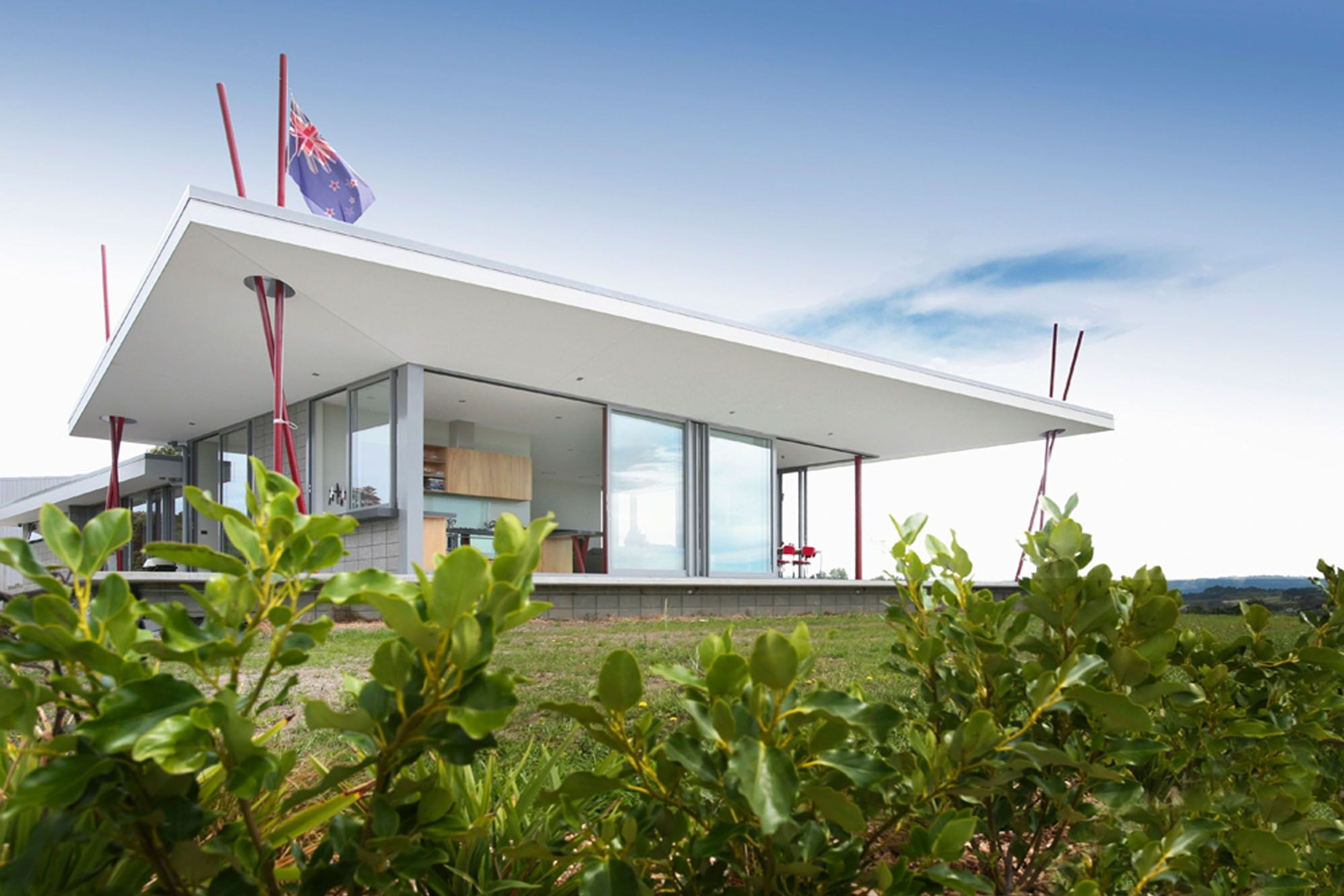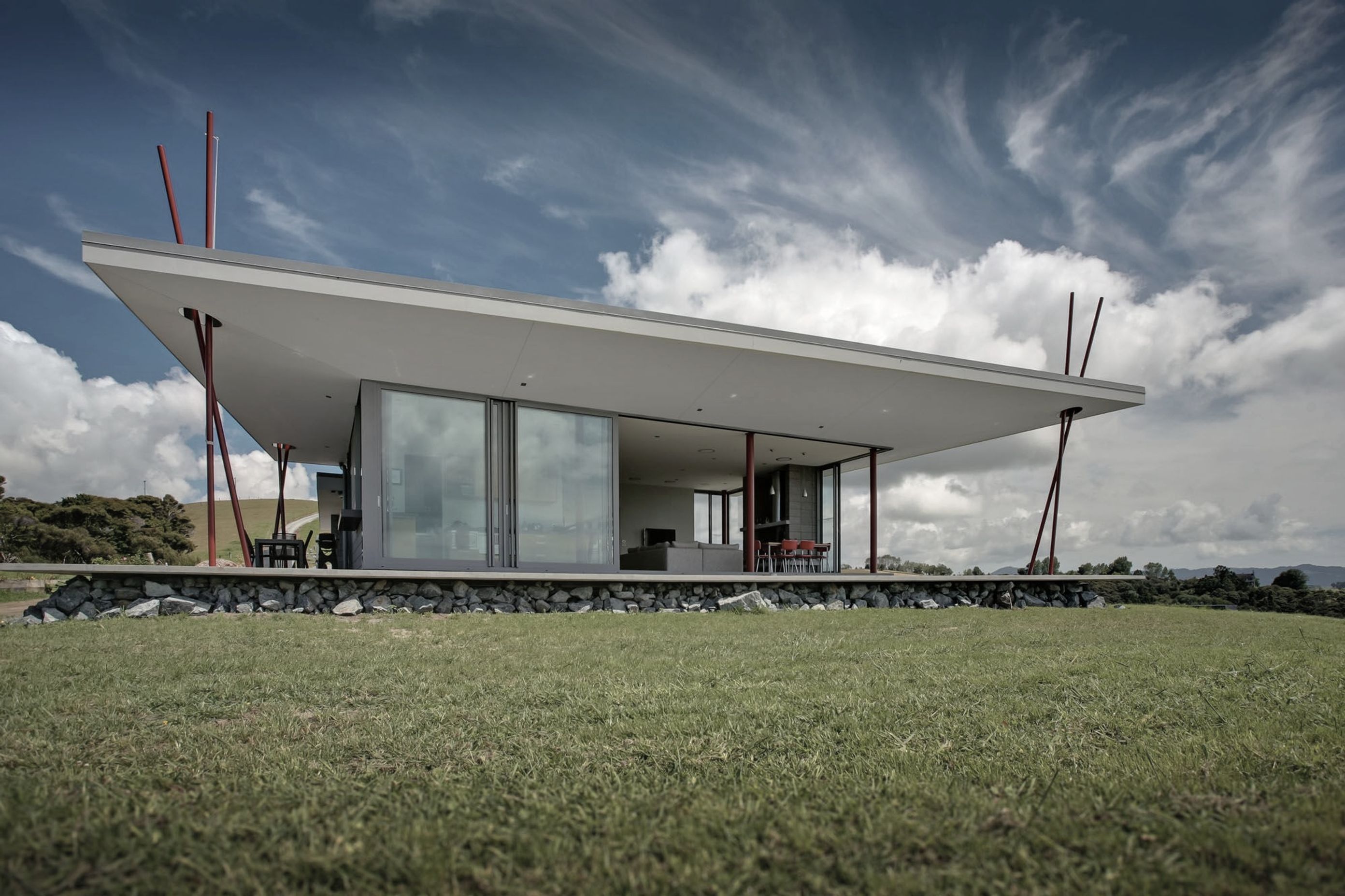 ArchiPro Project Summary - Stunning Matakana House designed by Pacific Environment Architects, expertly constructed by Brett, Nigel, and the team on an exceptional site, beautifully captured in photographs by Lucy Gauntlett.