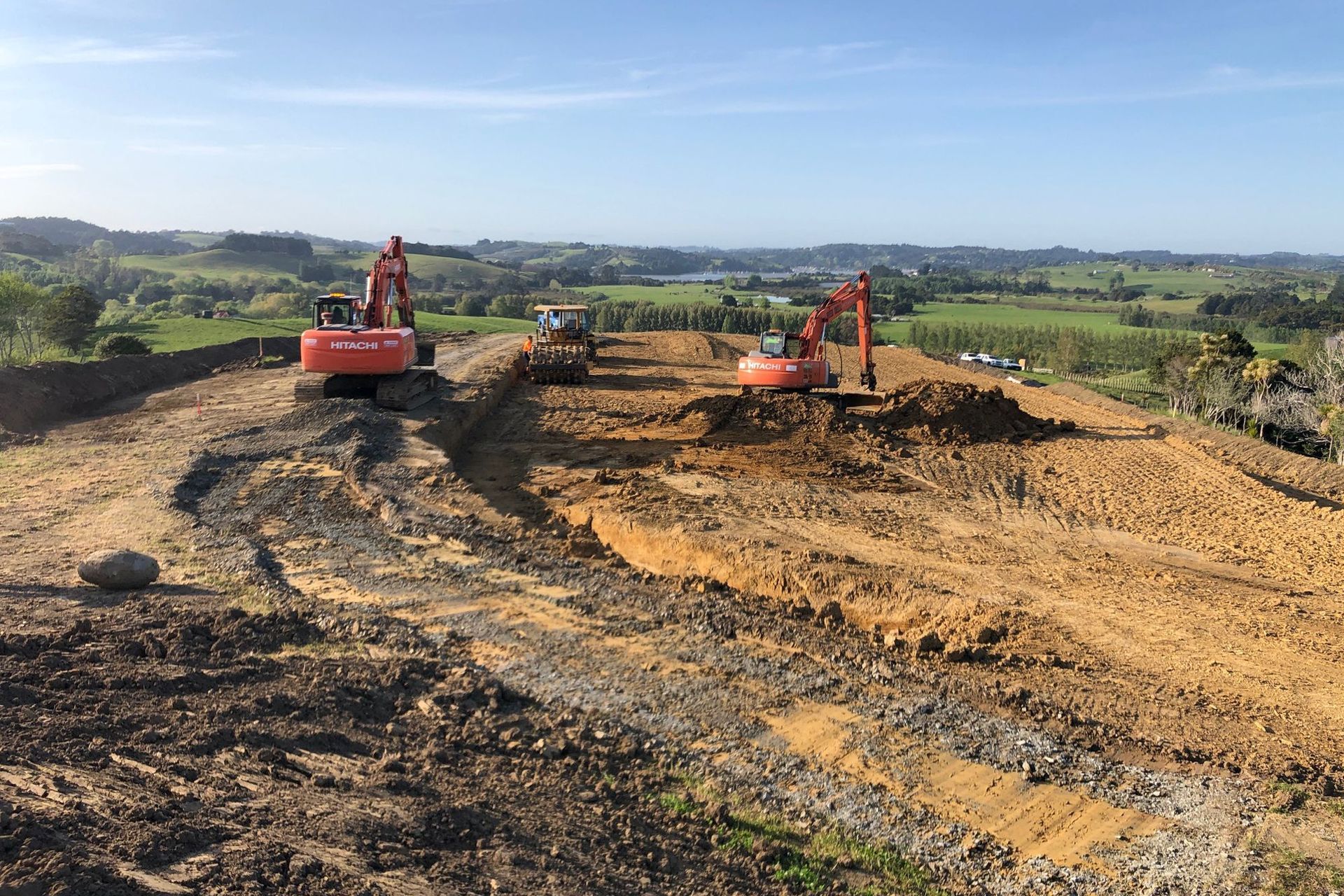 ArchiPro Project Summary - Comprehensive development featuring a house site, driveway, and tank installation at Matakana Ridge Line.