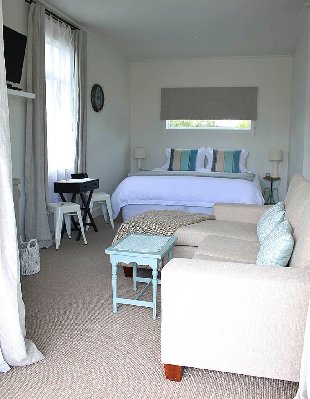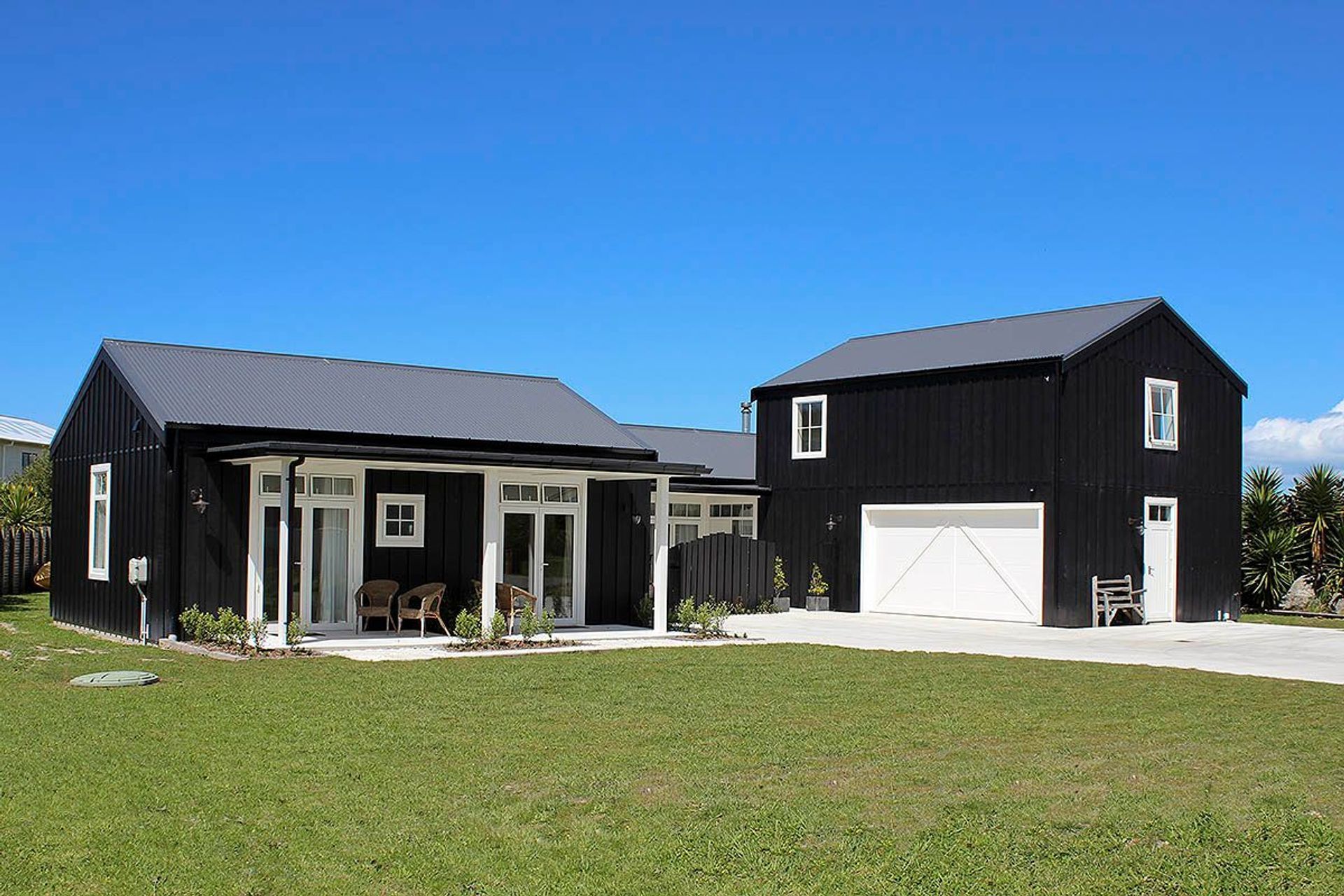 ArchiPro Project Summary - Architecturally designed barn-inspired bed and breakfast in Matakana featuring two studio-style suites with private bathrooms, connected by double doors for versatile accommodation options.