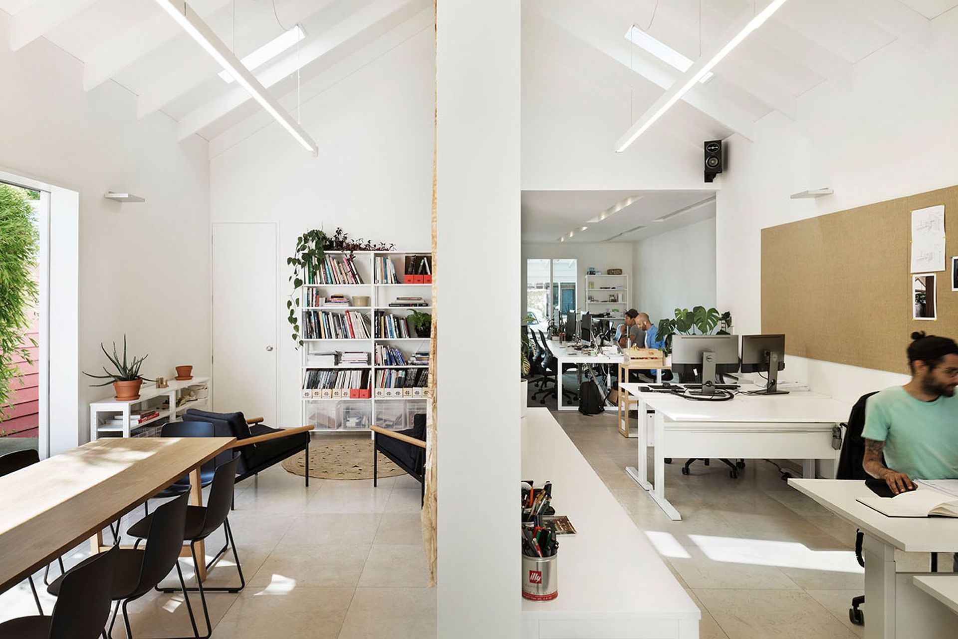 ArchiPro Project Summary - Transformation of an old tile studio into a vibrant shared workspace, highlighting its tiled history while fostering an open-plan environment that encourages natural light and collaborative team interactions.