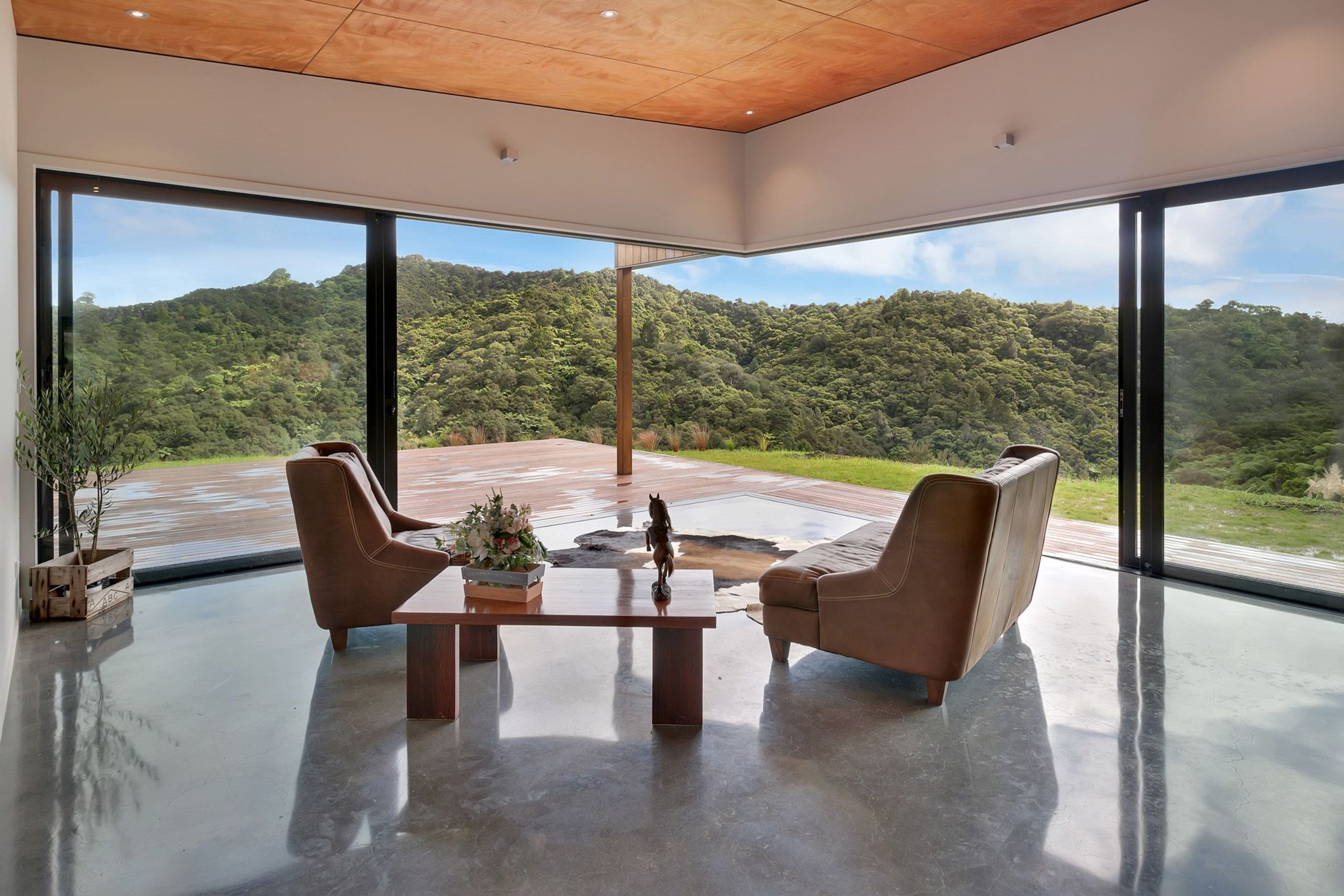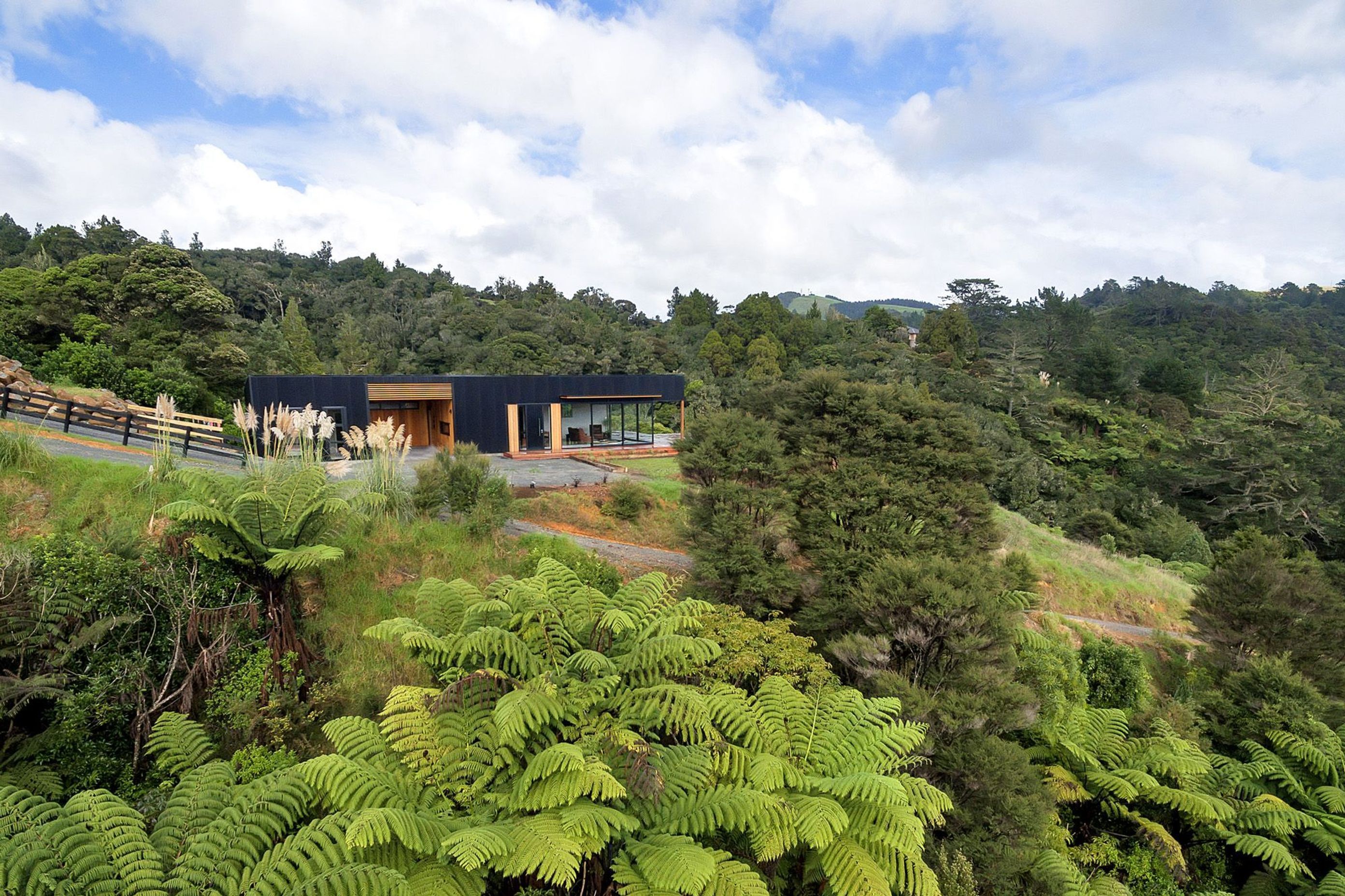 ArchiPro Project Summary - Maunu Whare: A thoughtfully designed hillside retreat featuring 3 bedrooms, 2 living rooms, and expansive views of a native valley, utilizing durable materials and innovative construction techniques for stability and aesthetic appeal.