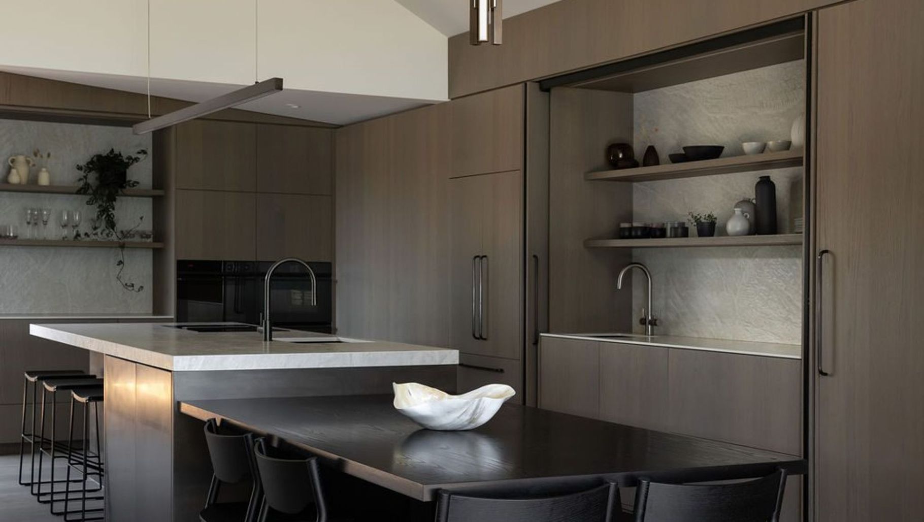 ArchiPro Project Summary - The Mead Residence in Raglan, New Zealand, showcases a seamless blend of luxury and functionality, featuring a finalist kitchen design by Annika Rowson, complete with a butler's pantry and elegant Manhattan Oak finishes.