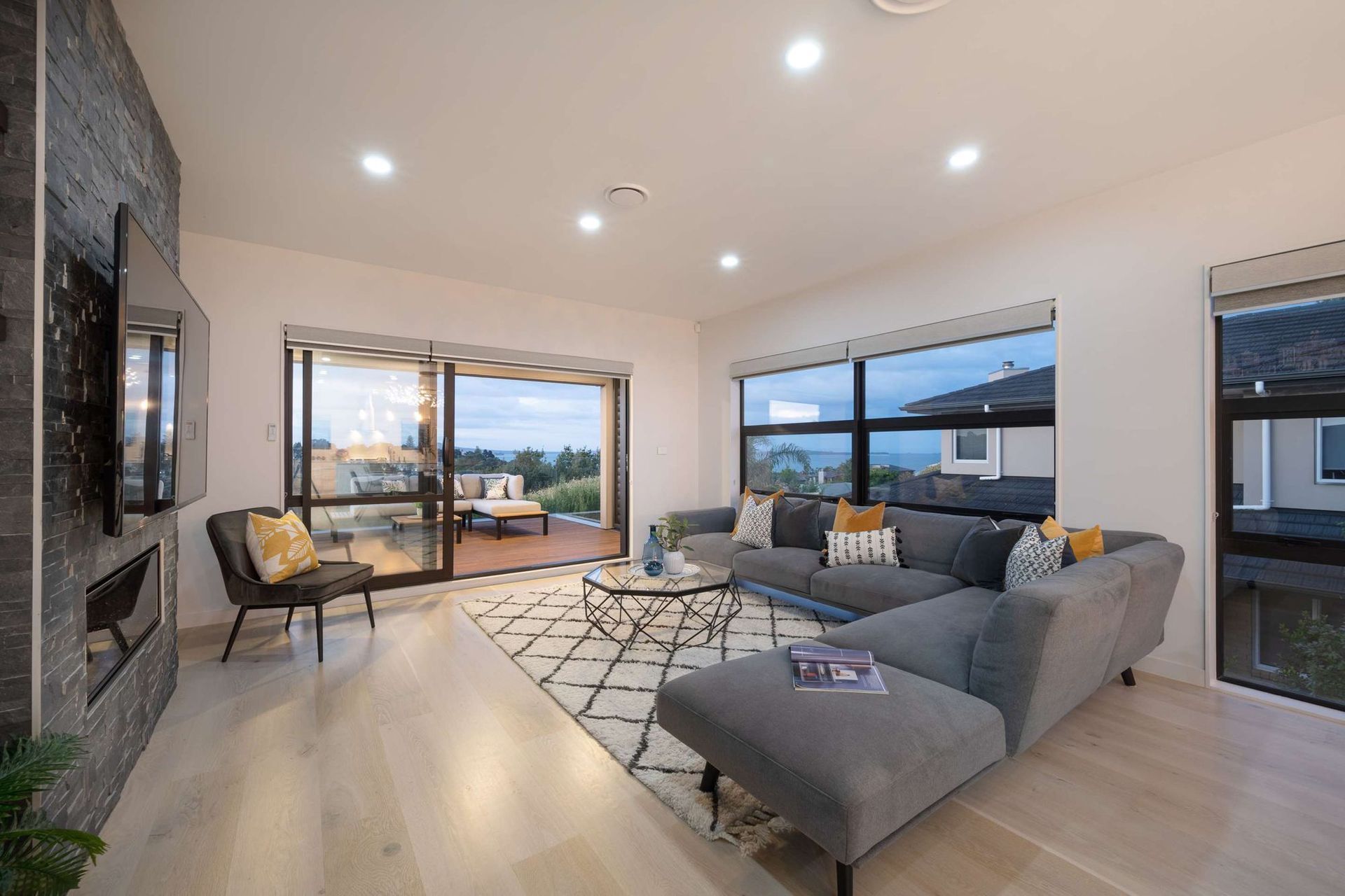 ArchiPro Project Summary - Luxurious architecturally designed home featuring five double bedrooms, stunning sea views, and high-end finishes, located in the prestigious Mellons Bay, zoned for Macleans College, with exceptional amenities for comfortable family living.