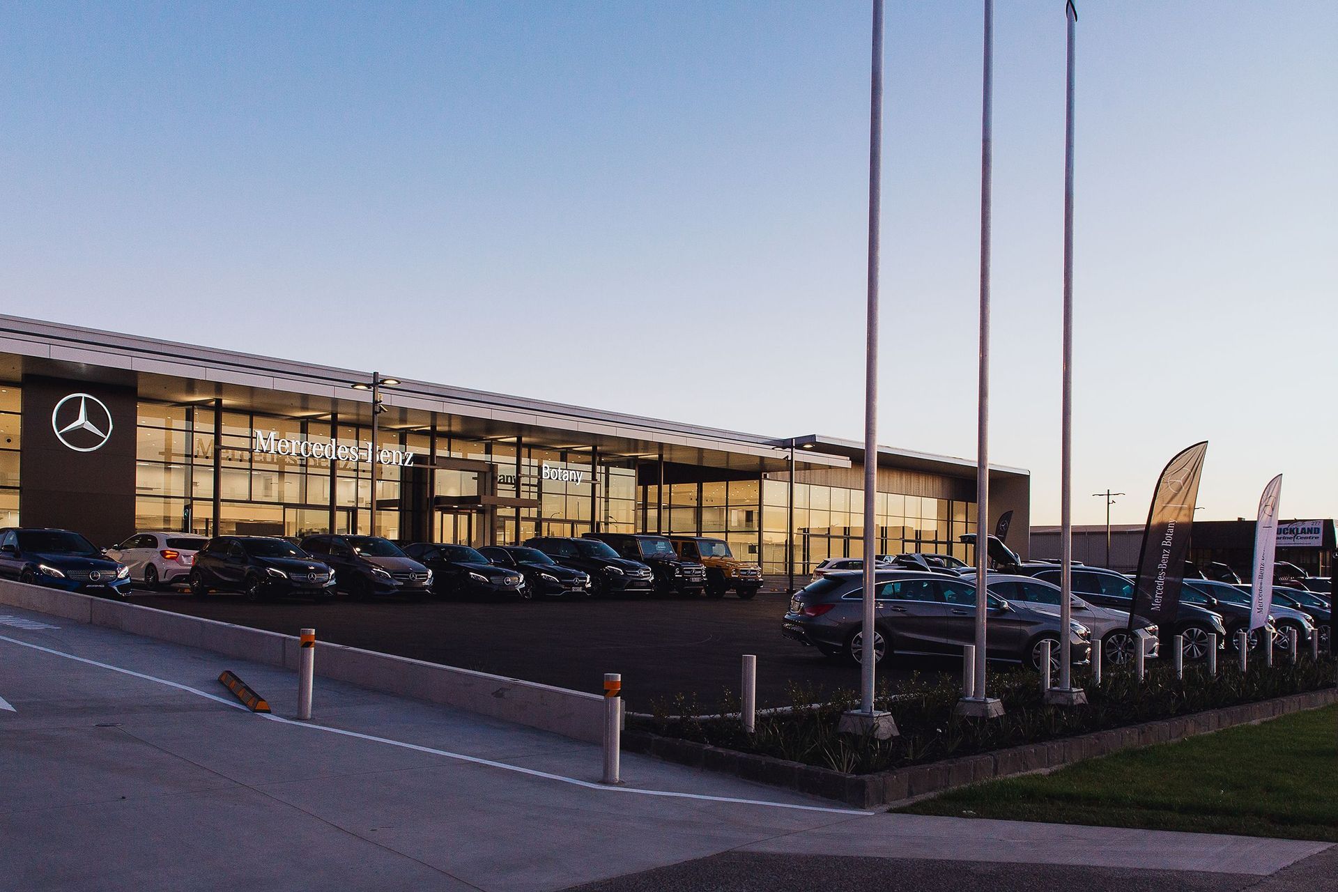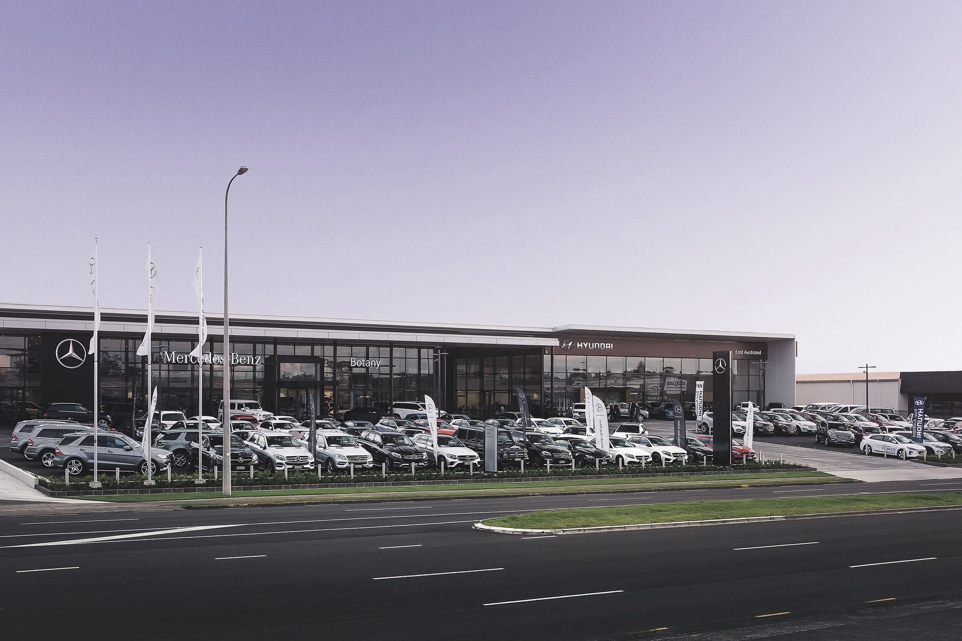 ArchiPro Project Summary - Mercedes Benz Botany: A premier 2800m2 showroom and workshop located in East Auckland, featuring both Mercedes-Benz and Hyundai brands, designed for optimal customer experience and operational efficiency.