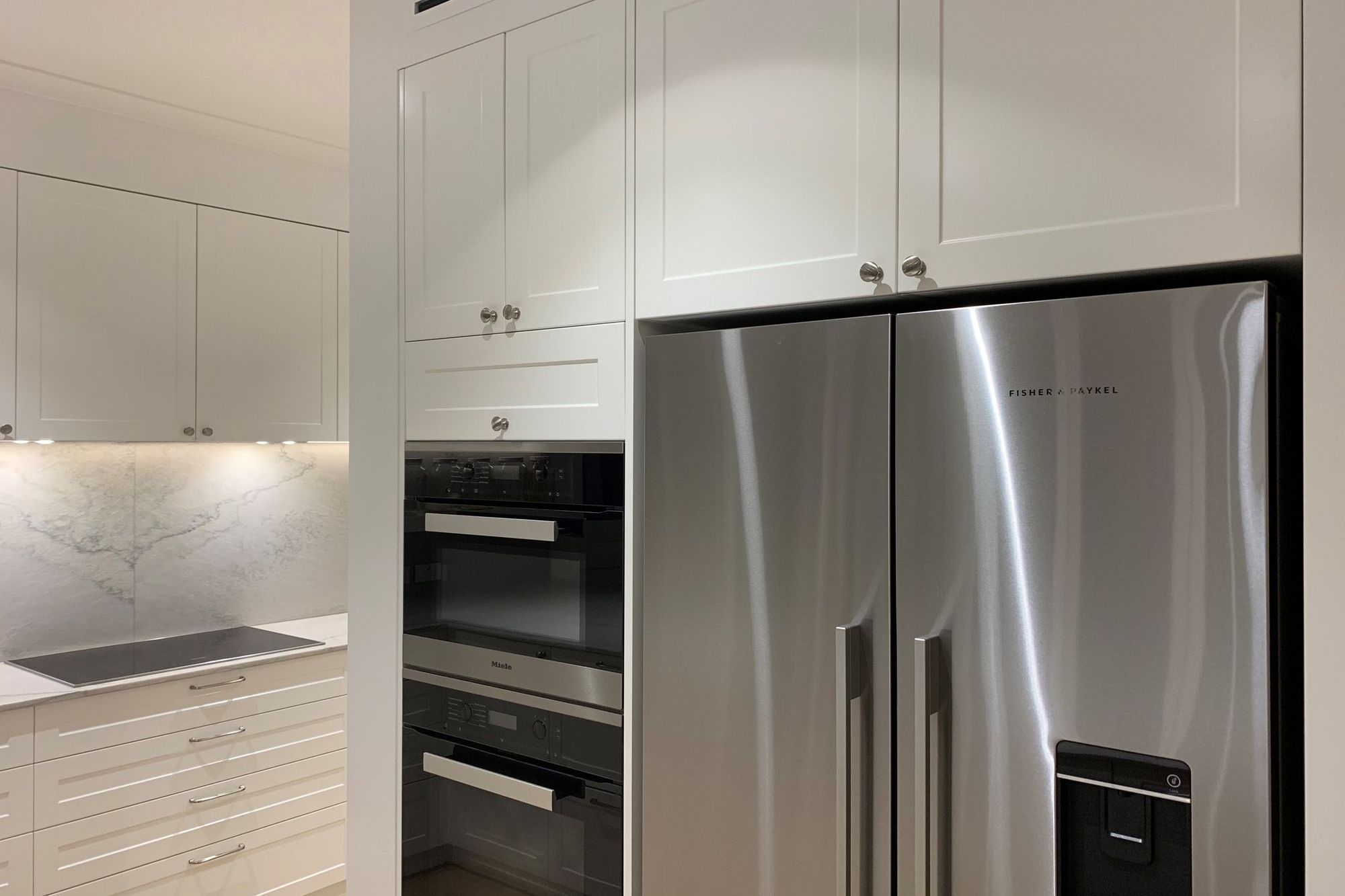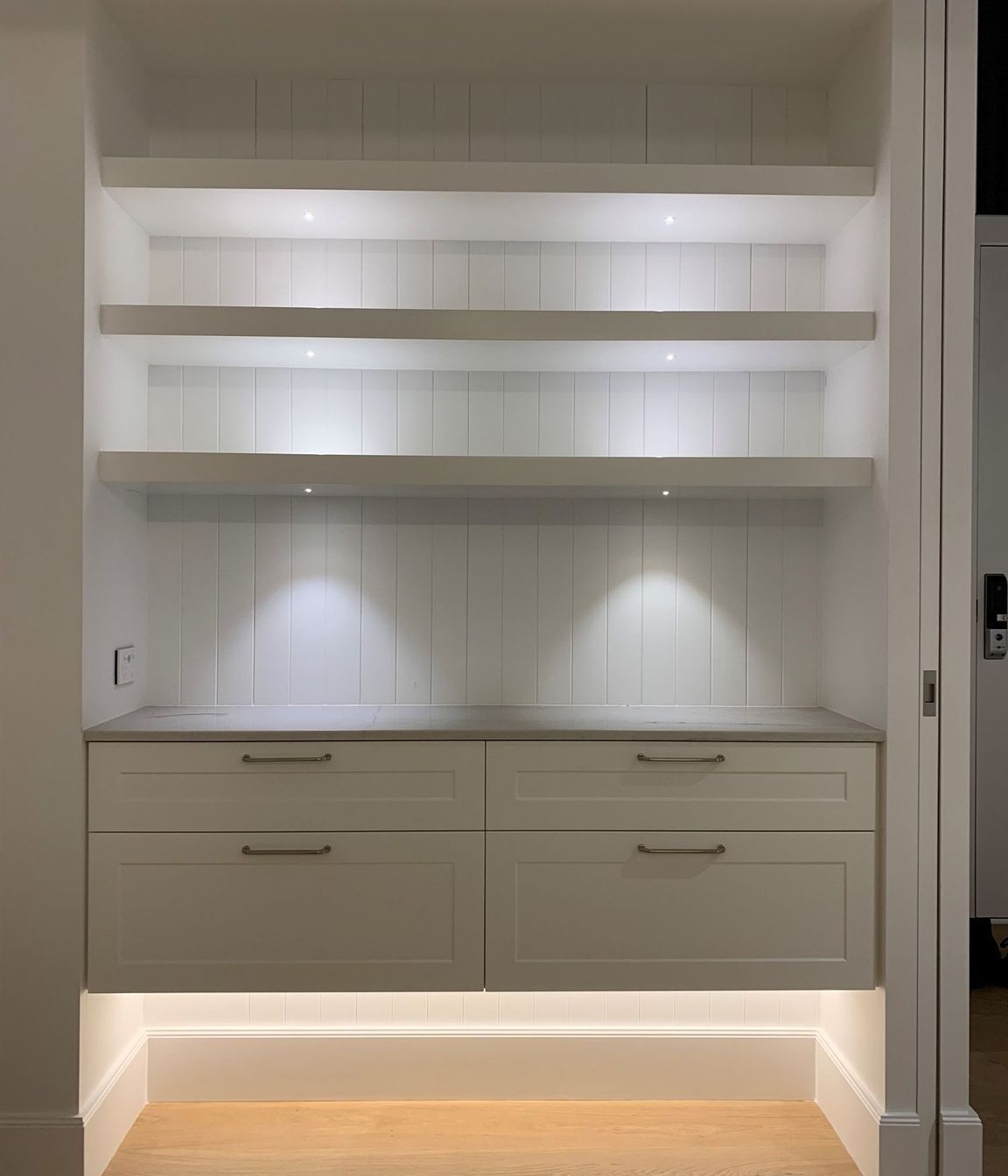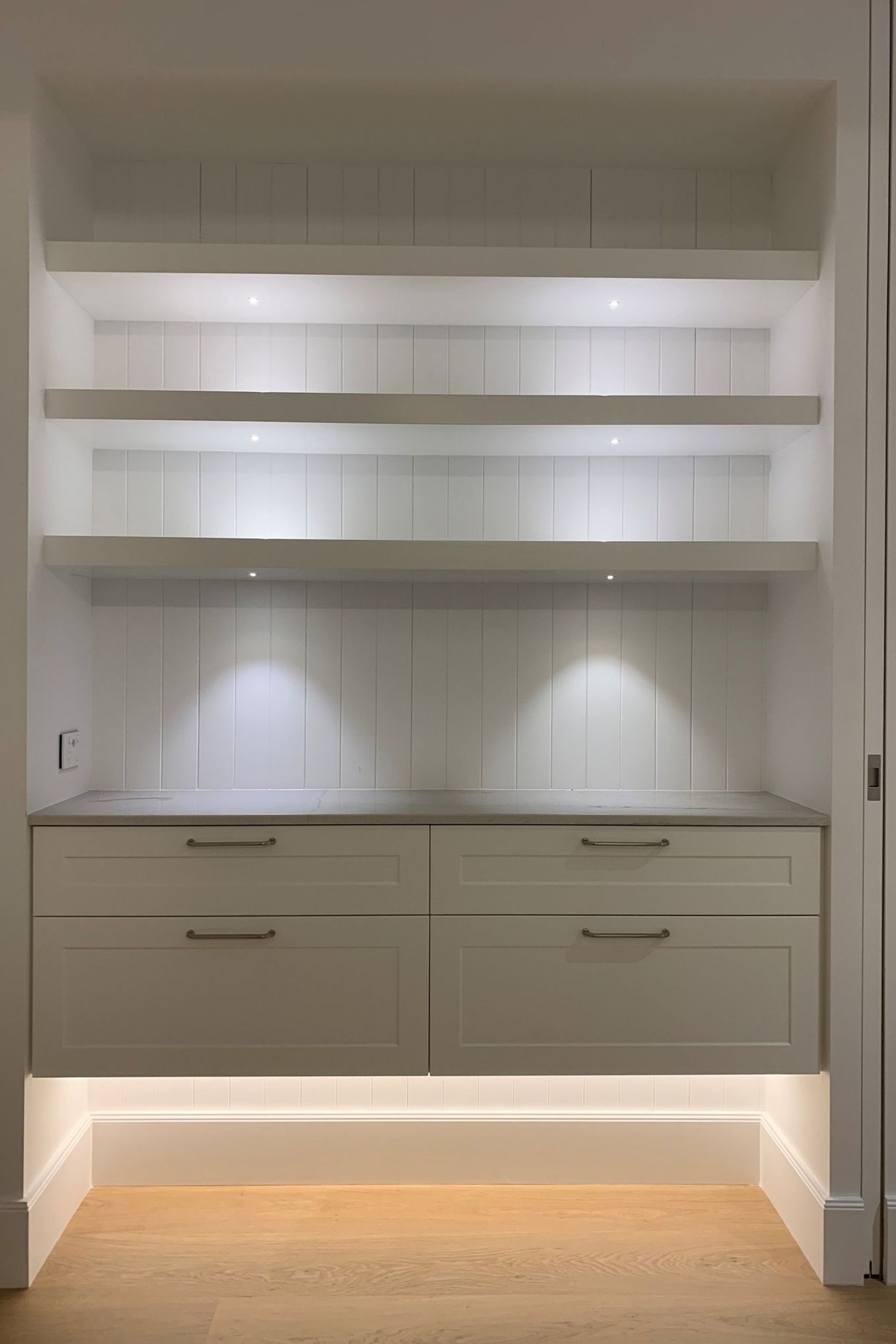 ArchiPro Project Summary - High-end joinery installation for a stunning residential project in Milford, featuring bespoke kitchen, bathroom vanities, wardrobes, and custom cabinetry.