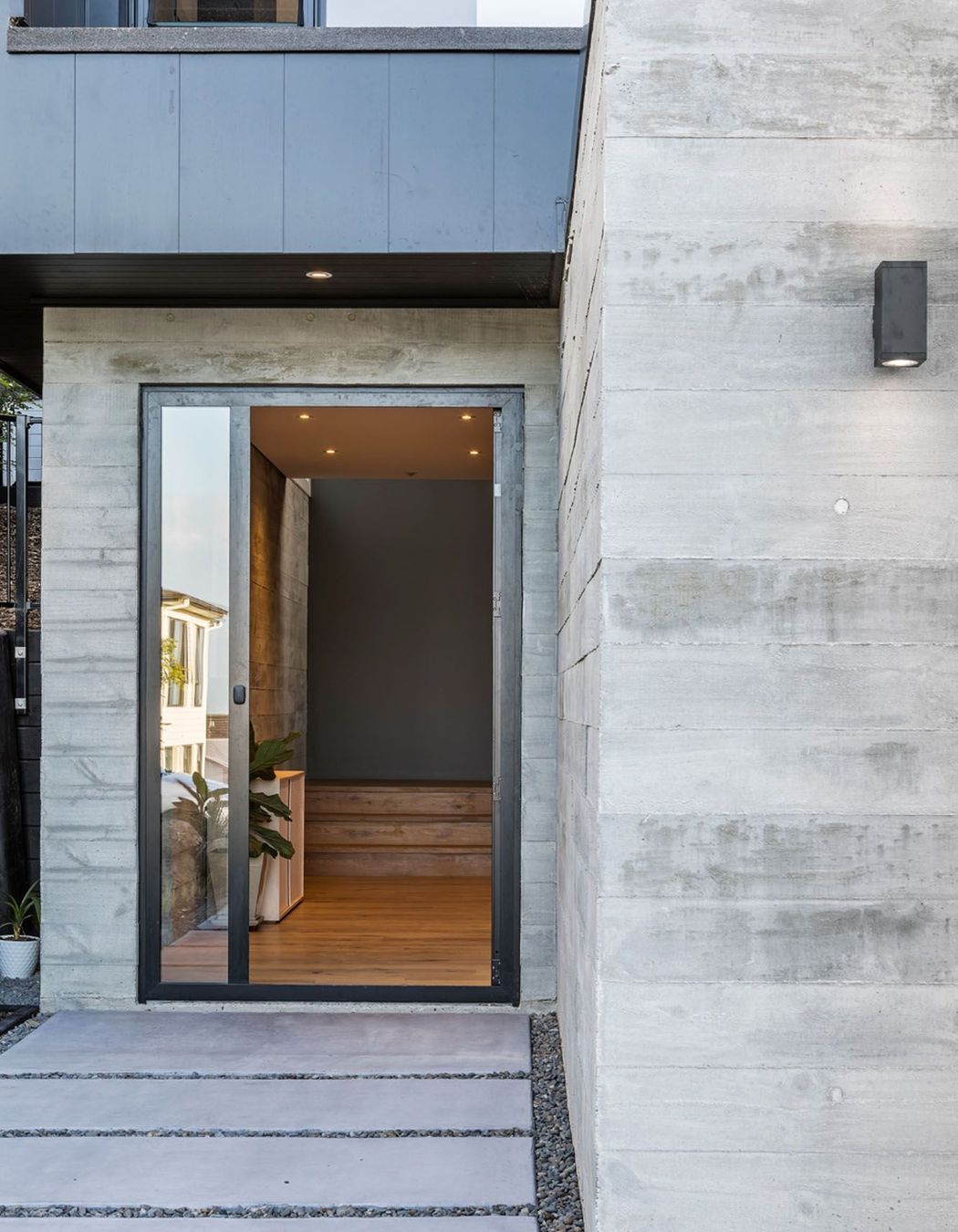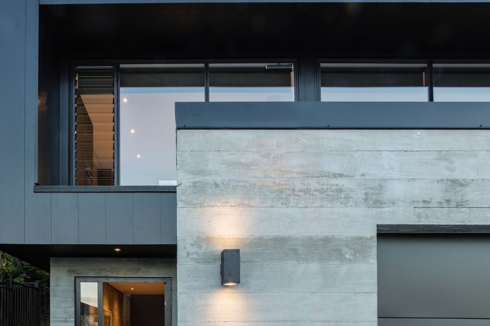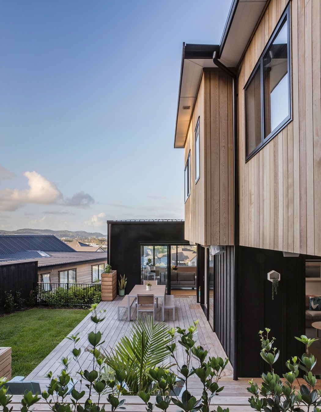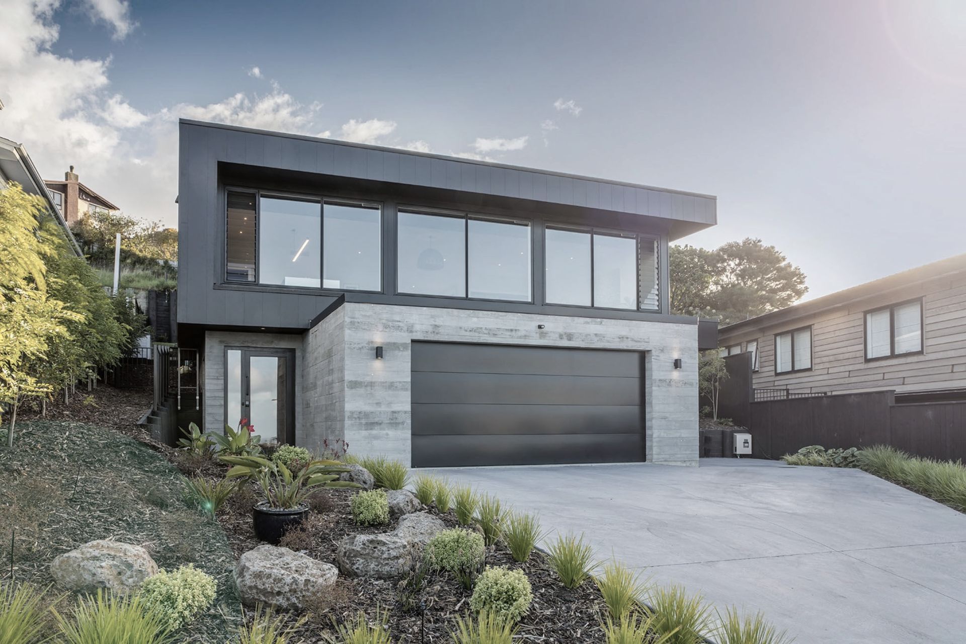 ArchiPro Project Summary - A contemporary home designed to maximize views and sunlight, featuring extensive poured in situ concrete, vertical aluminium and cedar pods, and an open-plan living space that seamlessly integrates with a large alfresco area and decking.