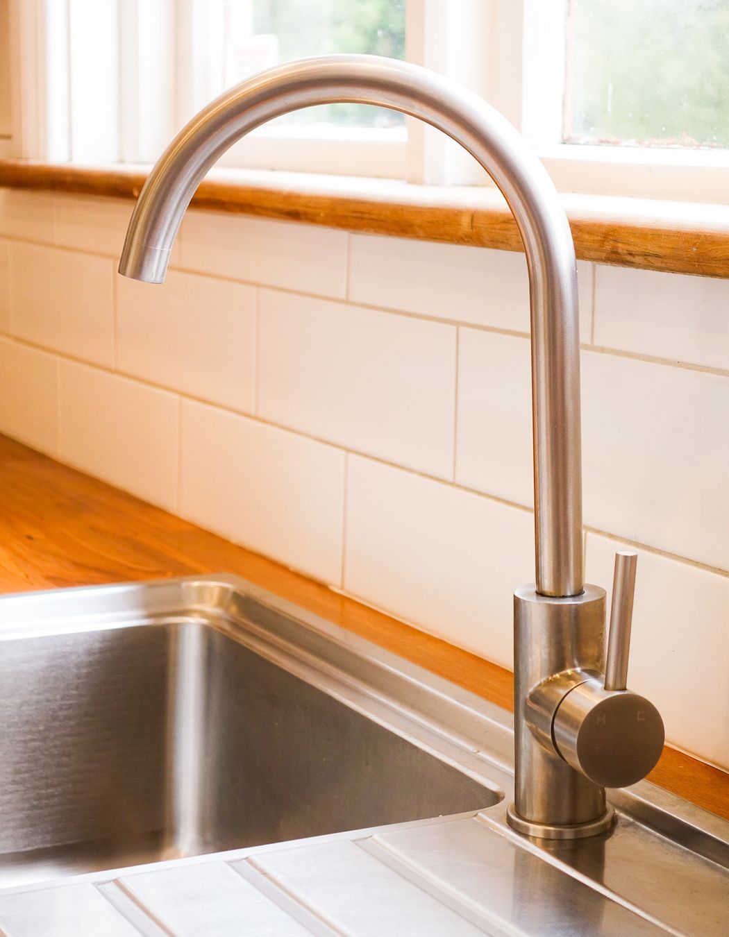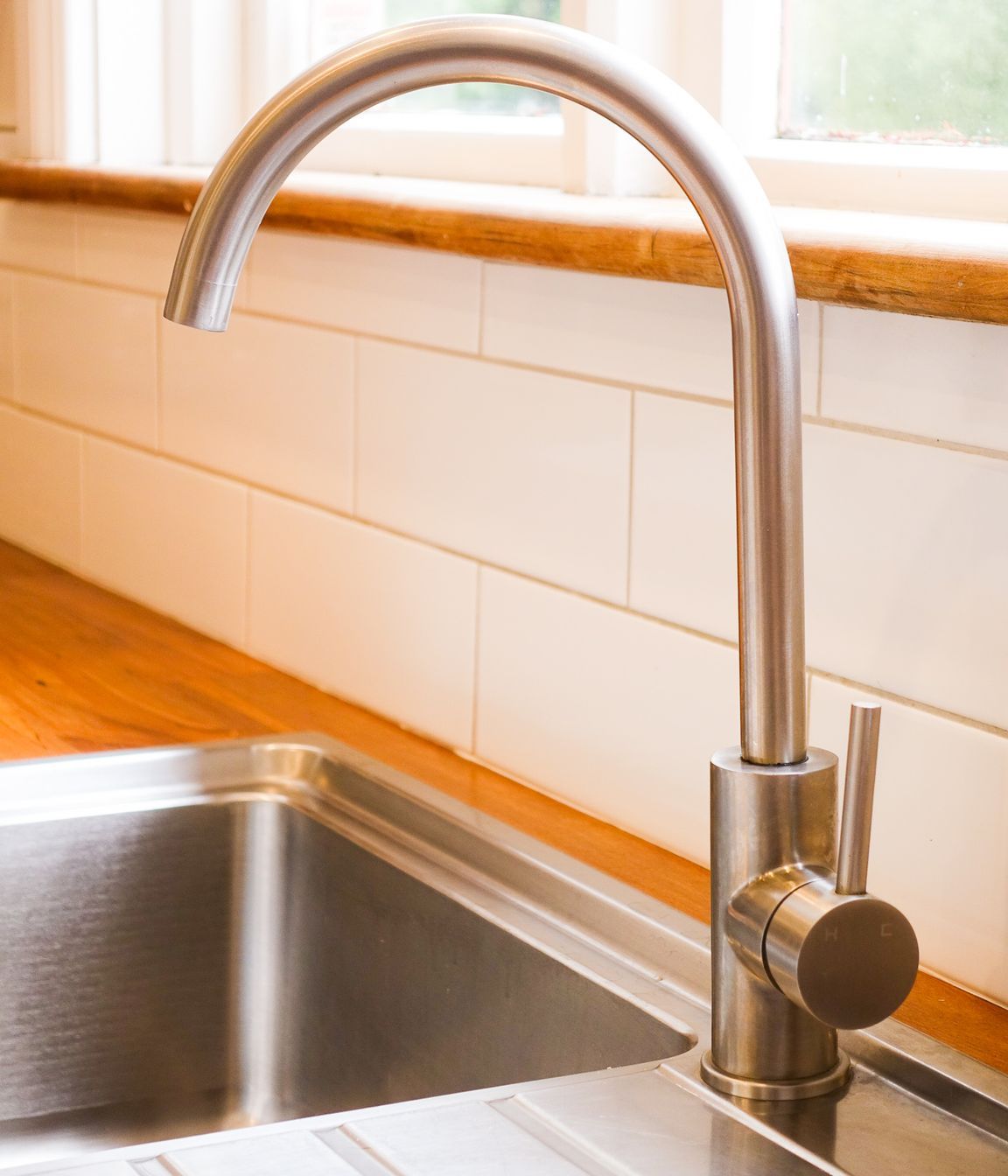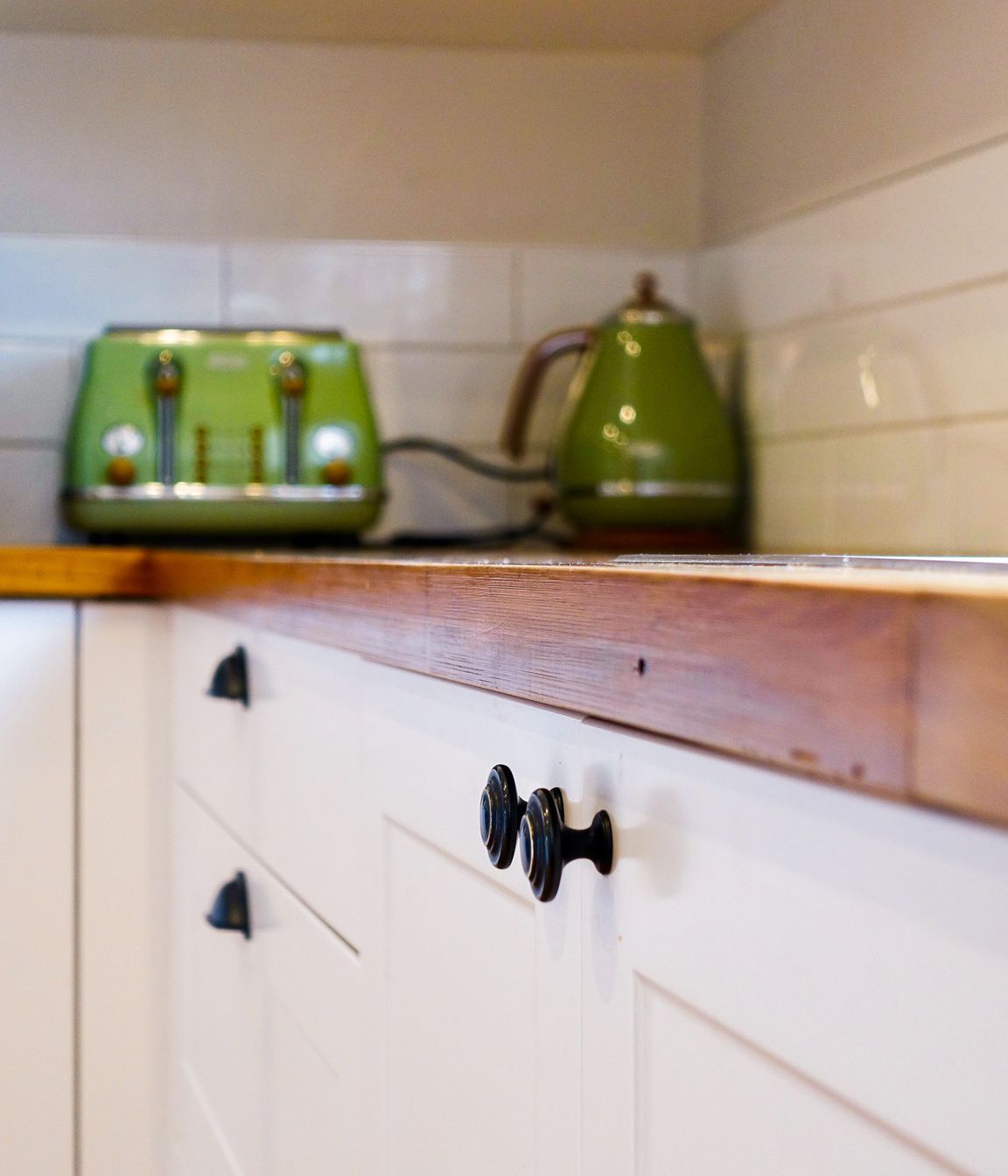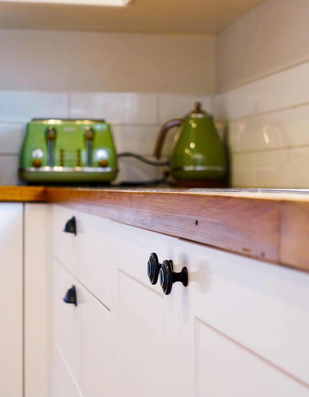 ArchiPro Project Summary - A thoughtfully designed kitchen in a 1903 villa, featuring white painted cupboards, rimu wood bench tops, and a blend of antique handles, complemented by ample storage solutions including a pull-out double pantry.