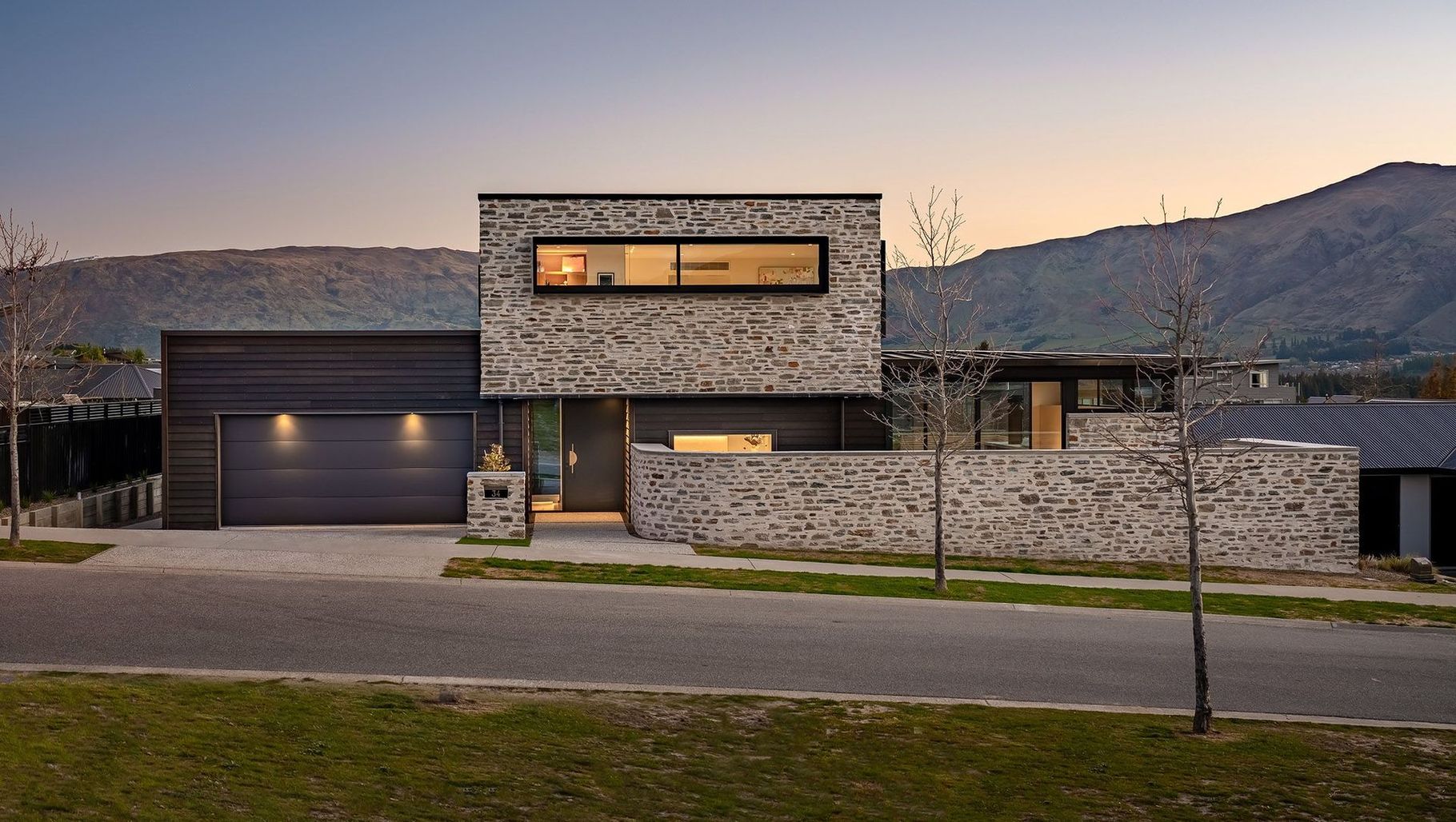 ArchiPro Project Summary - A transformative modern renovation in Peninsula Bay, Wanaka, featuring a second story for stunning lake views, extensive interior upgrades, and a striking blend of schist stone and cedar weatherboard, completed in 2022.