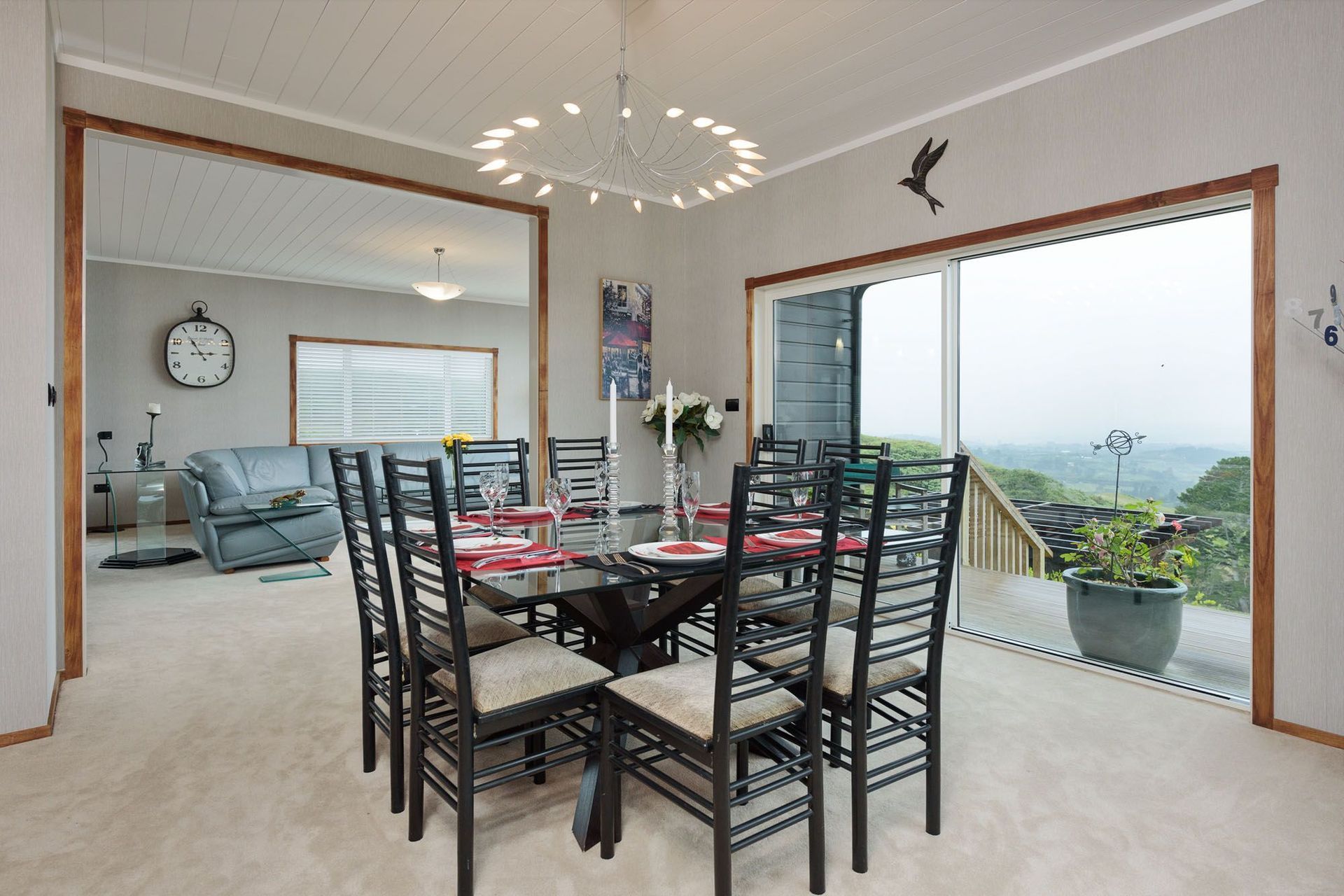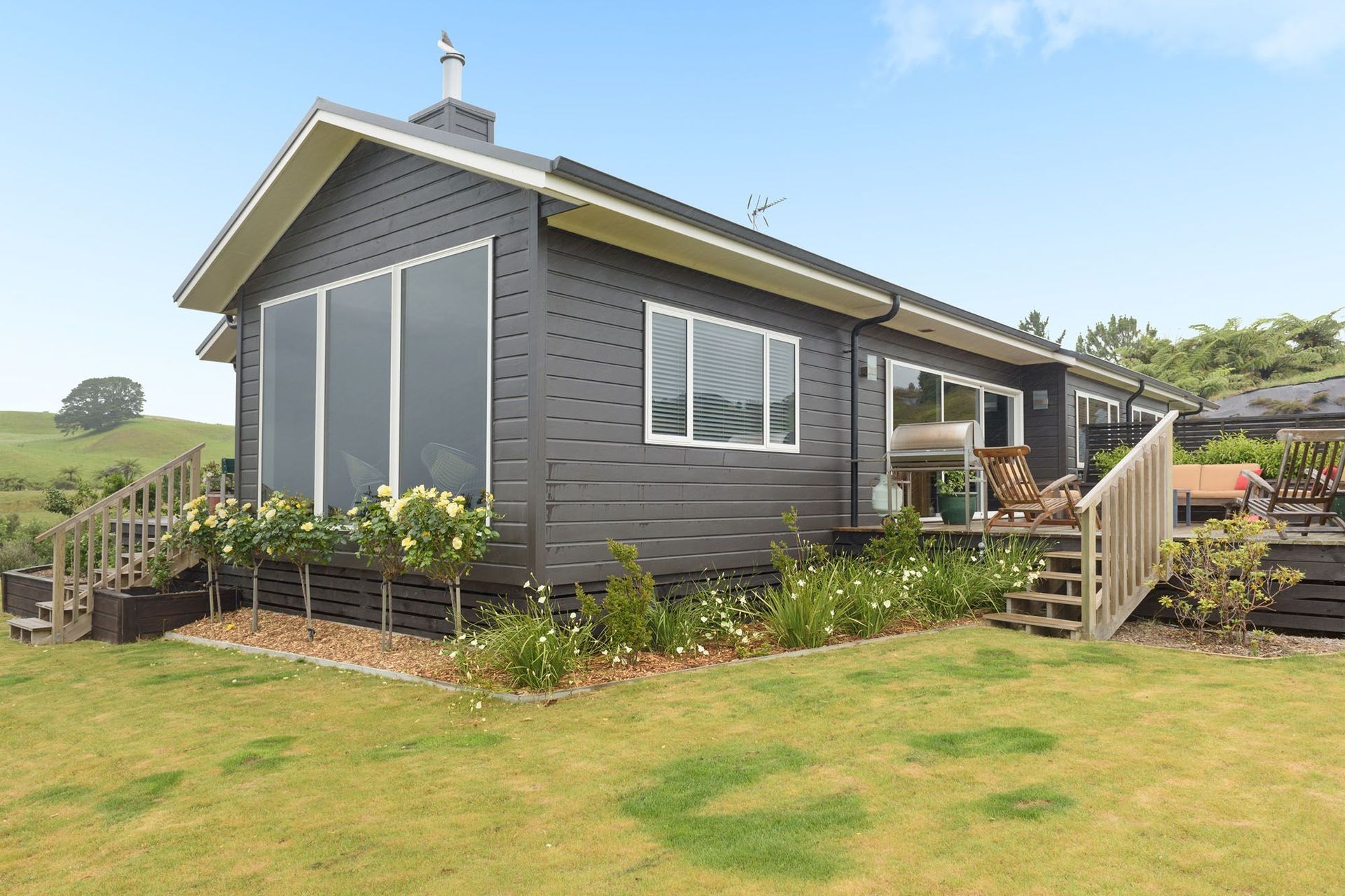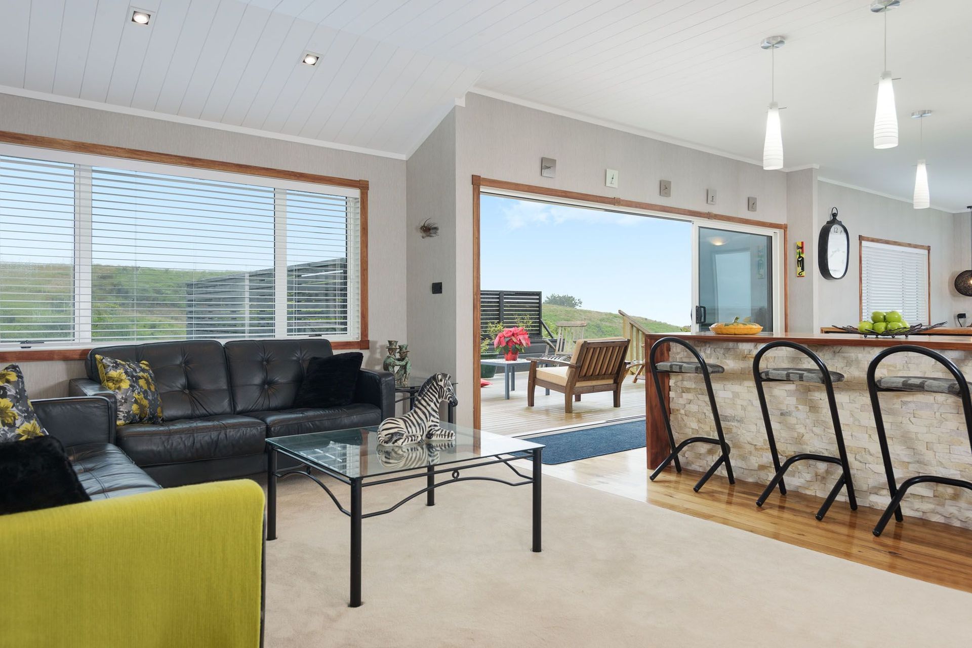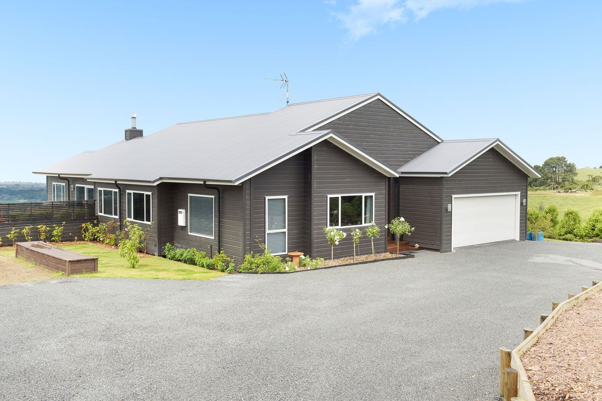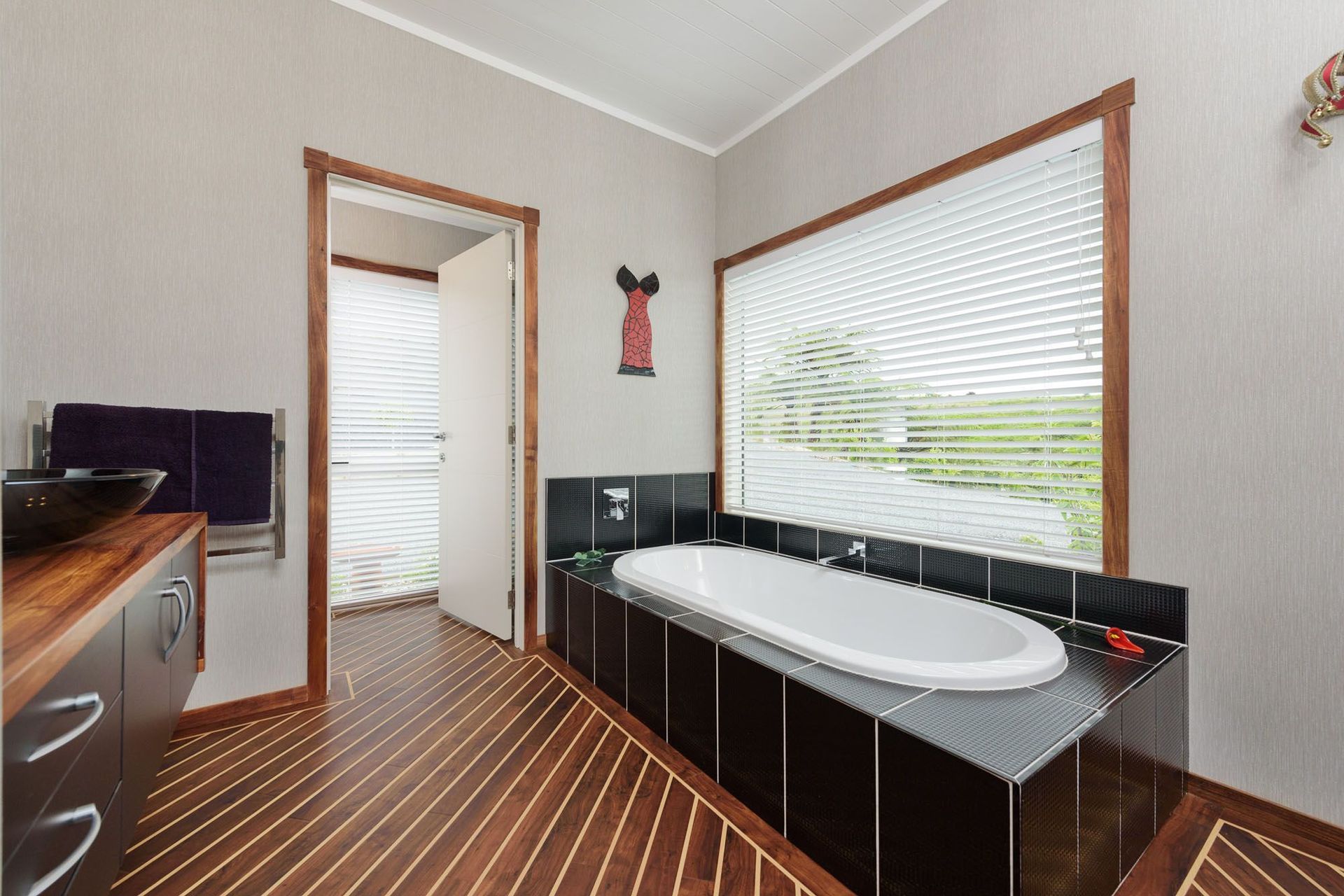 ArchiPro Project Summary - Stunning home on Minden Road designed to maximize breathtaking views of Tauranga Harbour, featuring exquisite Tasmanian Blackwood interiors, Coloursteel roofing, painted timber front door, and rustic timber weatherboard cladding.