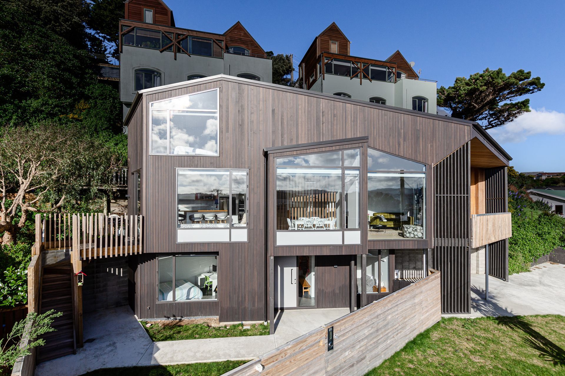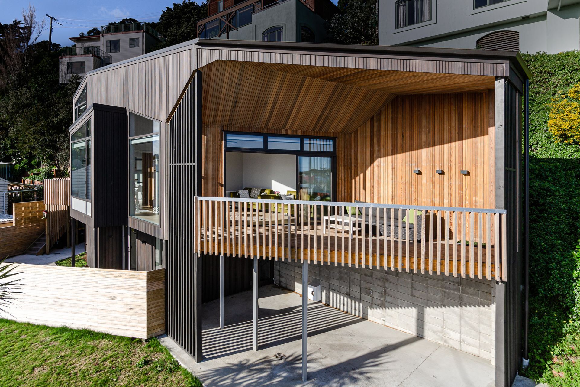 ArchiPro Project Summary - A modern, angular home in Miramar, Wellington, designed by BBC Architects to maximise natural light.