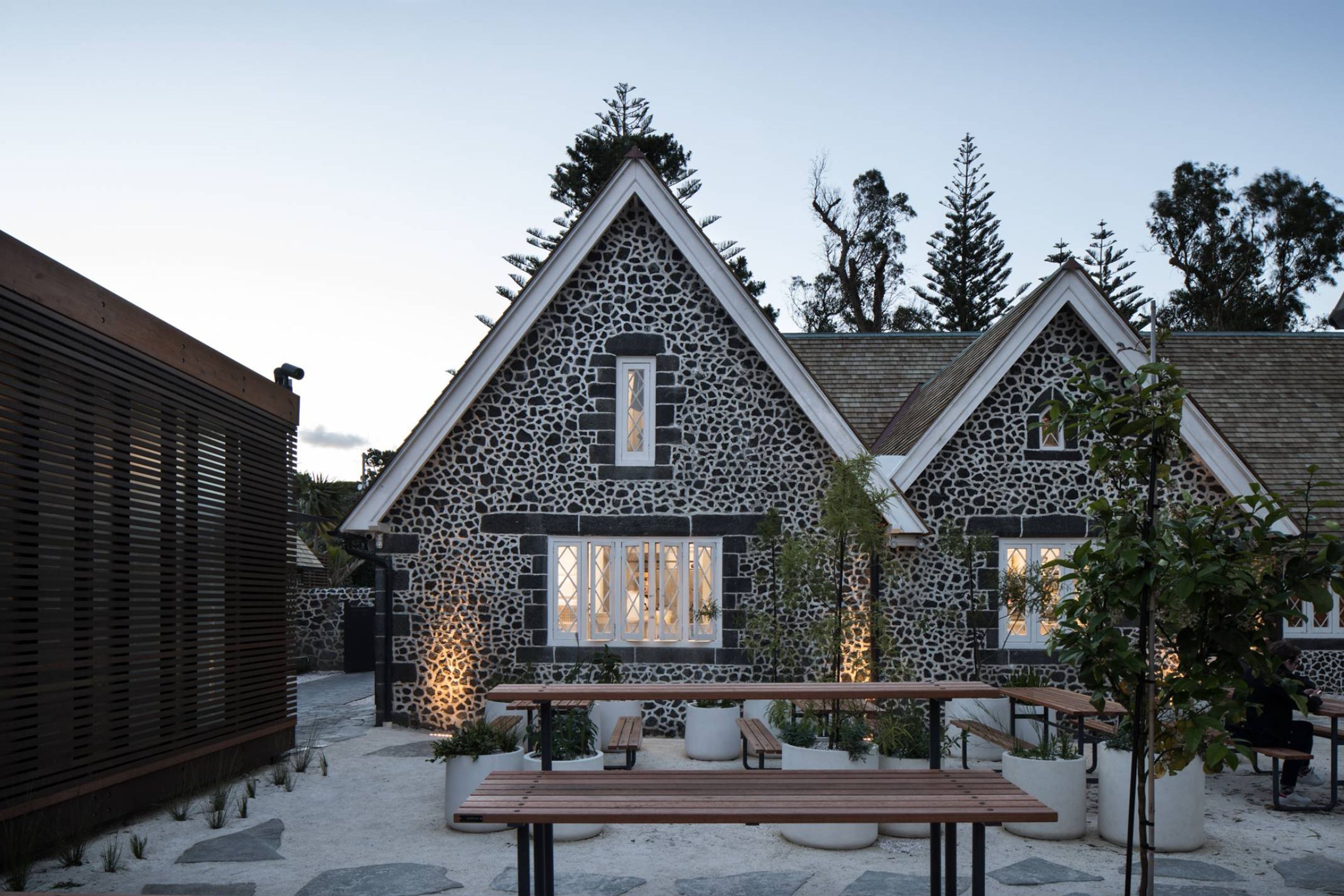 ArchiPro Project Summary - A purpose-built restaurant designed to enhance the renovation of the historic Melanesian Mission Heritage buildings in Mission Bay.