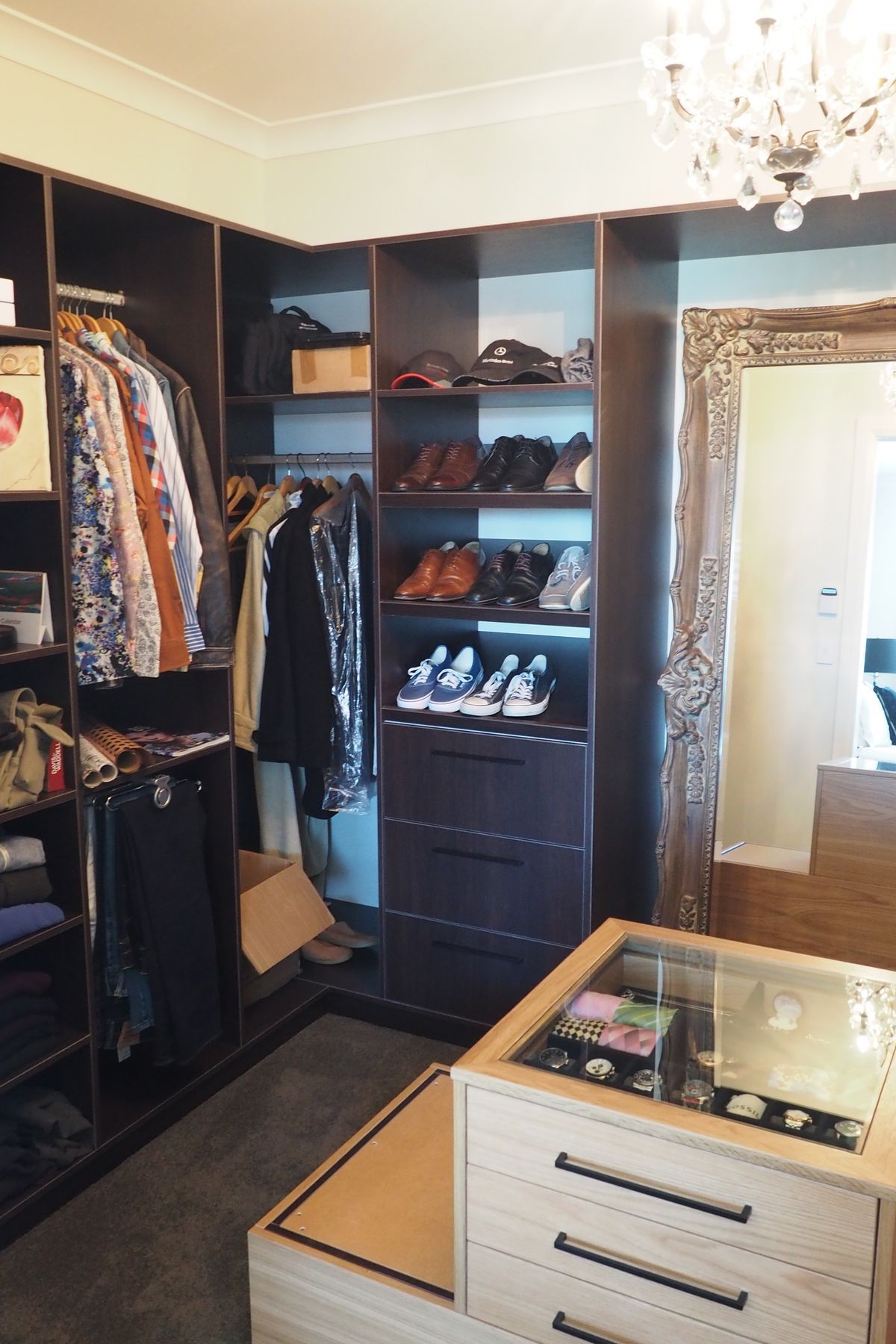 ArchiPro Project Summary - A stunning modern classic kitchen featuring a vibrant island, elegant copper tiles, and stylish brass fixtures, complemented by beautifully designed vanities and spacious wardrobes tailored for his and her use, along with a functional seated display cabinet.