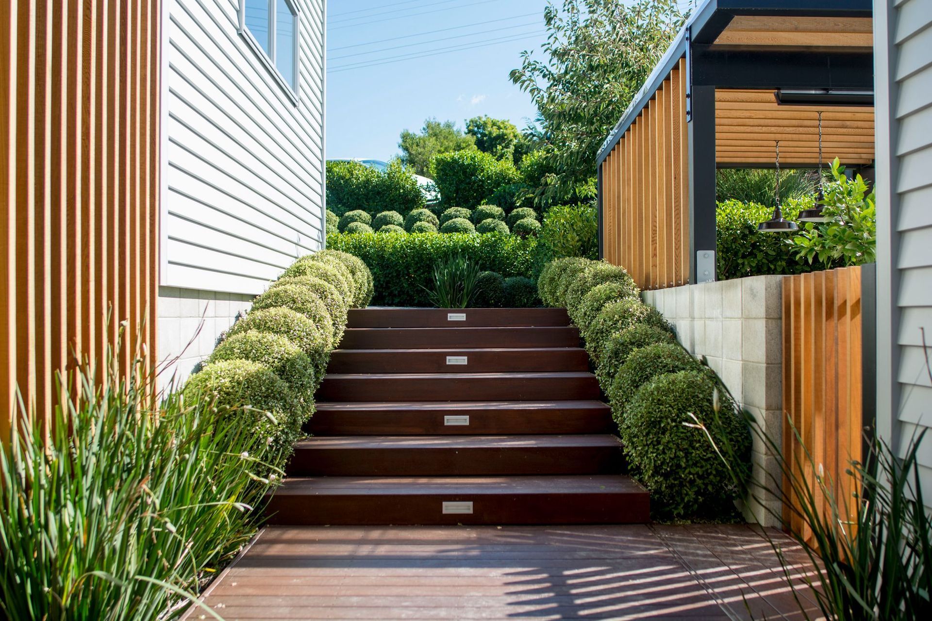 ArchiPro Project Summary - A contemporary garden design for a coastal home, featuring sheltered outdoor living areas, privacy enhancements, and a seamless connection to the stunning Waimea Inlet landscape.