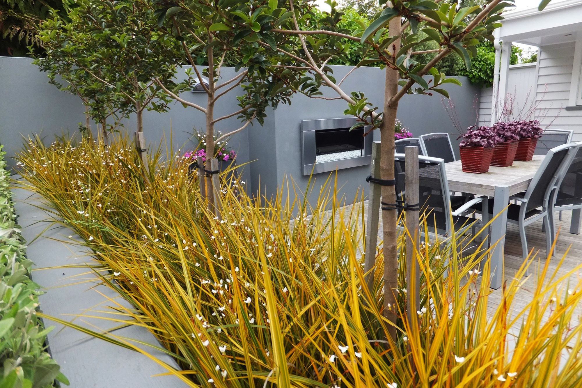 Design + Garden Landscapes. Design + Garden Landscapes is in the business of providing beautiful gardens and outdoor living areas that match or surpass our customer’s dreams. The look on our customers' faces when we have been successful says it all. We have been in business now for over 25 years. It’s been a long journey and we have figured out a winning formula for keeping our customer happy and creating quality every time.The goal for us has always been to blend beauty, function and quality in all of our work. We soon realised that in order to retain control of our projects from start to finish, we would need to keep all of the services in-house. Design & Garden Landscapes became one of the first professional Otago landscape firms to provide a full in-house service. Today our team boasts qualified specialists in design, planting, construction and maintenance, producing quality every step of the way.Our team work closely together and each team member is briefed on the whole project as well as the task they are personally responsible for. You can be confident that you won’t be surprised by the arrival of a cowboy/subcontractor on your doorstep (who has little understanding of the overall project, let alone what they are doing).Design and Garden Landscapes is an accredited member of REGISTERED MASTER LANDSCAPERS, (Our industry organisation) who host a bi-annual National awards programme. The company has entered these awards since 2002 and has picked up awards every time since then with creative design and industry-leading construction, including the National Award of LANDSCAPE OF THE YEAR for 2010 and 2014.If you are looking for an awesome team whose idea of success is “that look” on your face at the end of the project – you have come to the right place. Our awards tell us our formula is a good one and our offering can be summed up as follow:A company with 25+ years of experience in designing and building award-winning gardens.Innovative and Creative with fresh ideas.An in-house team of qualified professionalsA proven process to take you seamlessly from concept to completionA fun and enthusiastic team of staffWe aim to meet and exceed your expectations.Increase the value of your largest asset