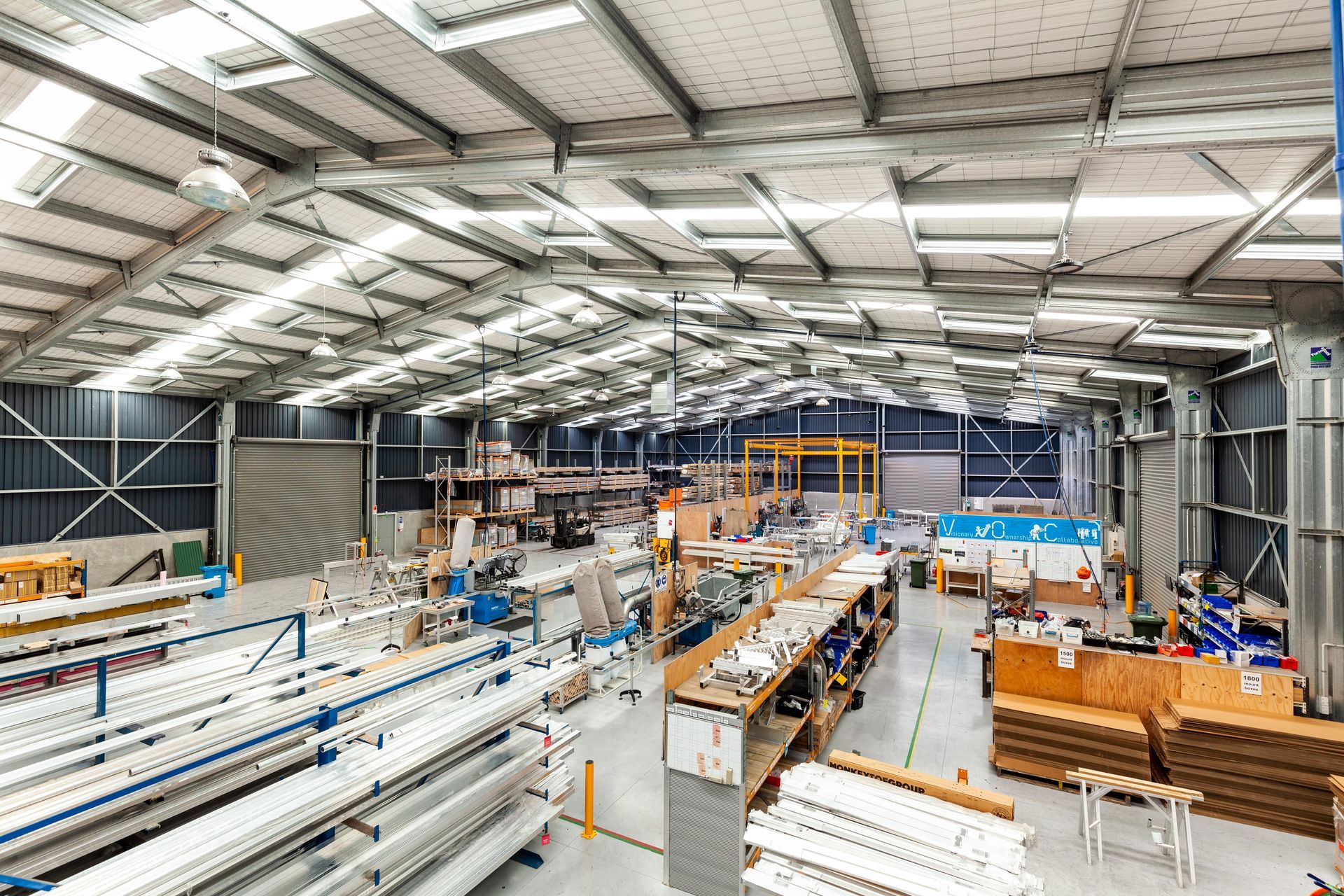 ArchiPro Project Summary - Innovative steel workshop for Monkey Toe, featuring advanced machinery, a gantry crane, and multi-disciplinary offices with modern glass partitions, designed and constructed by Location Construction in Taranaki.