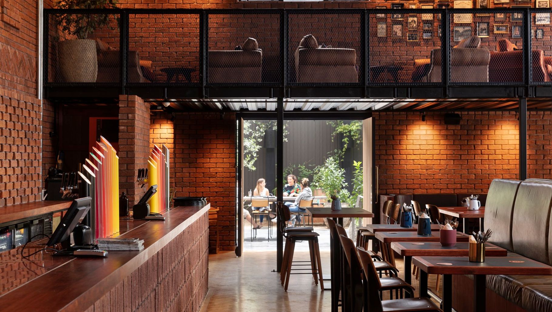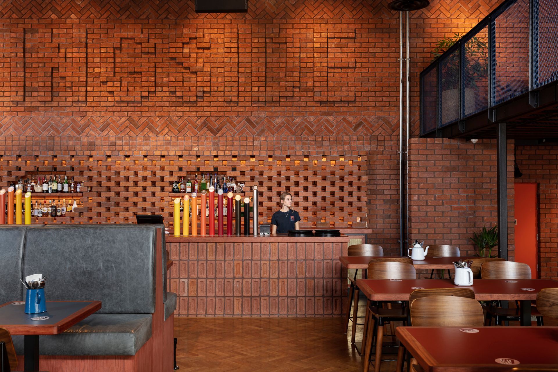 ArchiPro Project Summary - The Morningside Tavern in Auckland showcases a unique use of brick, creating a monumental yet intimate atmosphere within its 300 sqm space, completed in November 2018. Photography by Sam Hartnett.