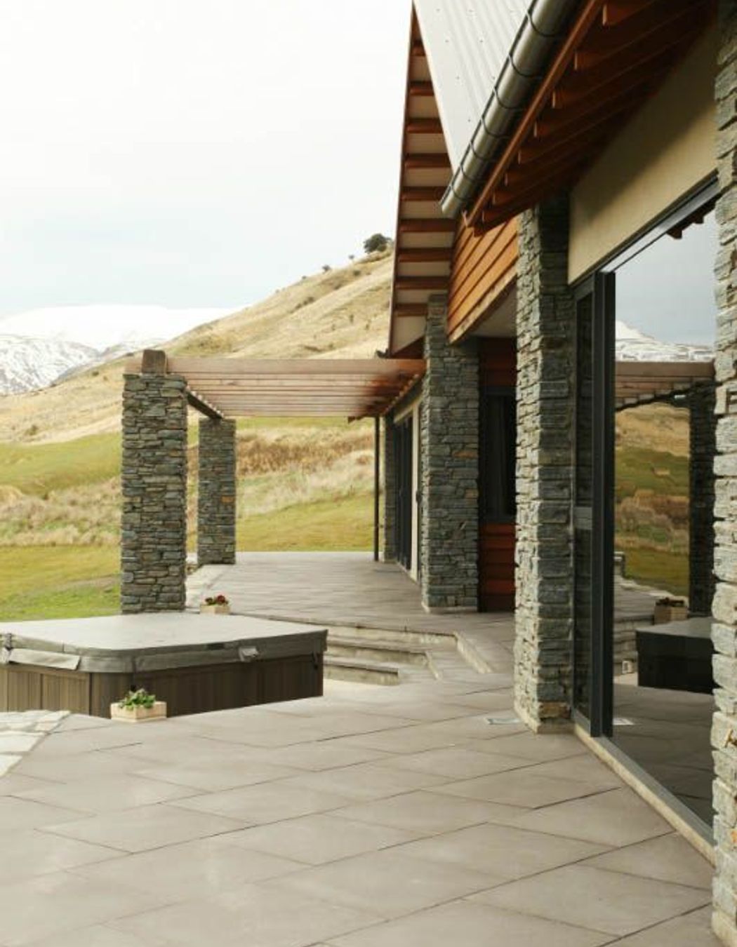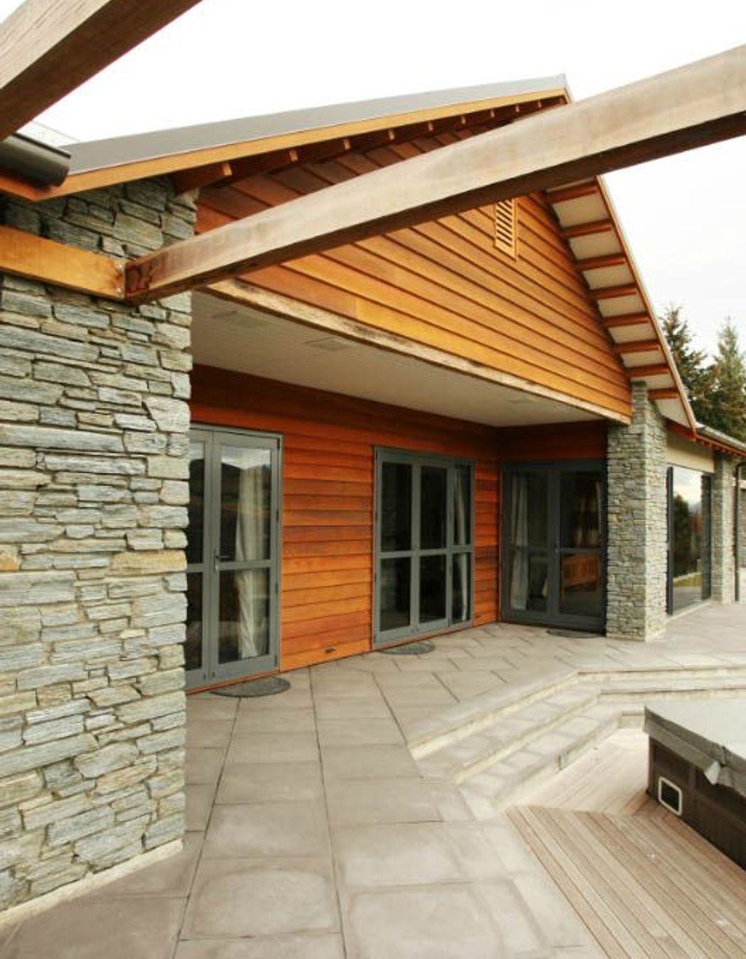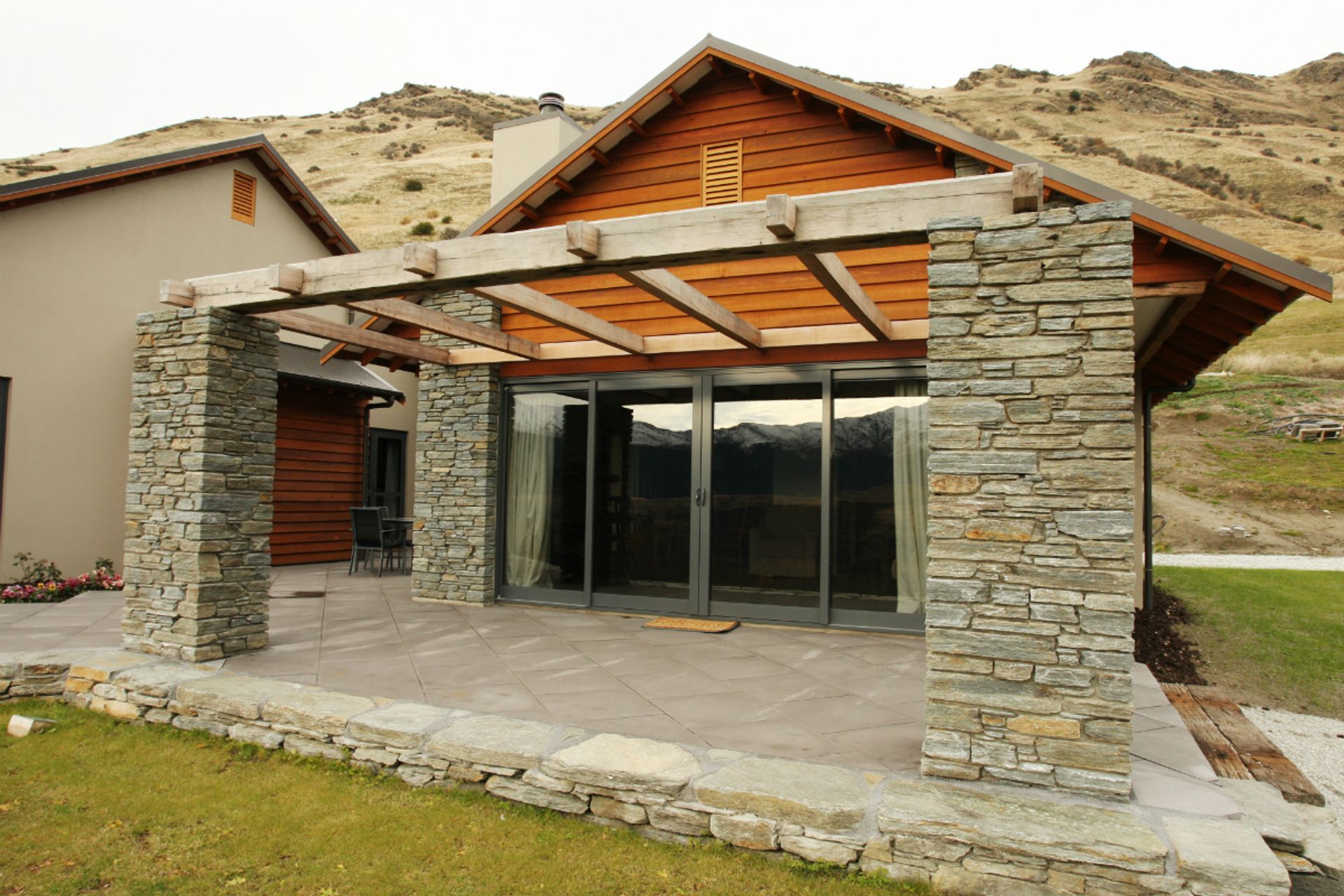 ArchiPro Project Summary - Traditional home with natural timber cladding, featuring hardwood beams and a luxury 2-bedroom home stay apartment, perfectly situated above Lake Hayes.