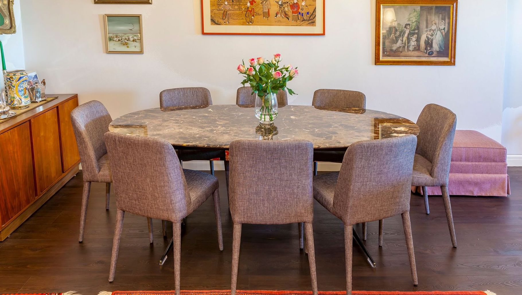 ArchiPro Project Summary - The Mosman project features modern interior design with elegant wooden flooring and carefully selected furniture, creating an inviting dining room perfect for gatherings.