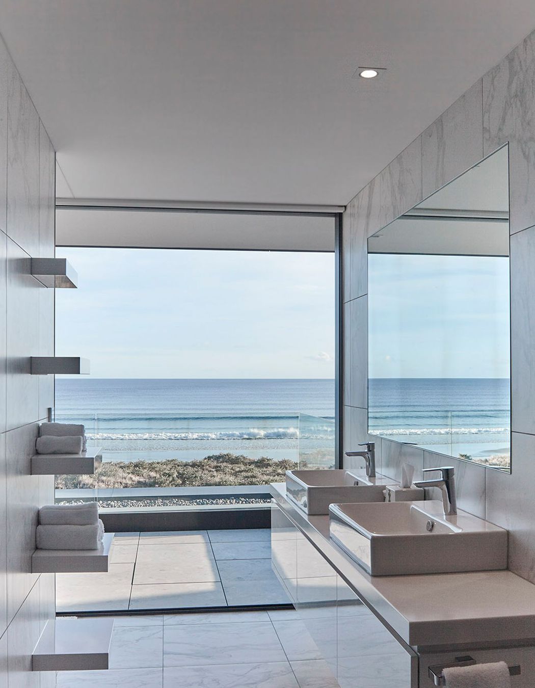 ArchiPro Project Summary - Mount Beach House: A refined coastal dwelling featuring advanced detailing, expansive glass, and contemporary convenience, seamlessly connecting to the beach and surrounding water.