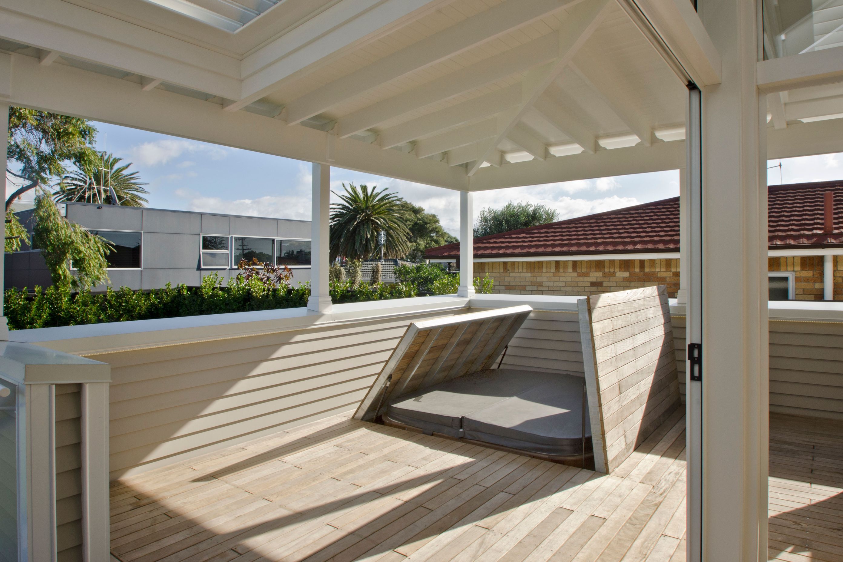 ArchiPro Project Summary - Award-winning classic home featuring innovative indoor-outdoor living, a designer kitchen with bi-fold windows, and a luxurious integrated spa, all crafted with rustic oak flooring and unique architectural details.