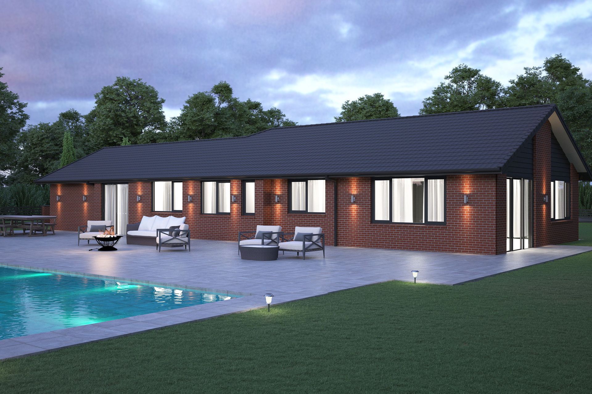 ArchiPro Project Summary - Showcasing a versatile house plan through three distinct options, featuring varied cladding and roof styles, each set in its own unique environment.