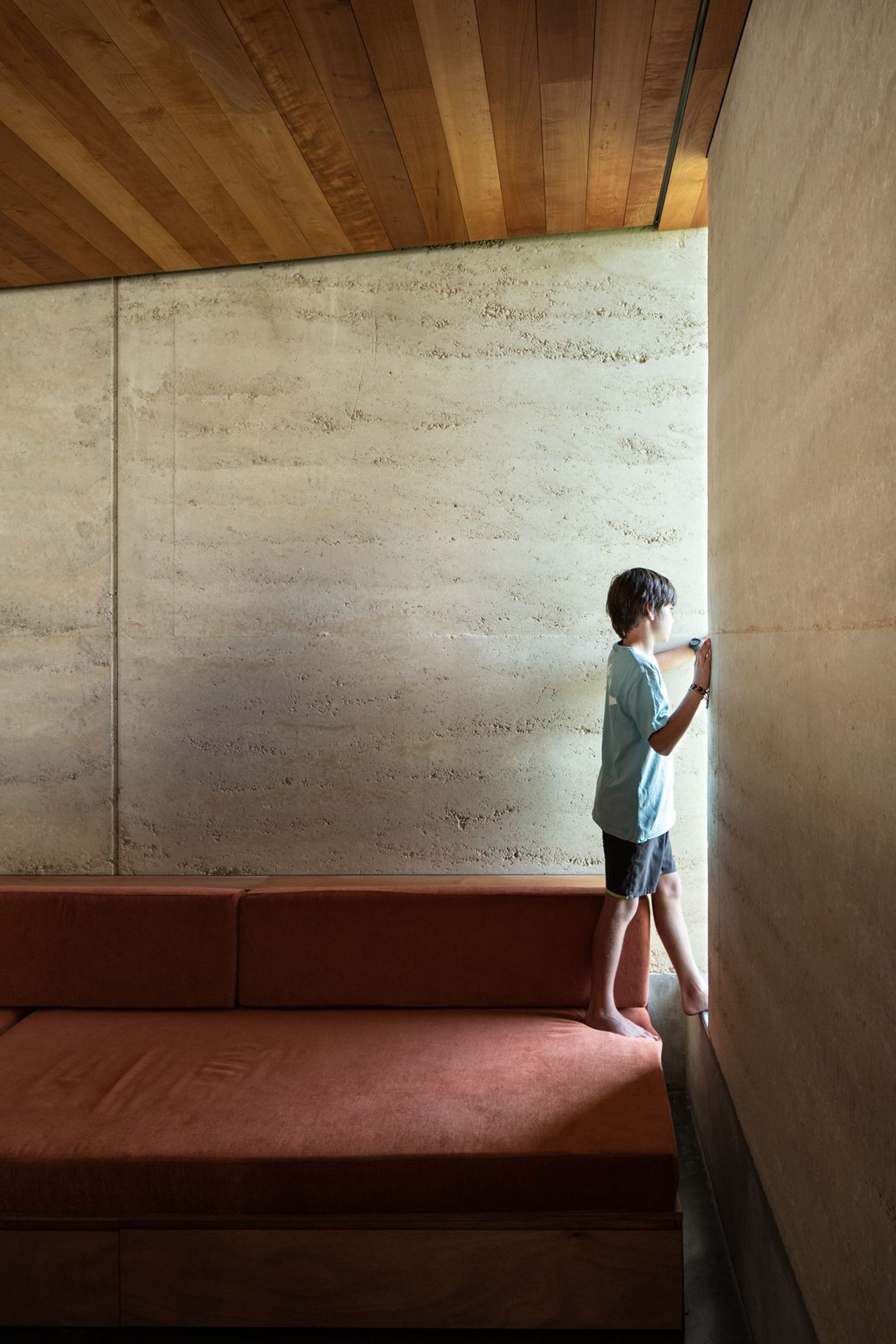 ArchiPro Project Summary - Innovative rammed earth construction harmoniously integrates with the stunning landscape of Mt Barker, offering a low-maintenance, energy-efficient family home designed for comfort and connection to the outdoors.