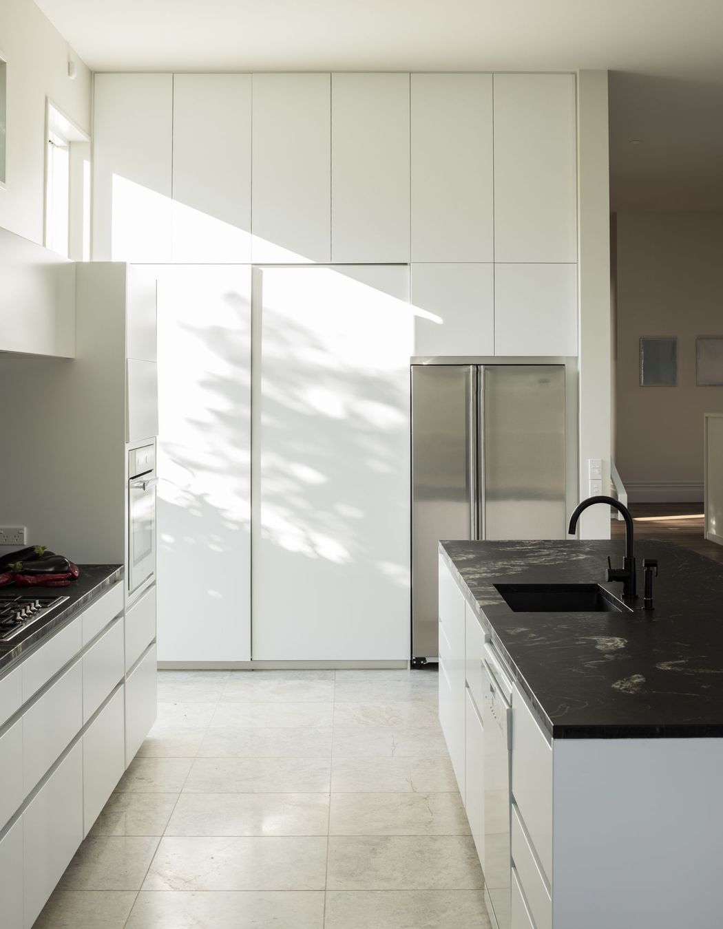 ArchiPro Project Summary - Elegant kitchen design by Rowe Baetens Architecture, featuring custom cabinetry by DJS Cabinetry, beautifully captured by photographer Samuel Hartnett.