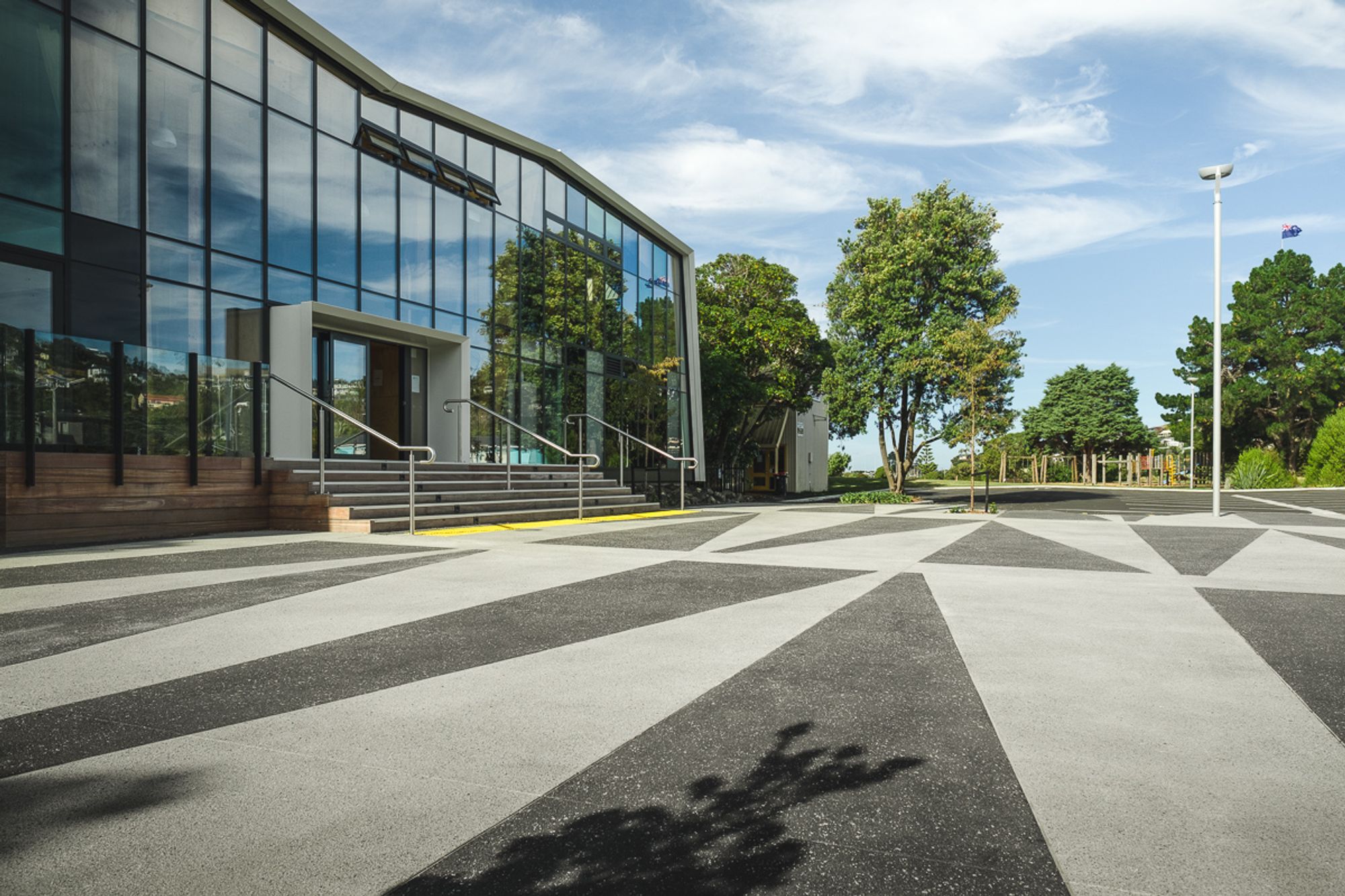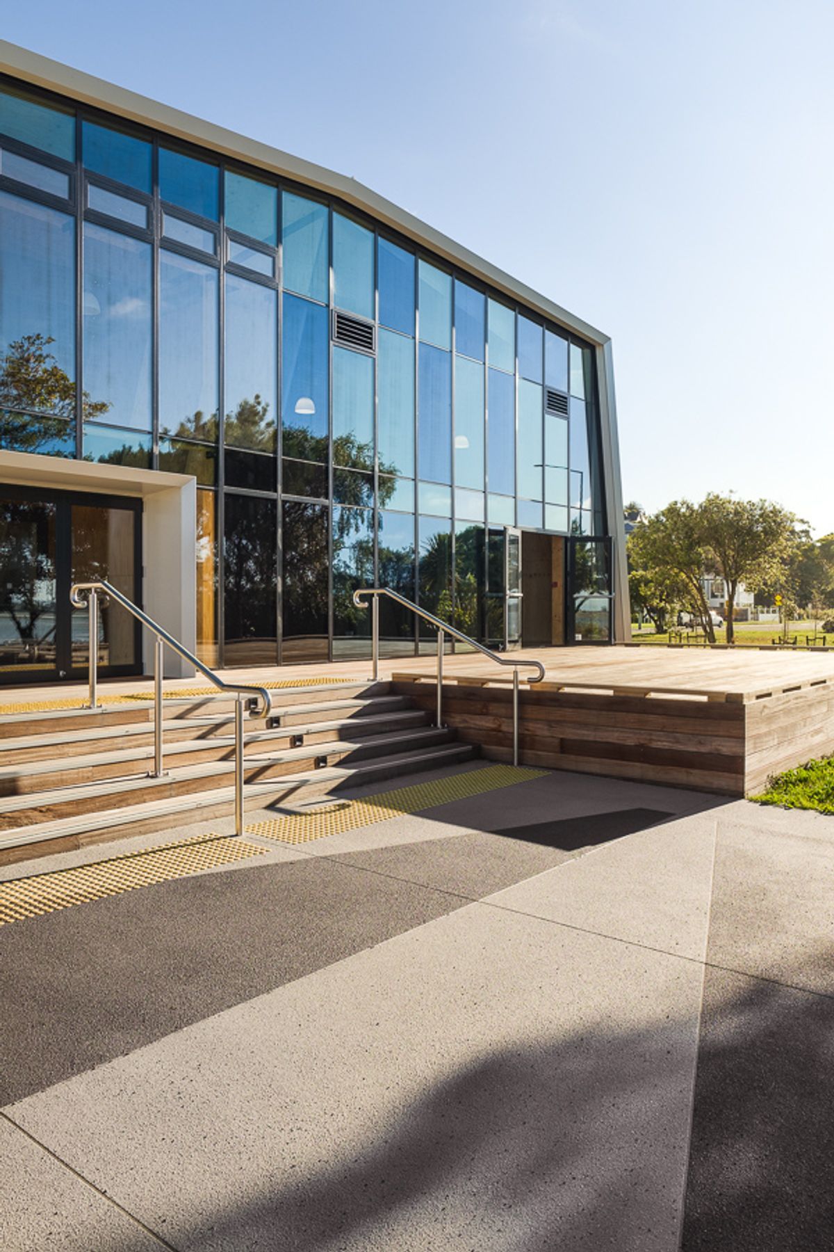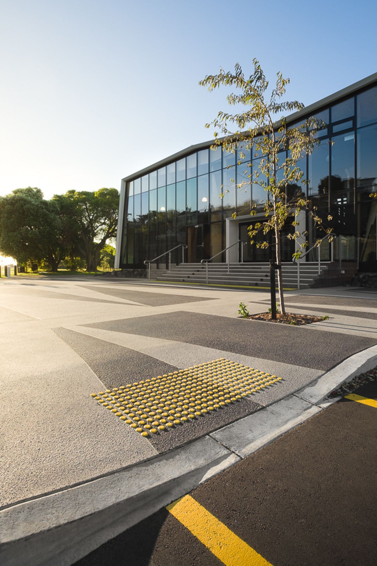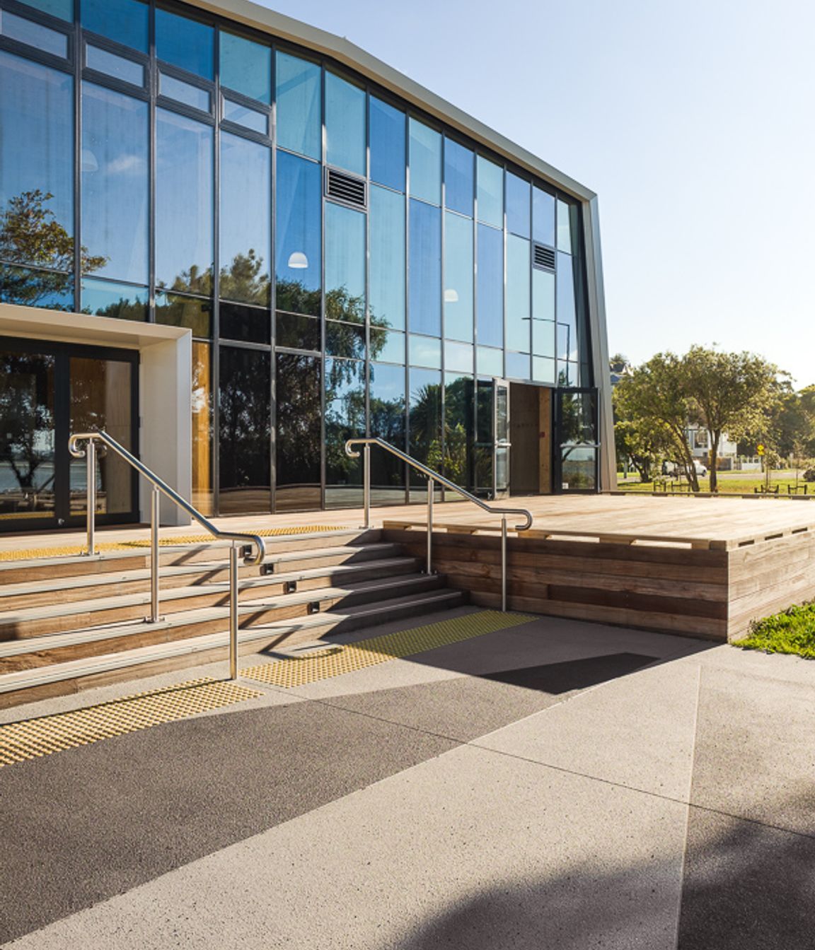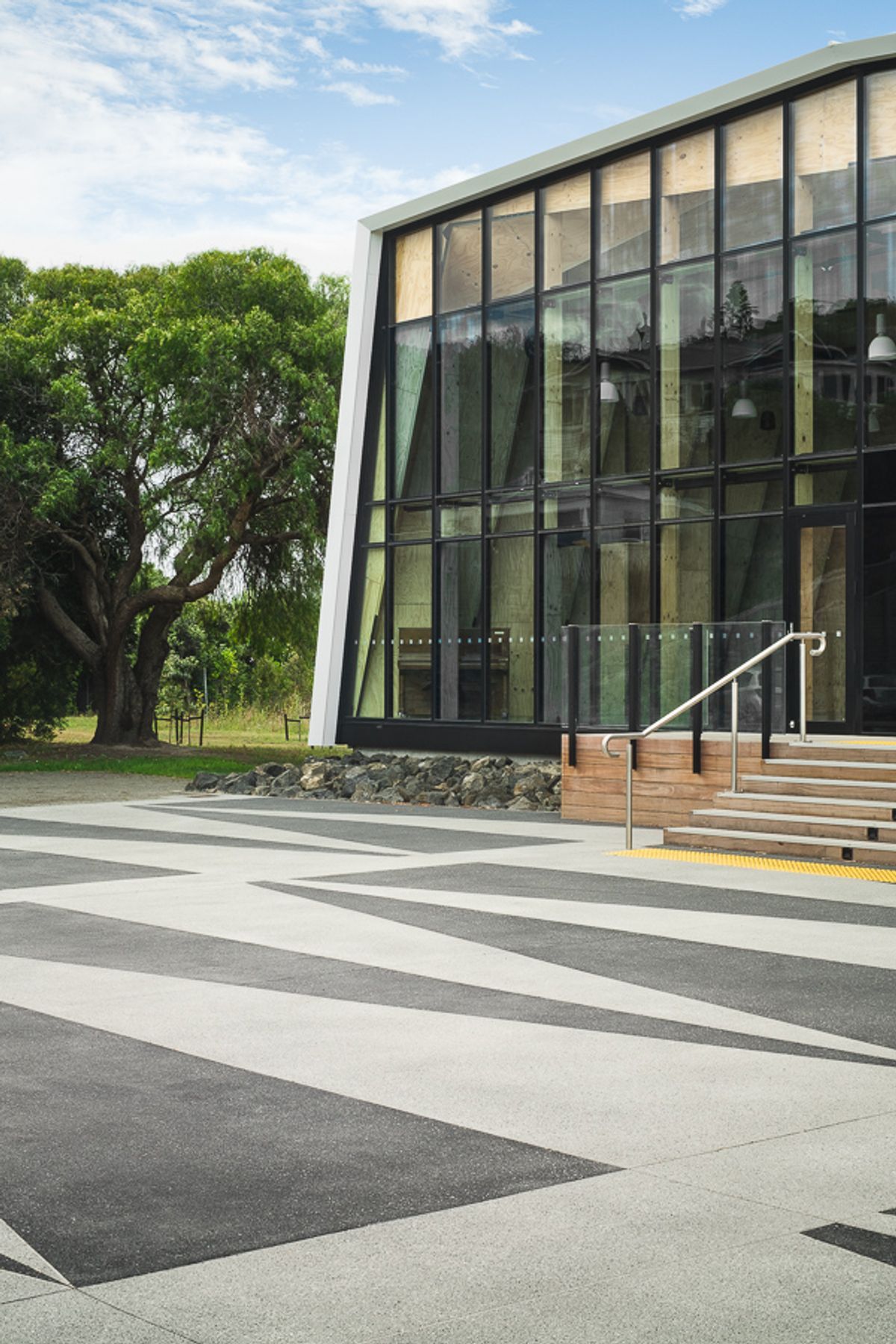 ArchiPro Project Summary - A community centre landscape project featuring flood protection, versatile outdoor spaces for events, and native plantings, harmoniously integrating with the local environment and cultural heritage.