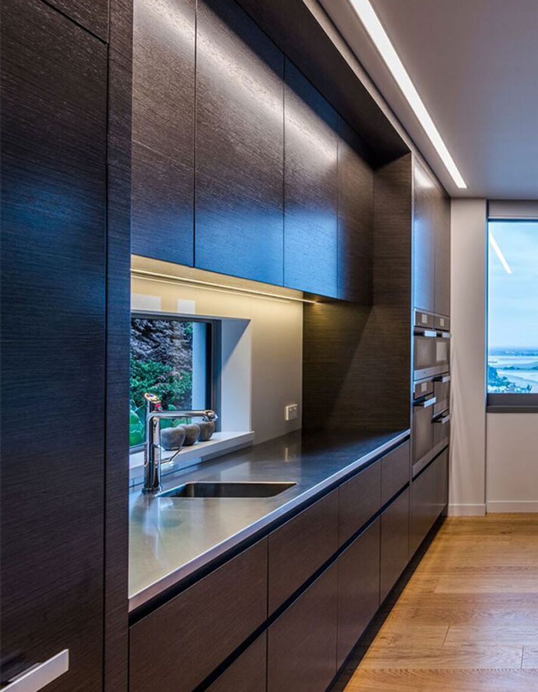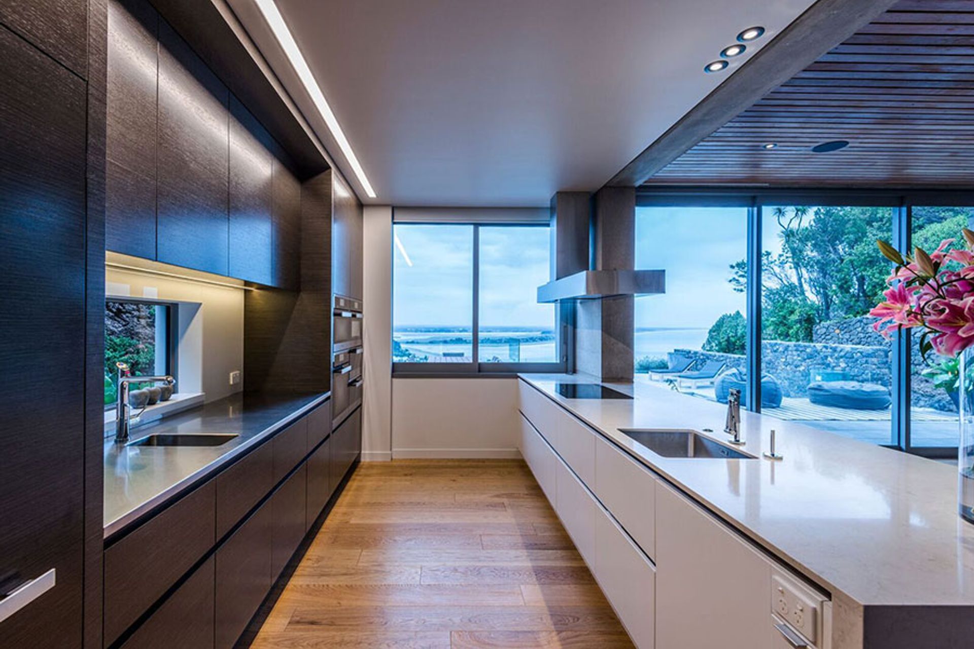 ArchiPro Project Summary - A sophisticated kitchen design by Vicki Andrews, seamlessly integrating modern functionality with stunning sea views, featuring advanced appliances and elegant materials to enhance both family living and entertaining.