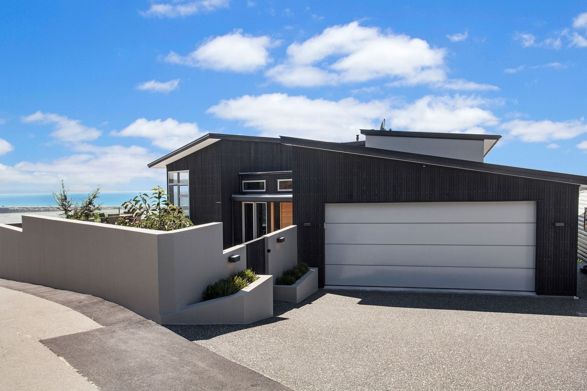 ArchiPro Project Summary - A well-insulated home featuring a functional layout, solid concrete mid floor, and stunning views, complemented by a blend of plaster and dark stained cedar cladding.