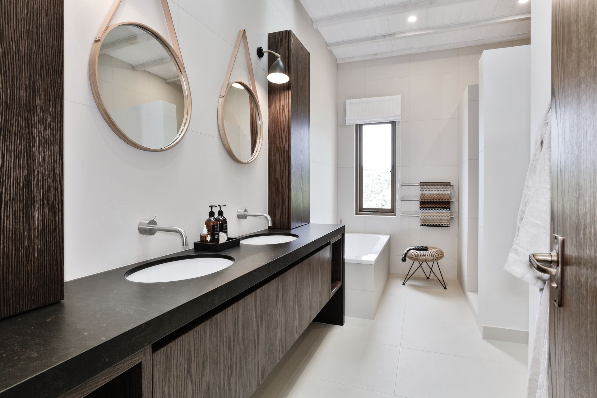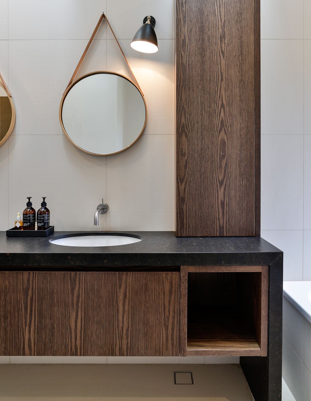 ArchiPro Project Summary - The Muriwai Bathrooms project by Sue Gillbanks features modern design with elegant flooring, stylish walls, and high-quality fixtures for a luxurious yet functional space.