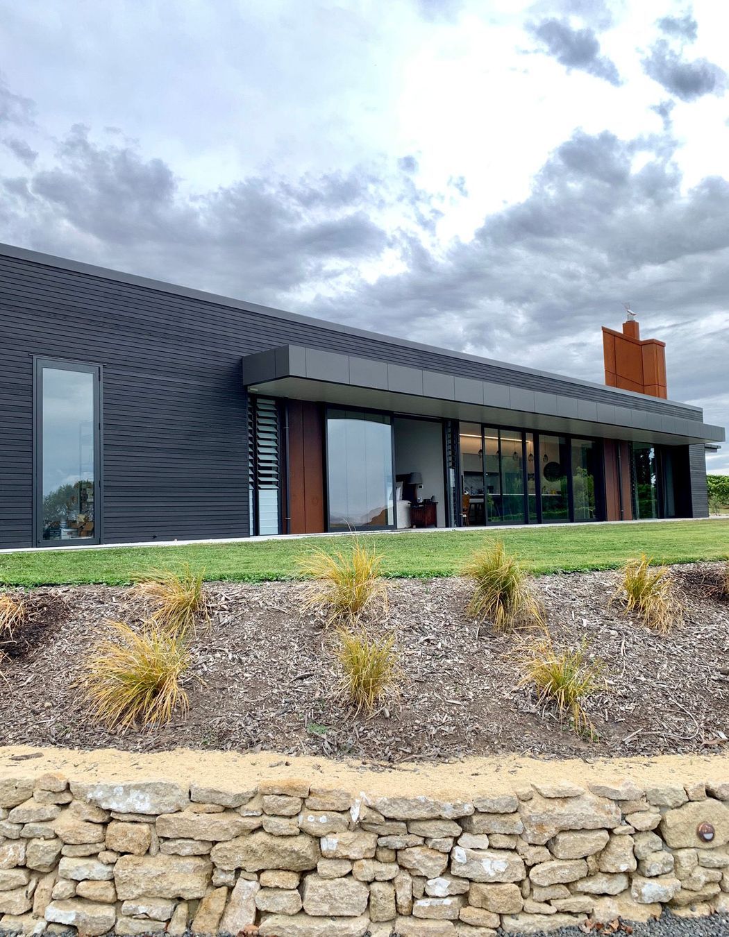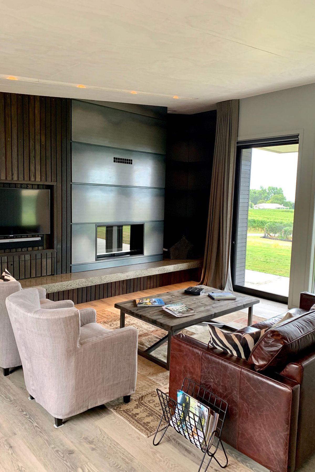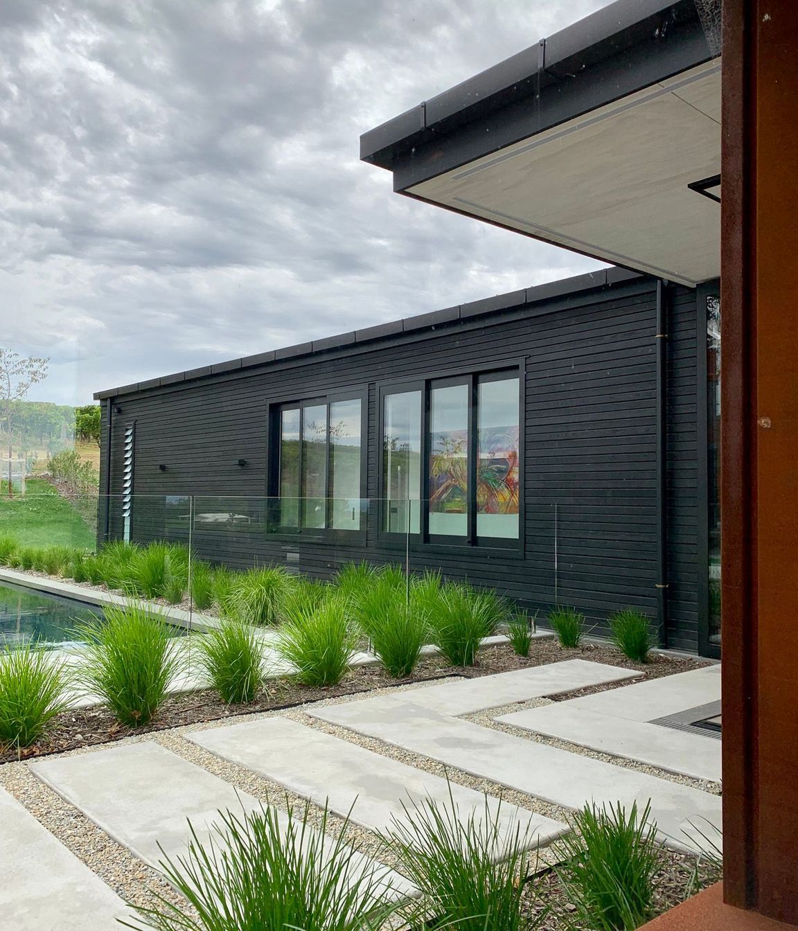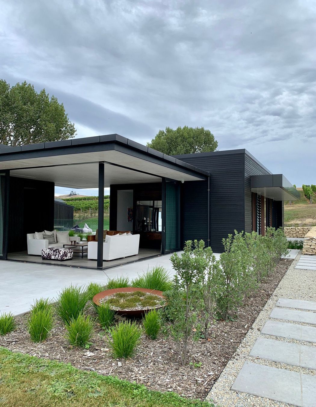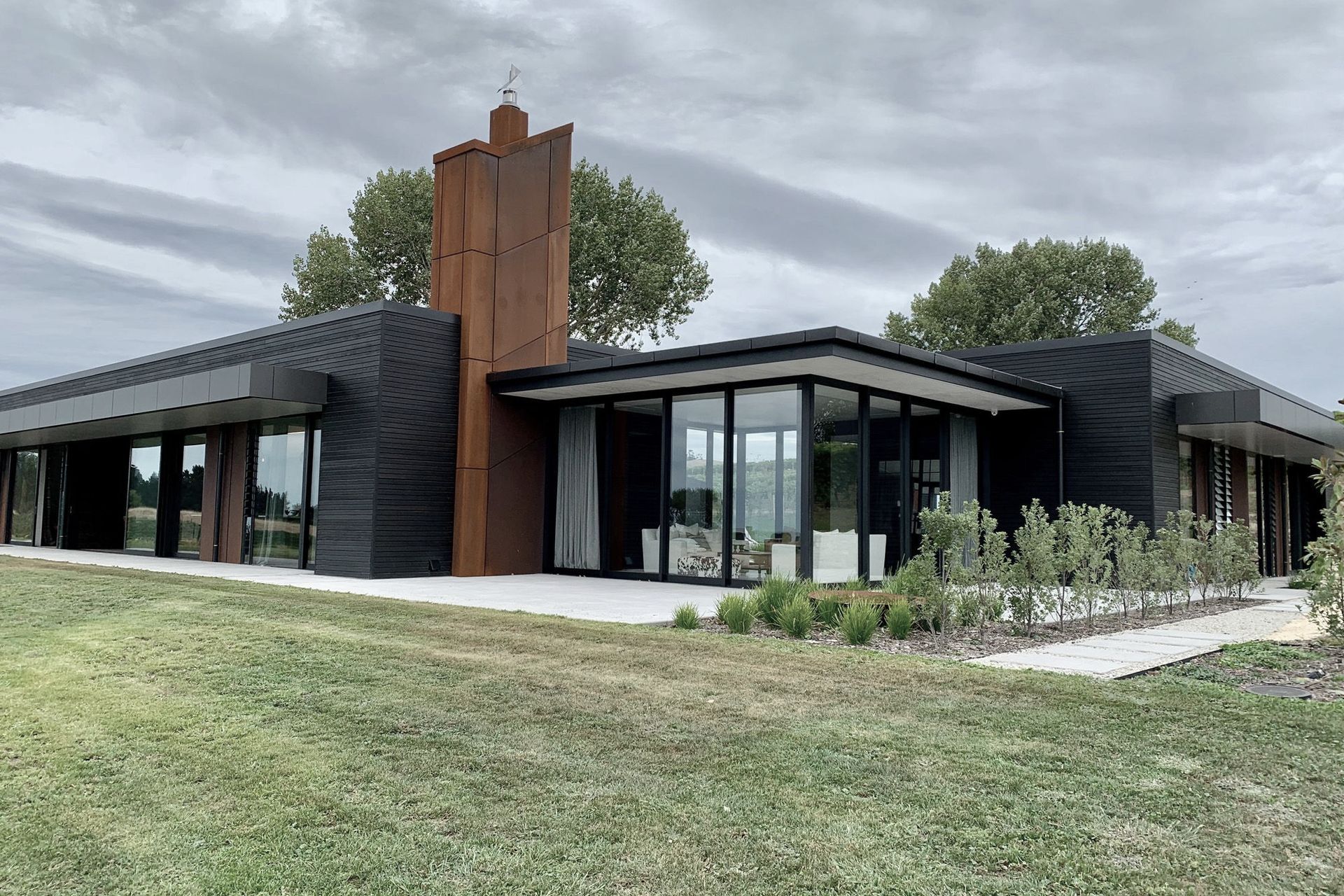 ArchiPro Project Summary - Award-winning modern home in rural Napier, featuring cedar and Corten steel cladding, four bedrooms, four bathrooms, and expansive views of the east coast and local vineyards, designed around a central courtyard for seamless indoor-outdoor living.